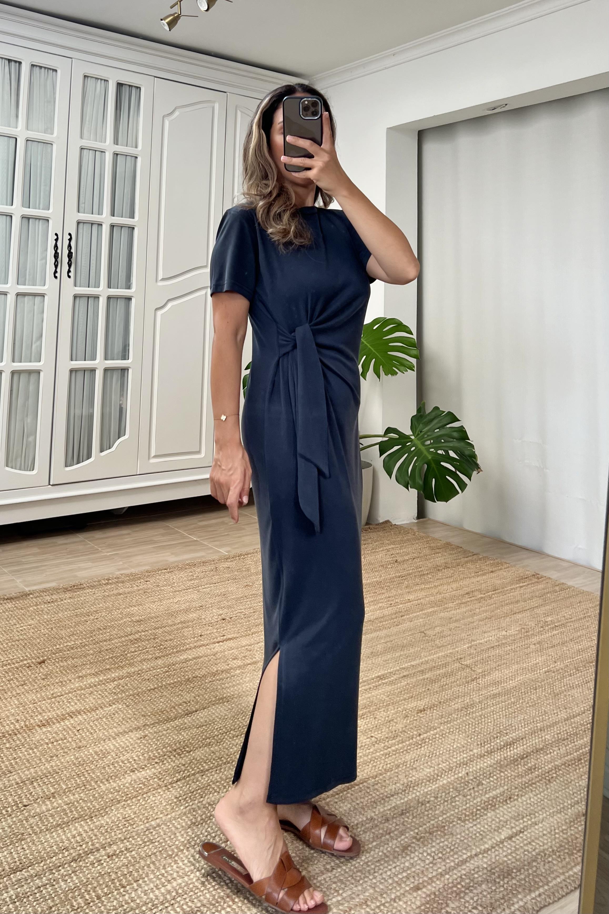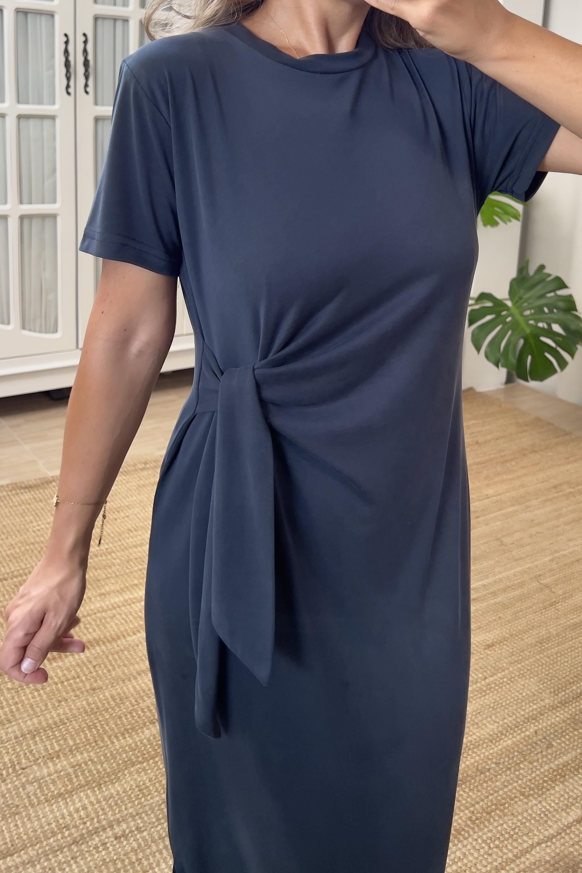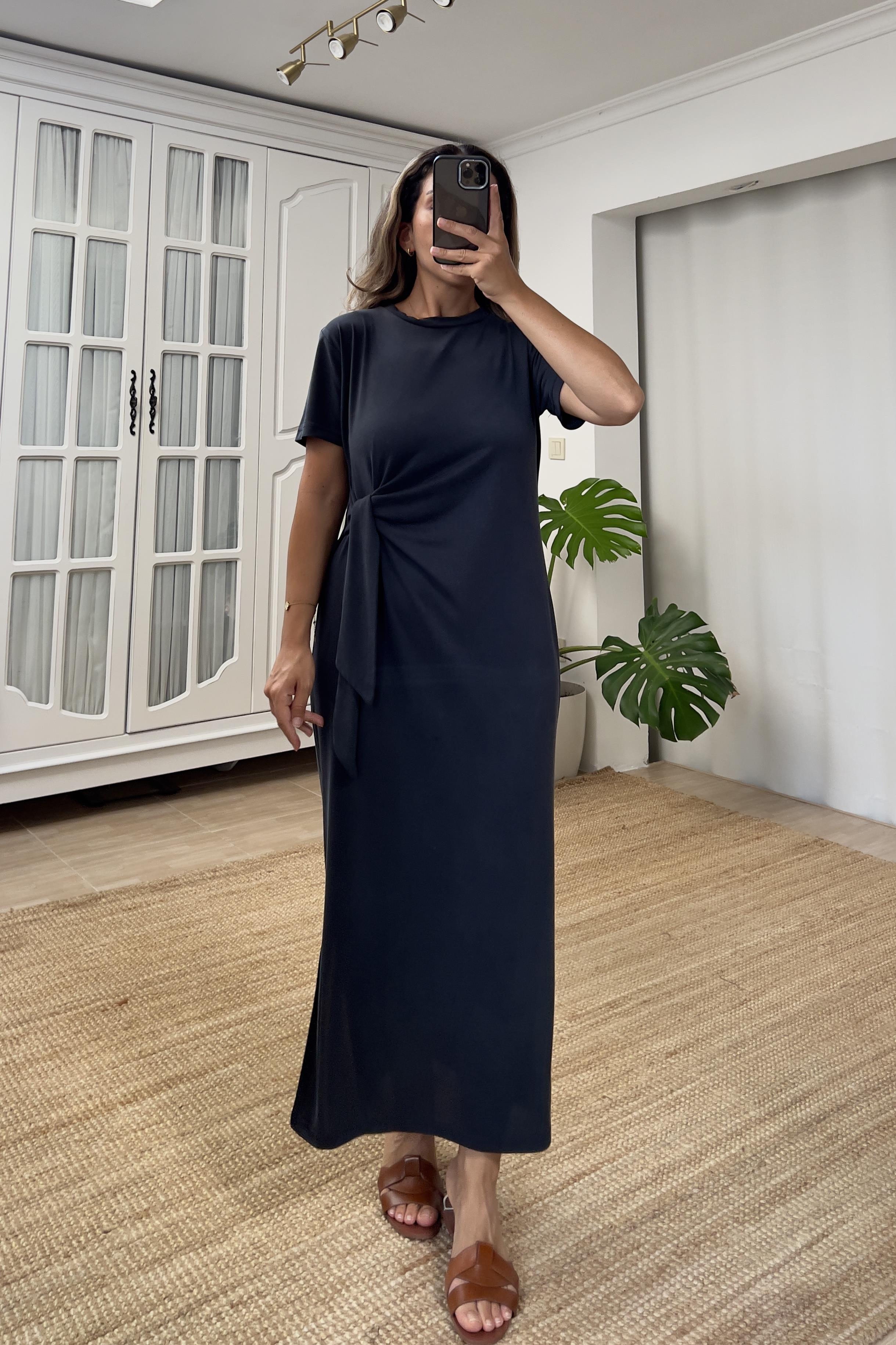 Antrasit Bağlama Detaylı Yırtmaçlı Modal Elbise