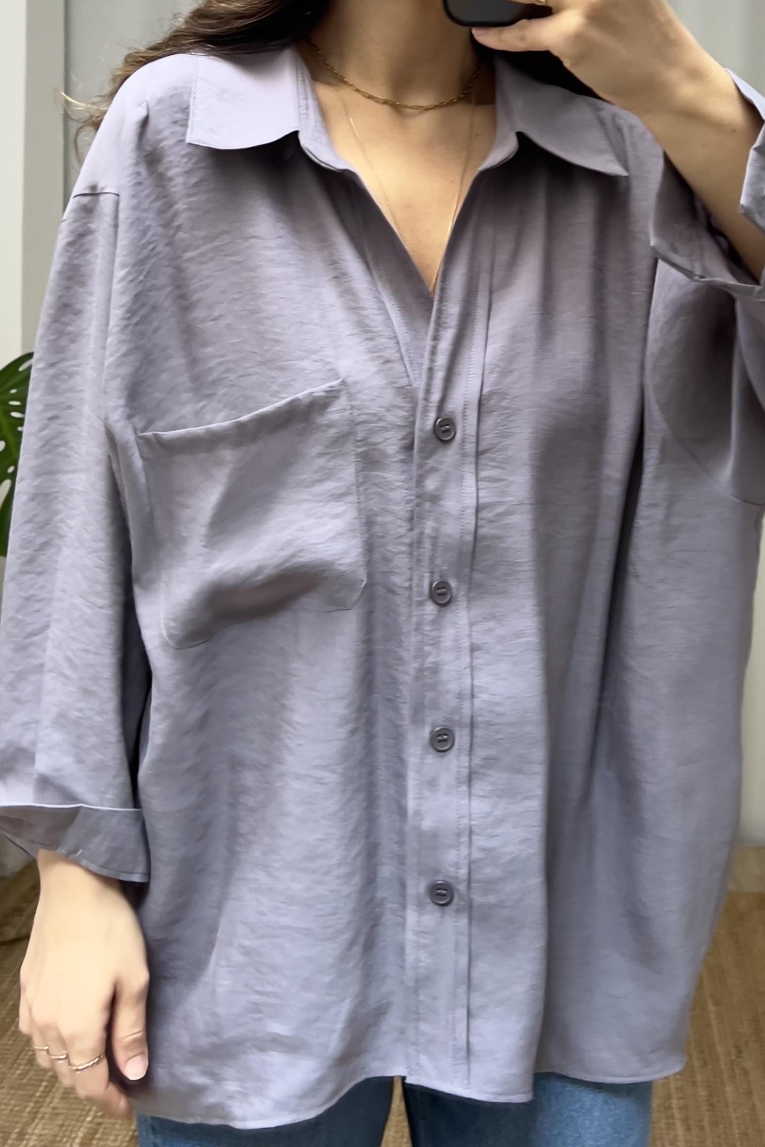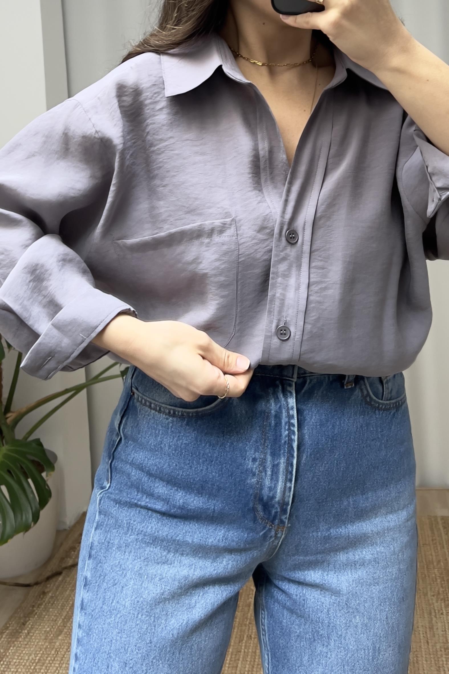 Antrasit Cepli Oversize Tensel Gömlek
