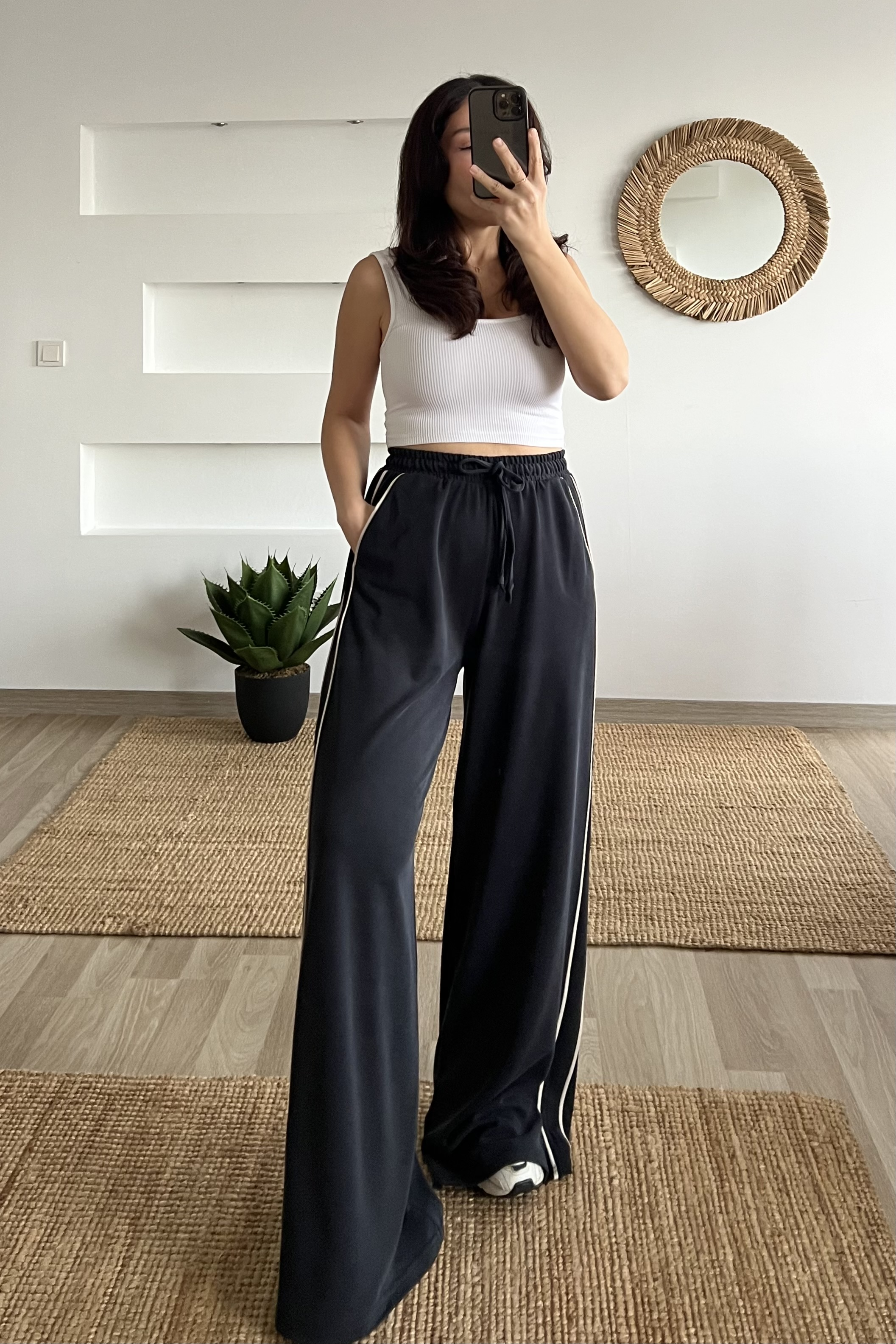 Antrasit Oys Şerit Detaylı Rahat Modal Pantolon