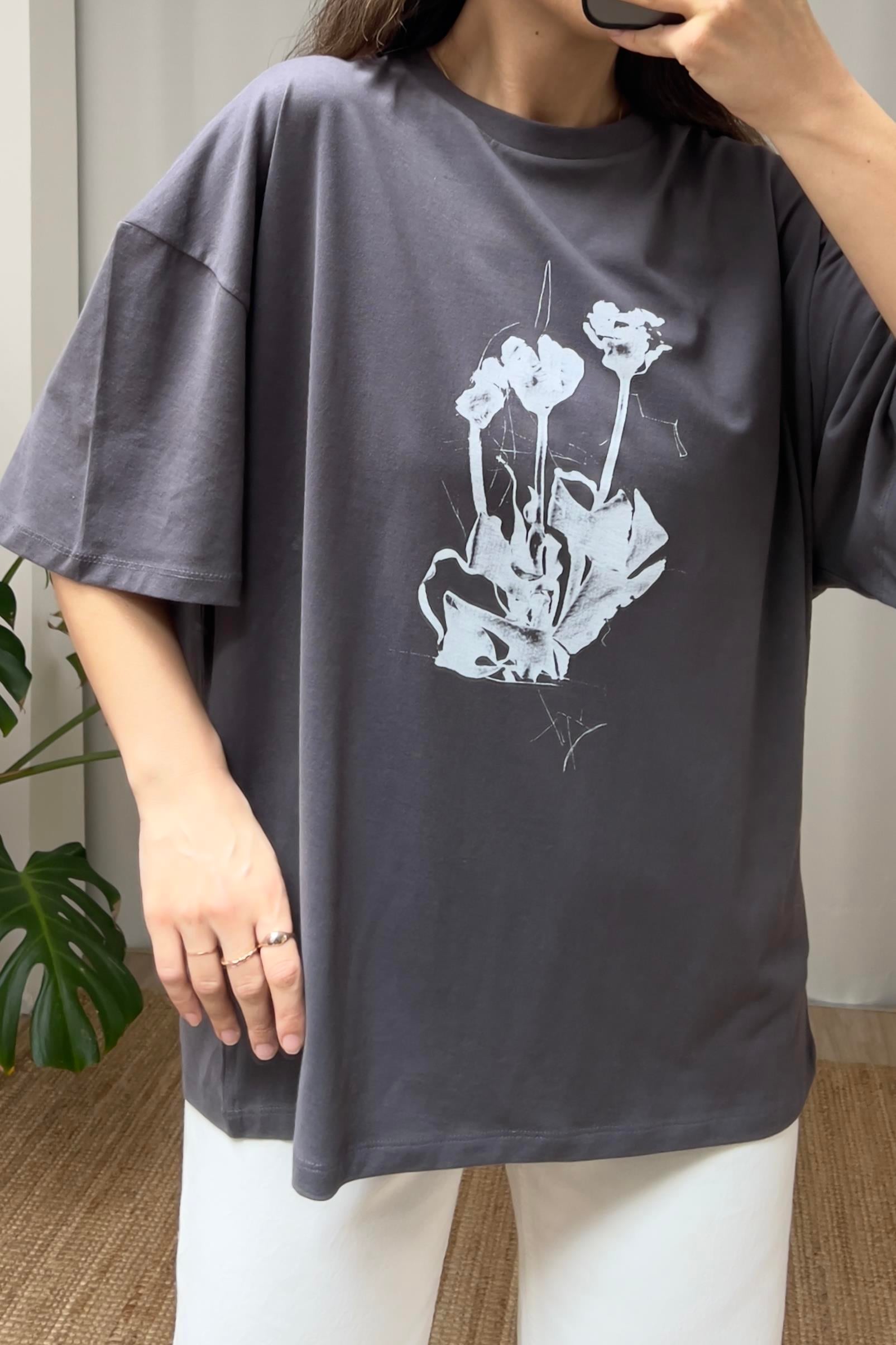 Antrasit Yıkamalı Oversize Tshirt