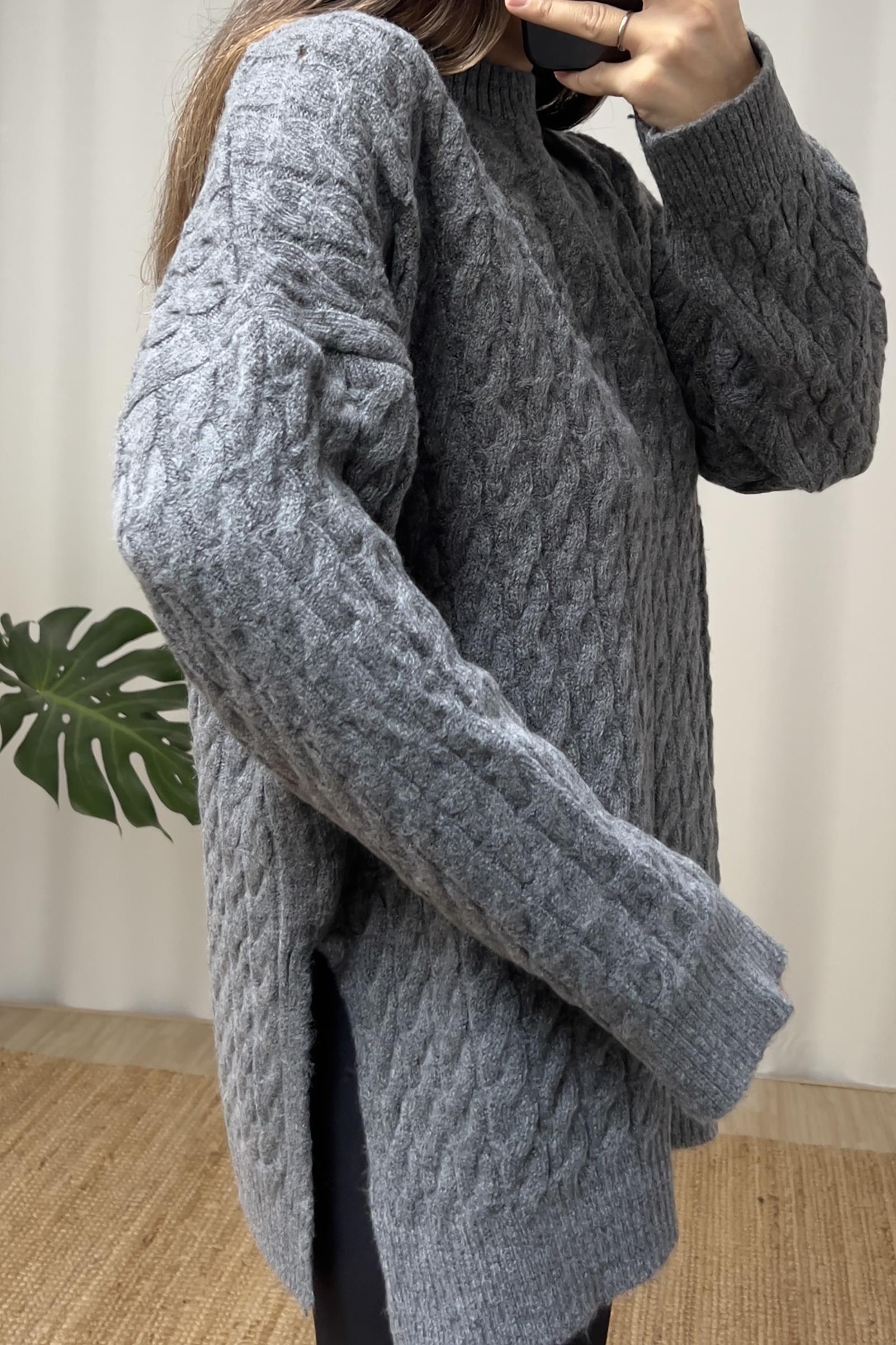 Antrasit Yırtmaç Detaylı Kaşmir Dokulu Kazak