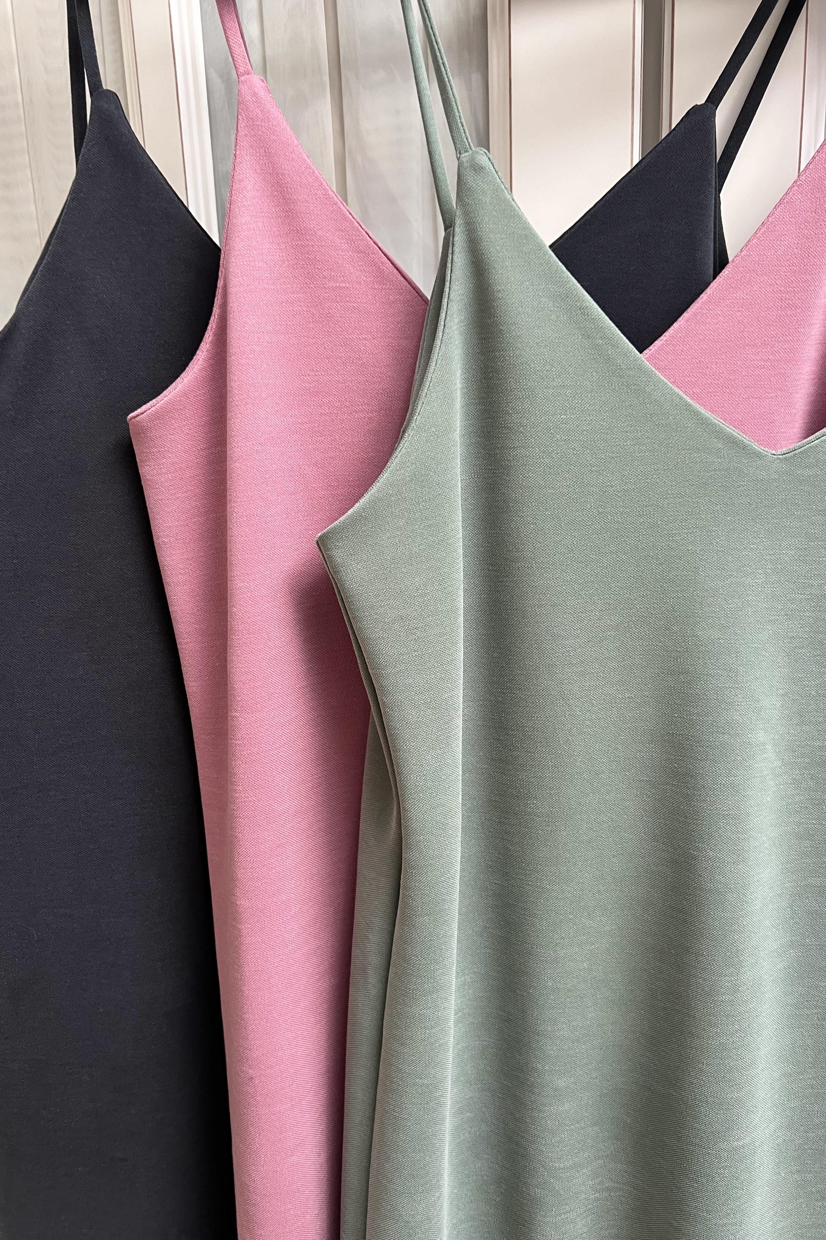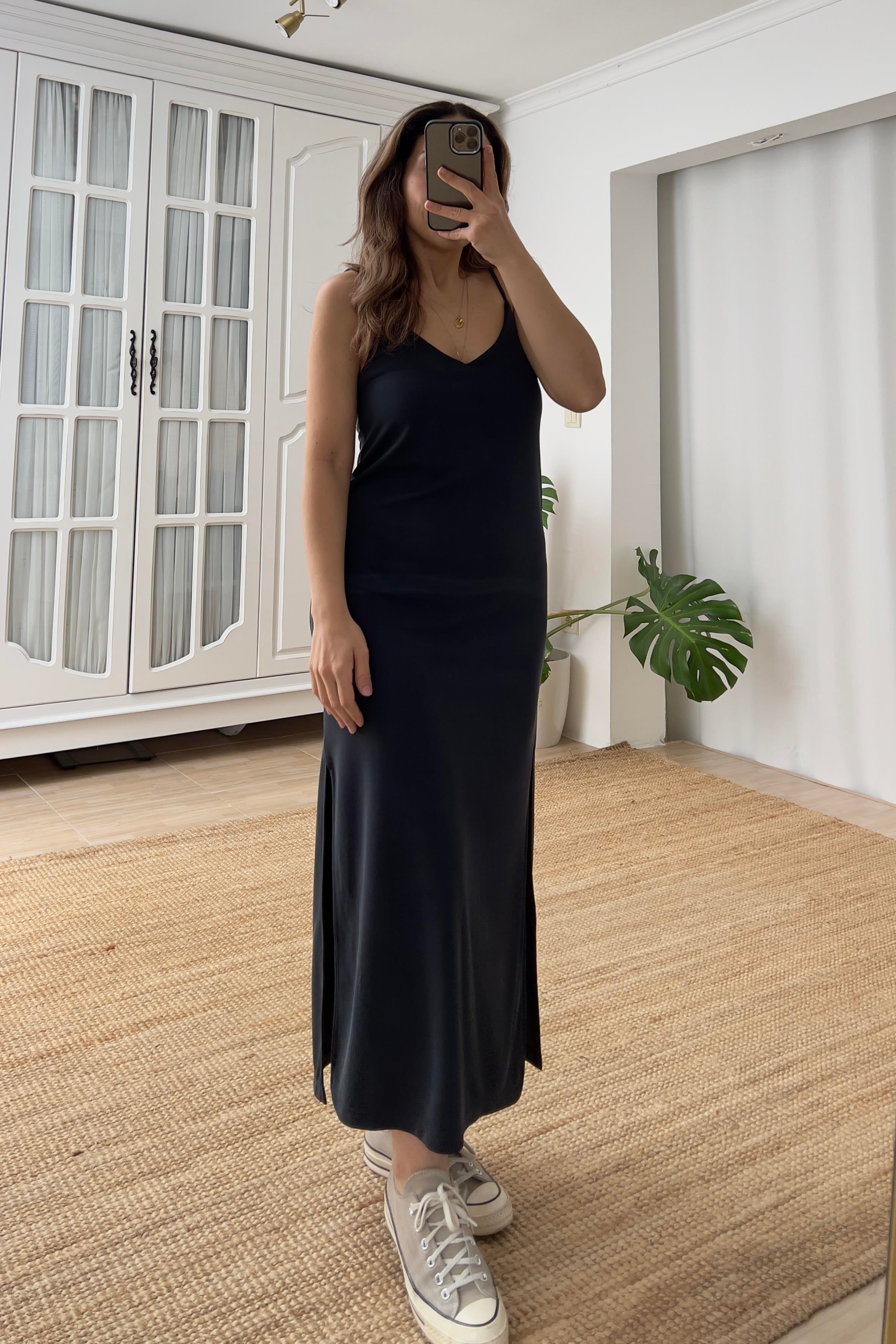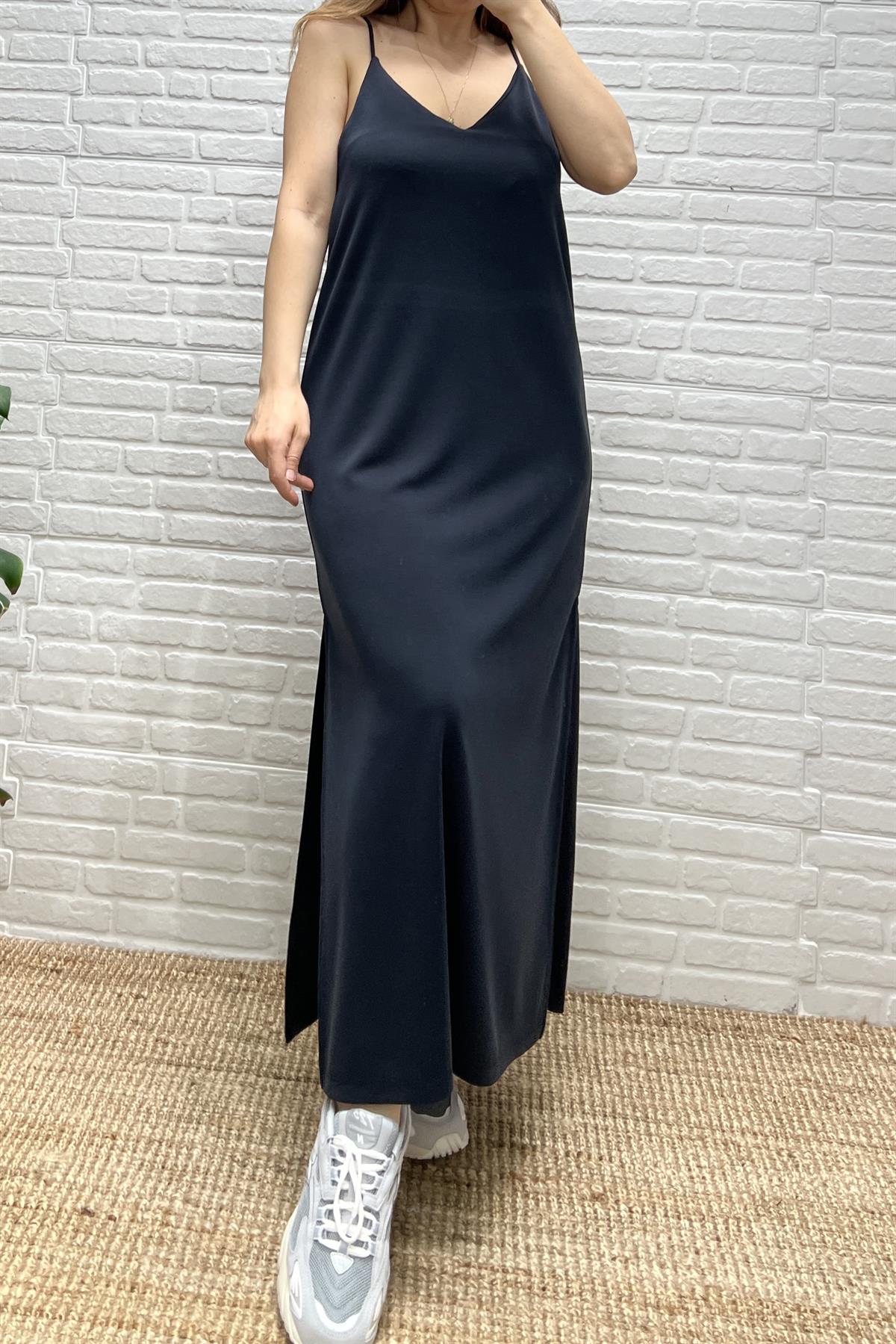 Antrasit Yırtmaç Detaylı Modal Elbise