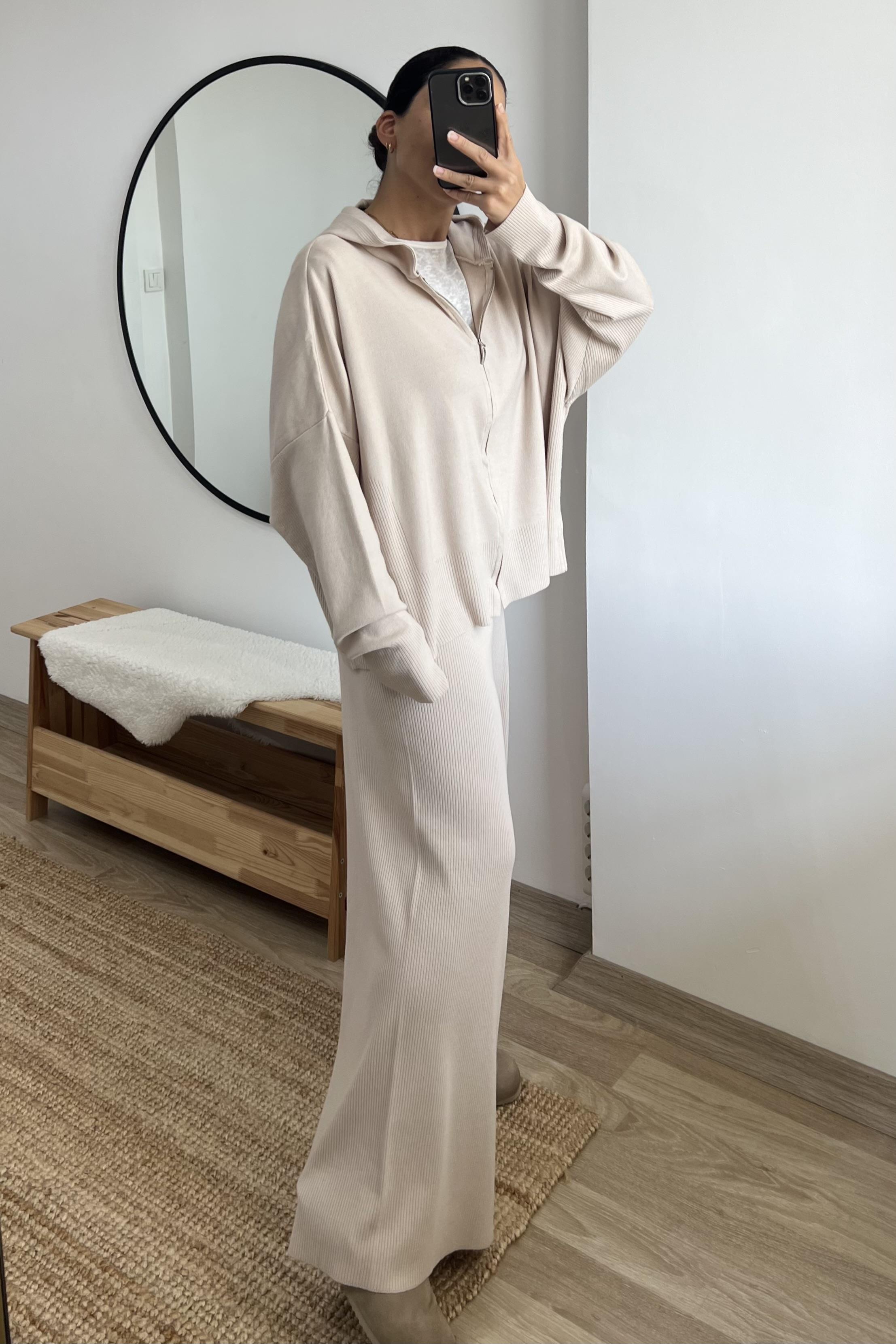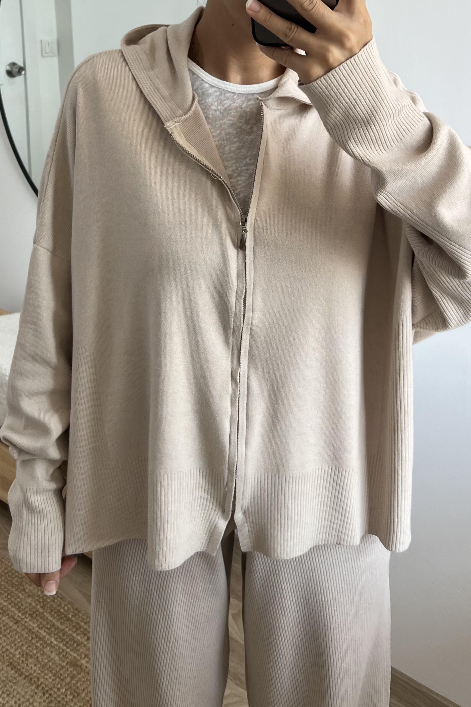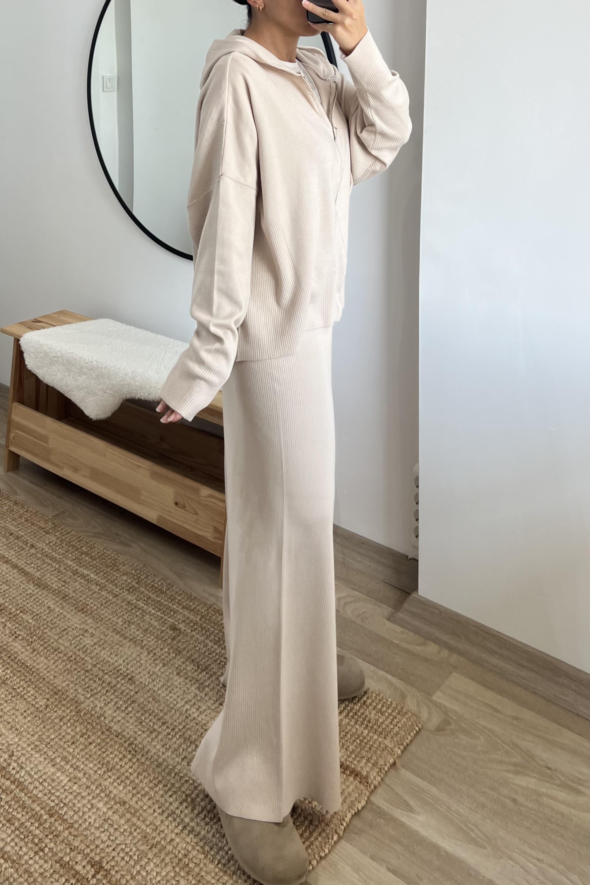 Bej Soft Touch Hırka Pantolon Takım