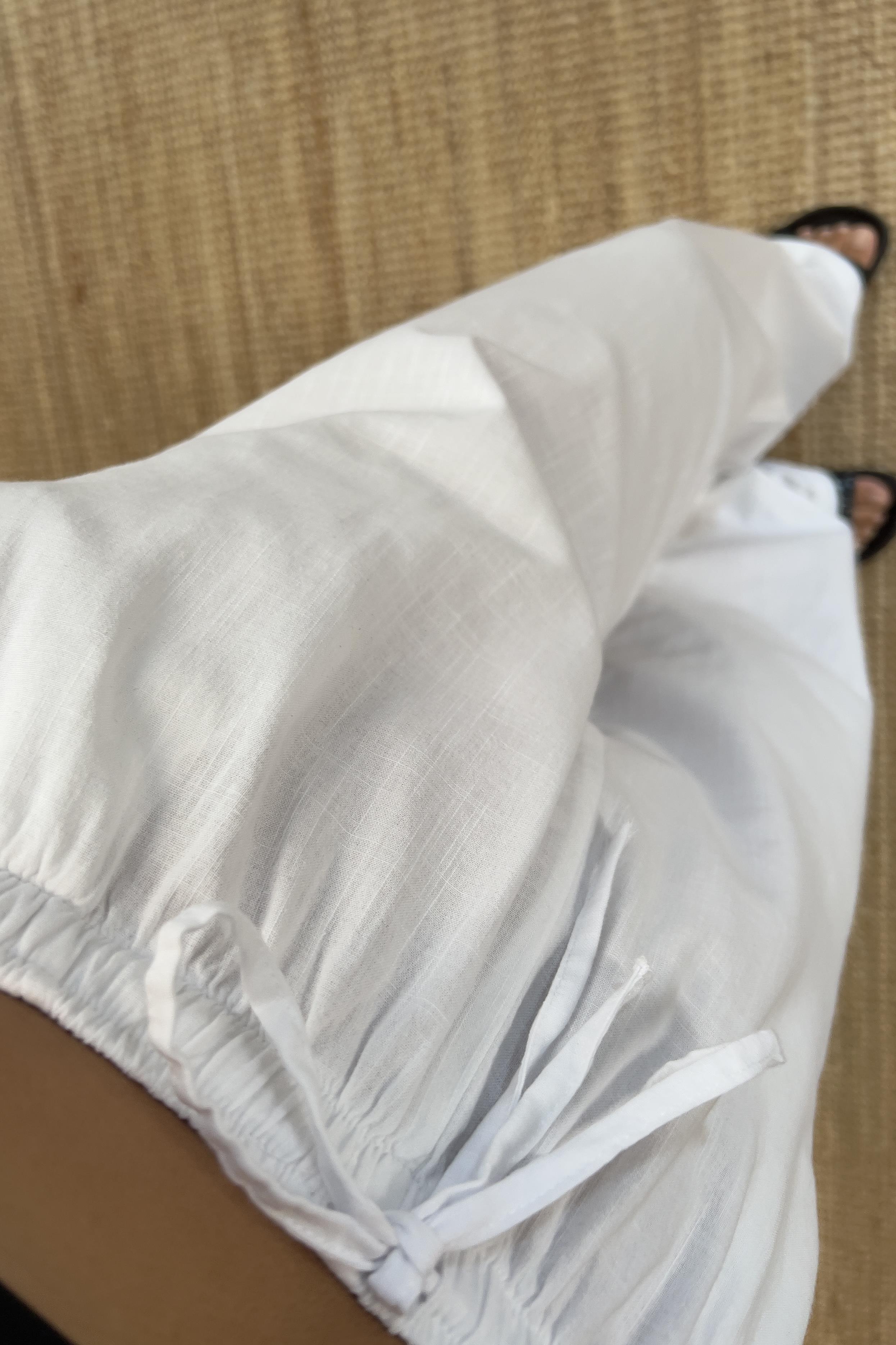 Beyaz Beli Bağcıklı Premium Keten Pantolon