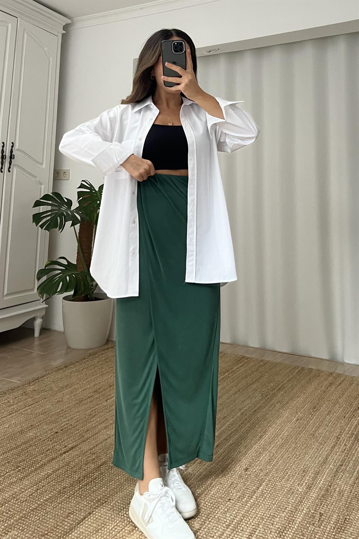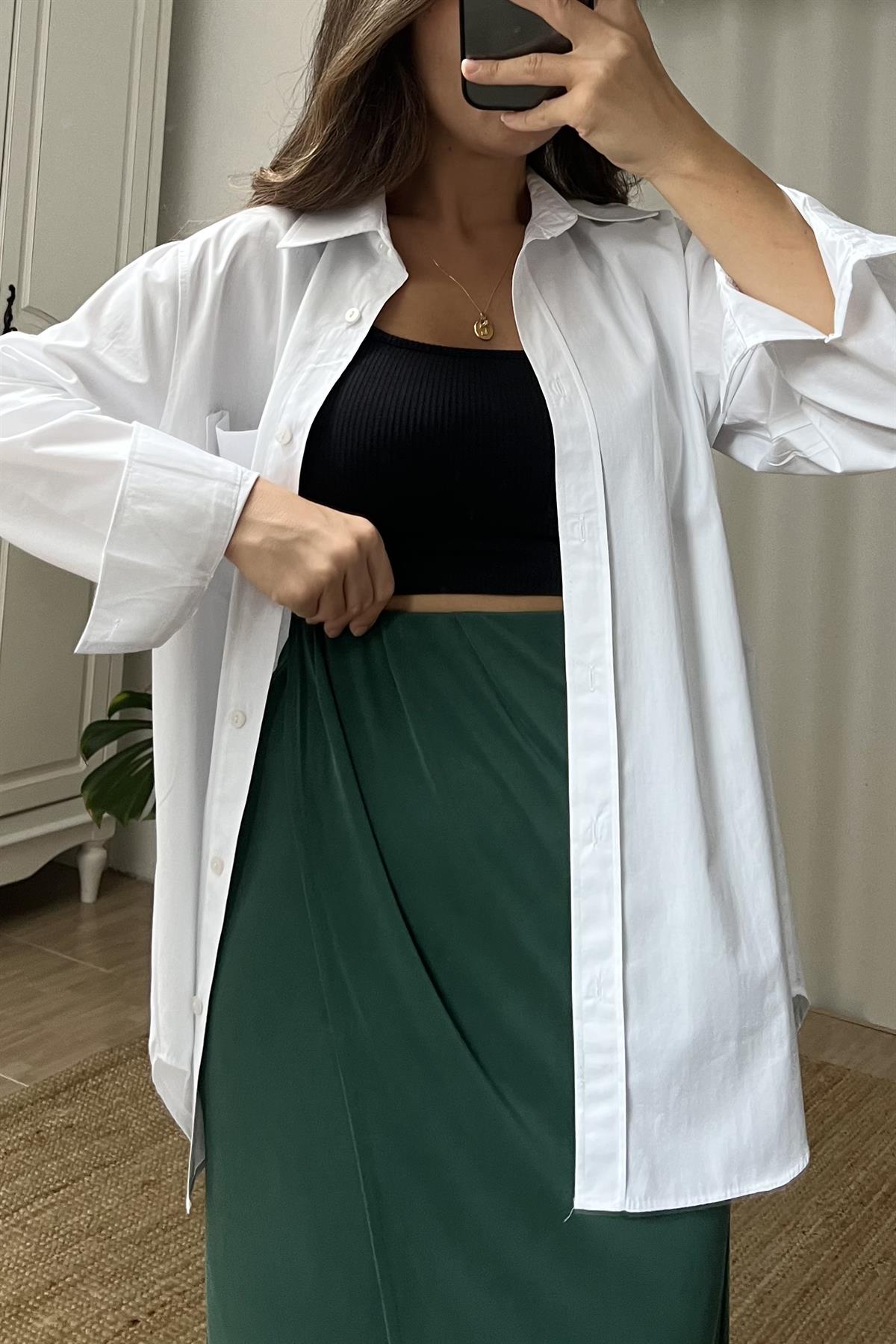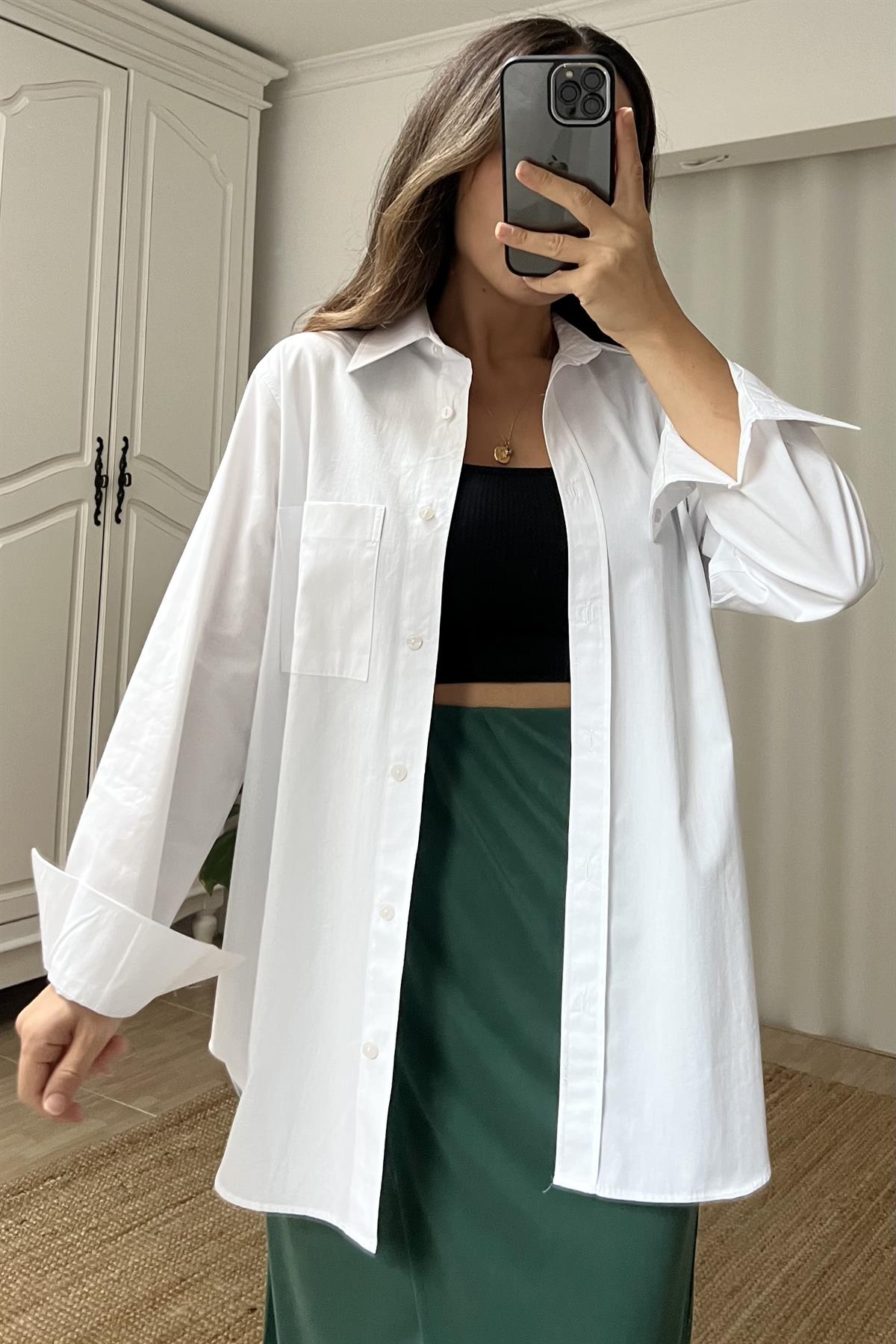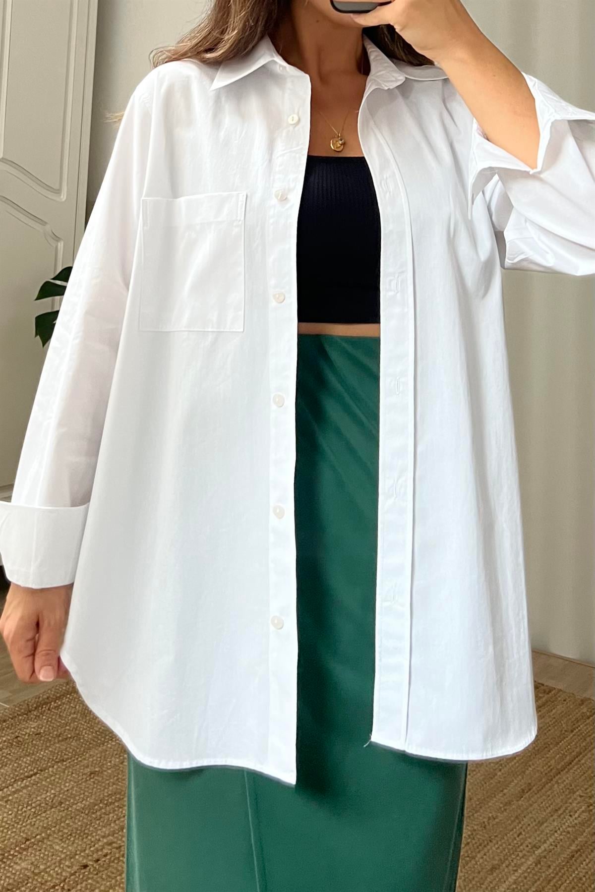 Beyaz Cepli Oversize Poplin Gömlek