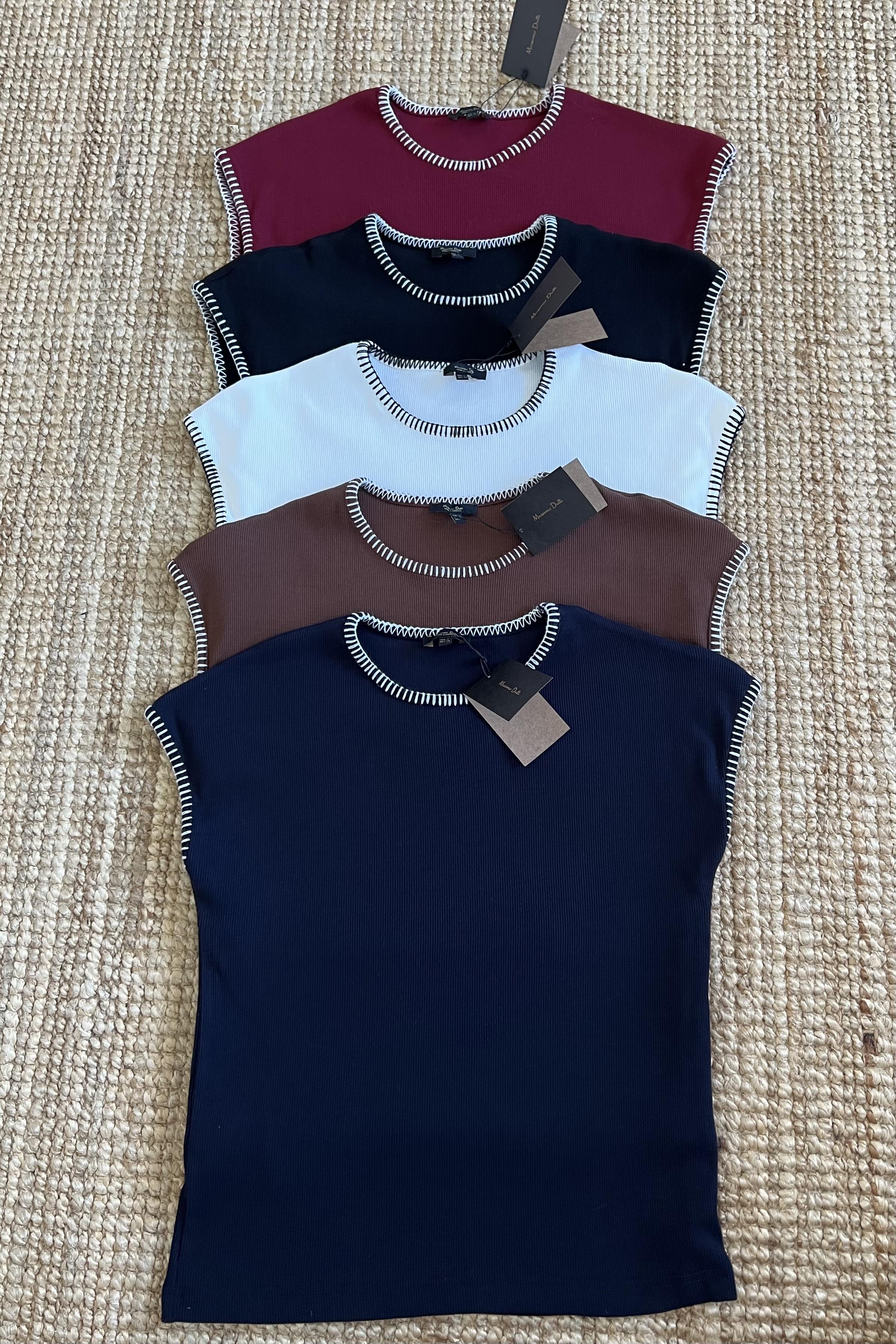 Beyaz Dikiş Detaylı Fitilli Tshirt
