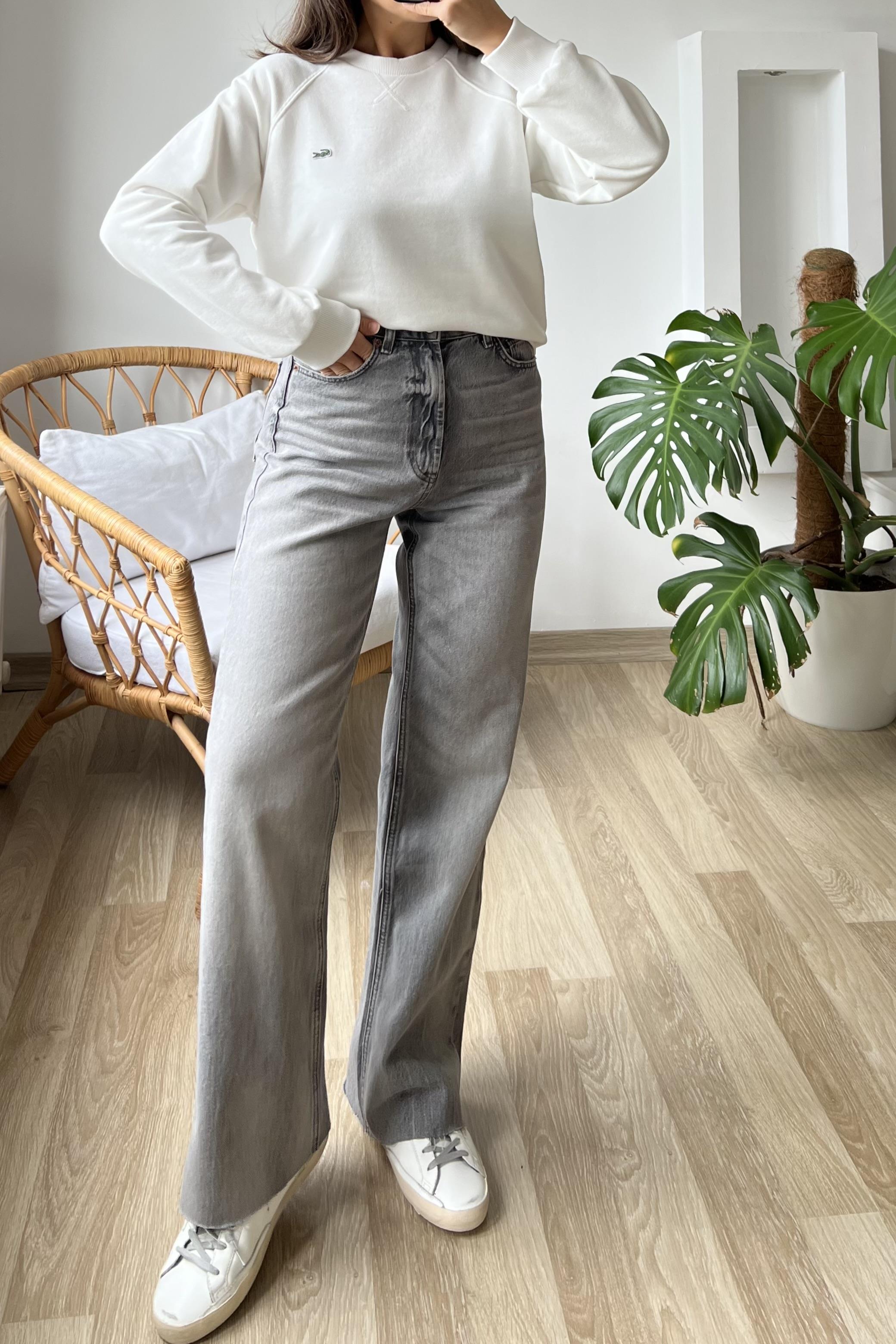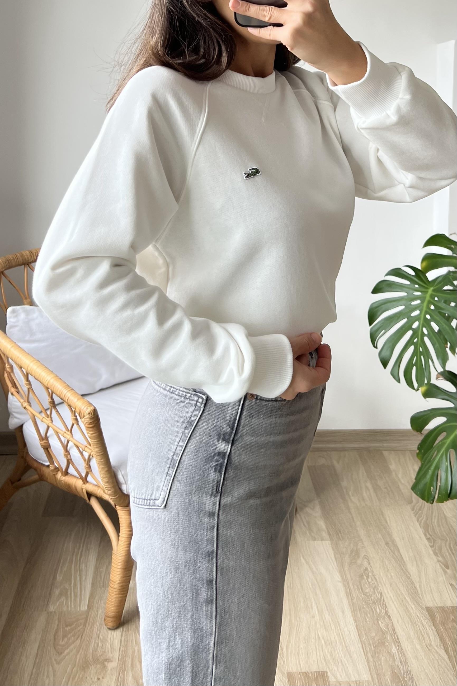 Beyaz Logo Nakışlı Yaka Detaylı Sweatshirt