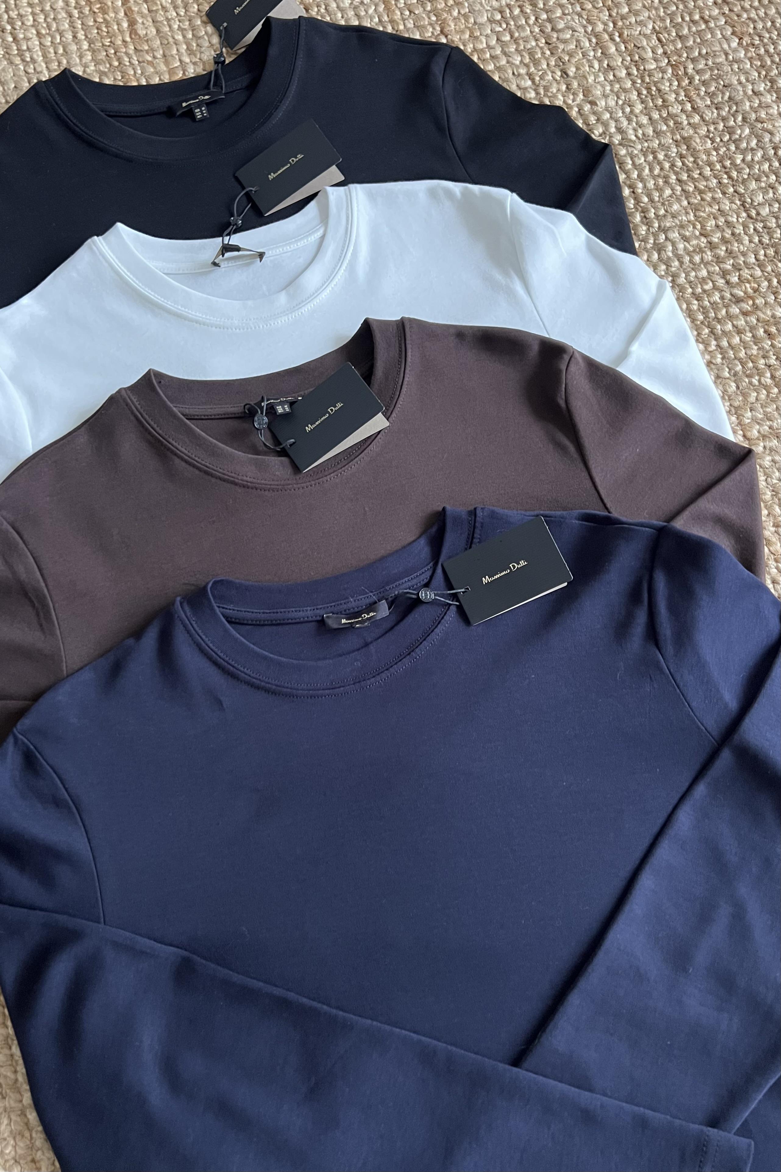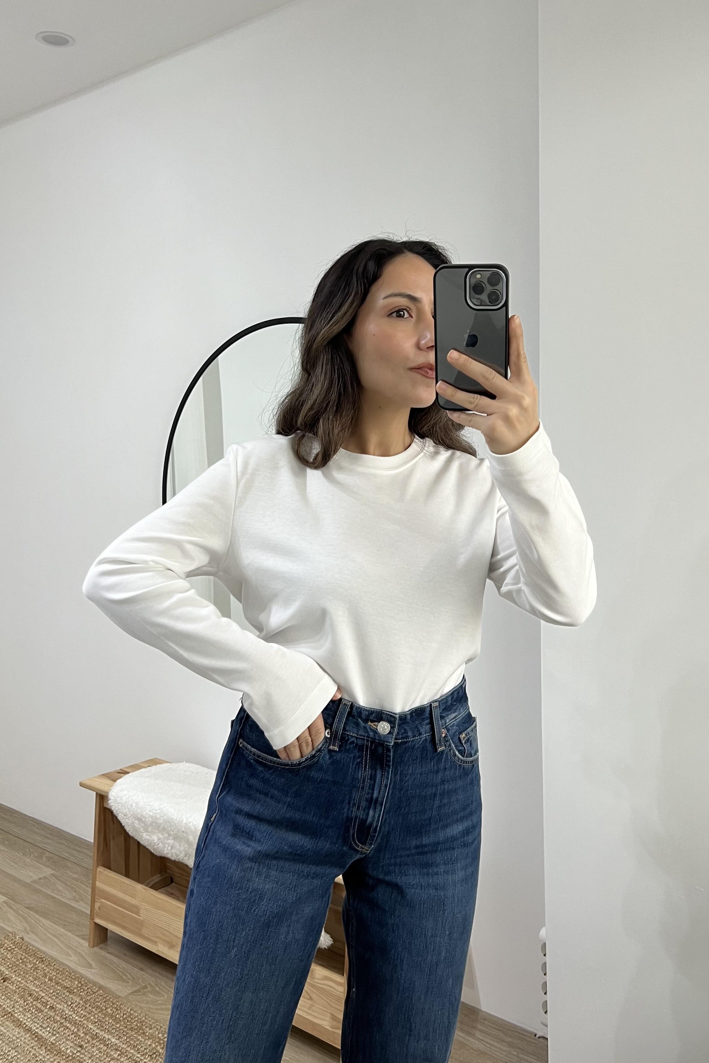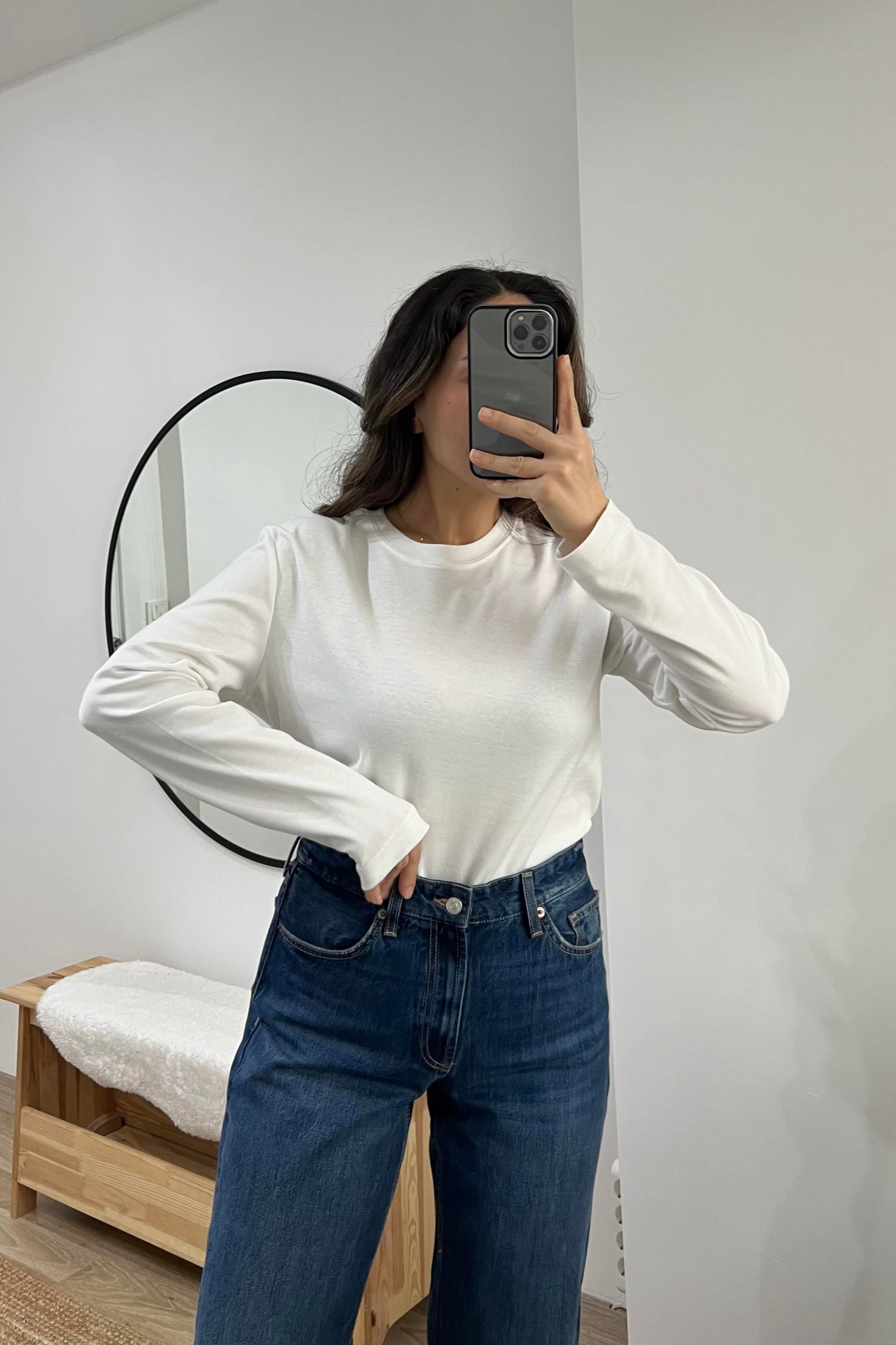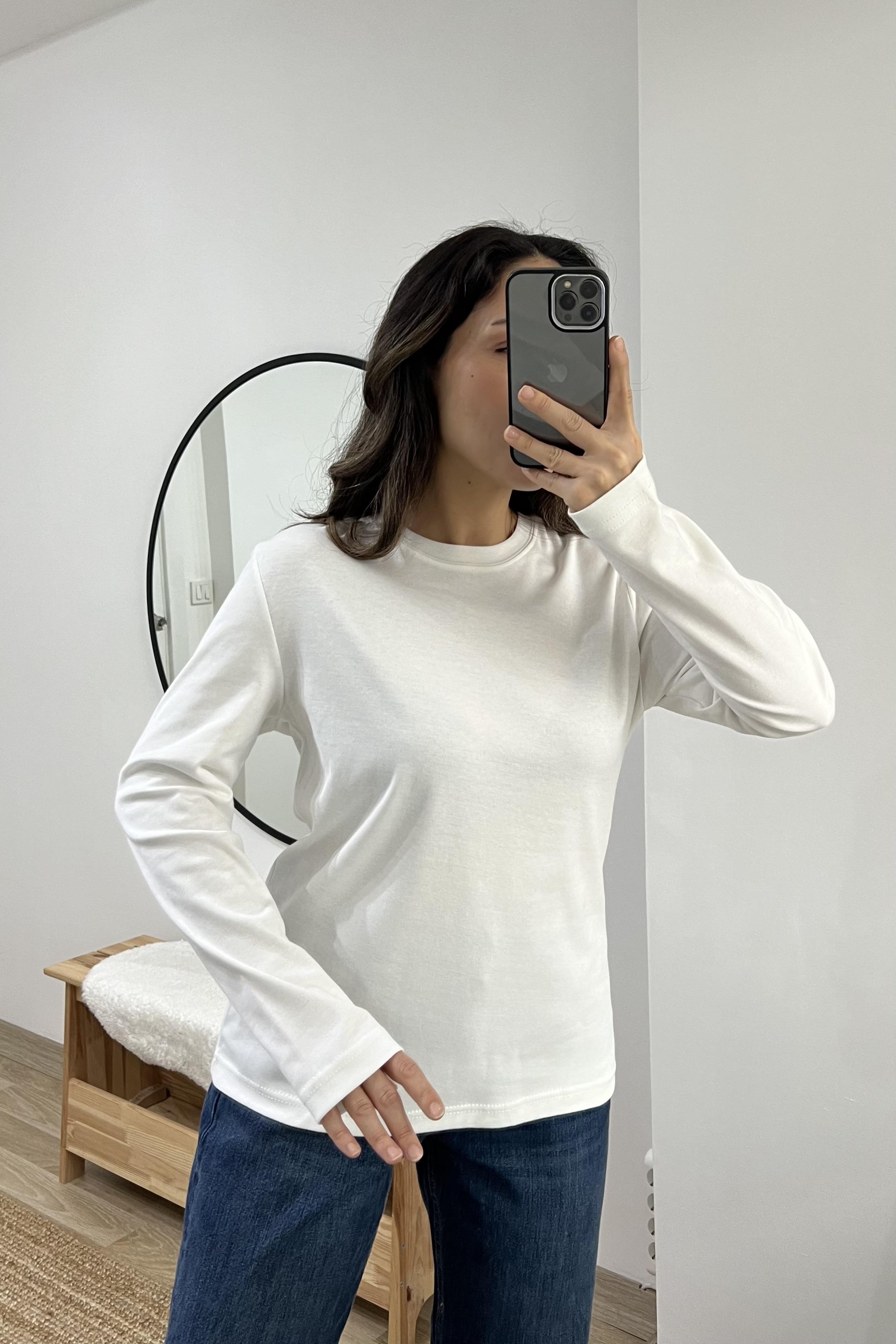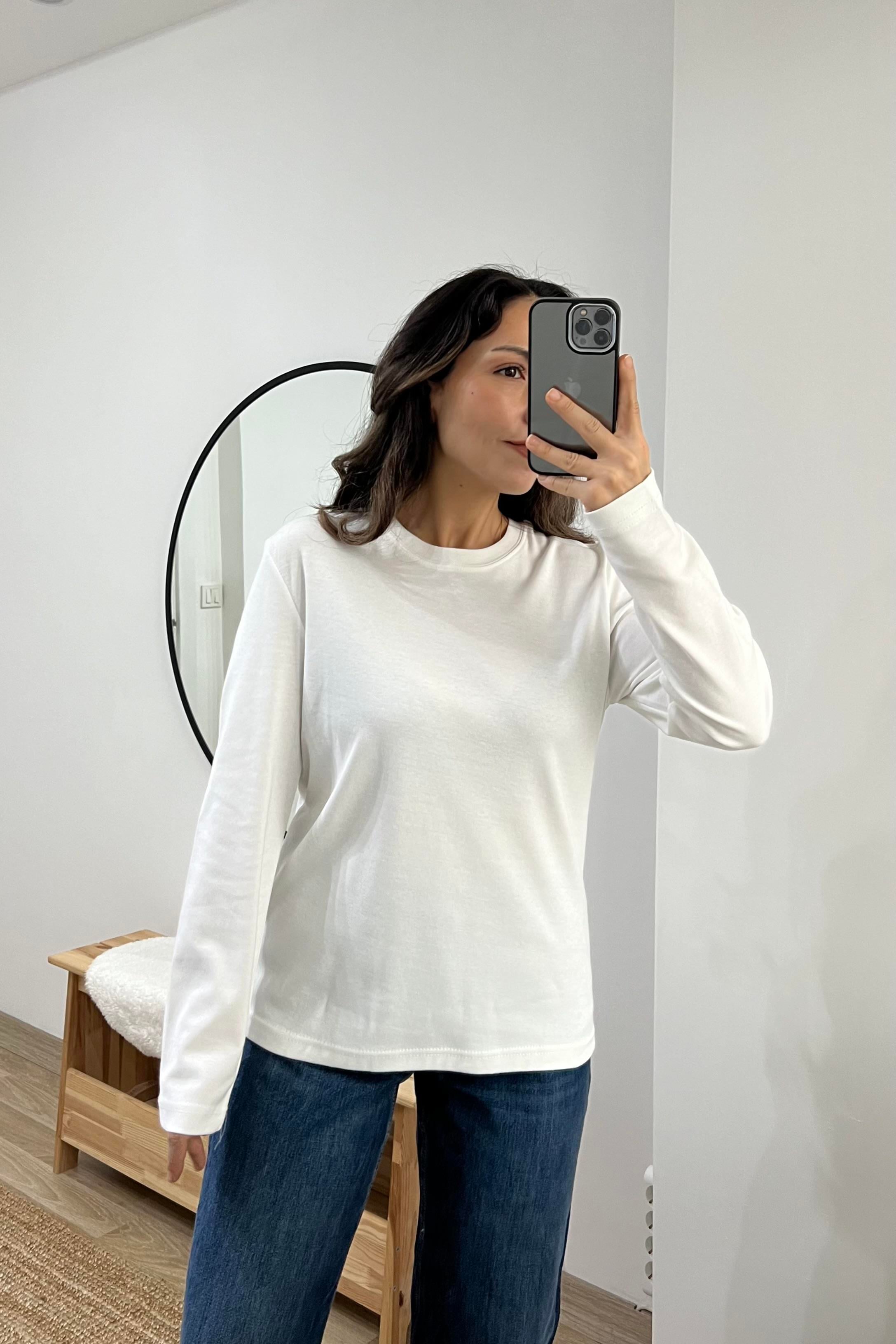 Beyaz Organik Pamuklu Uzun Kollu Basic Tshirt