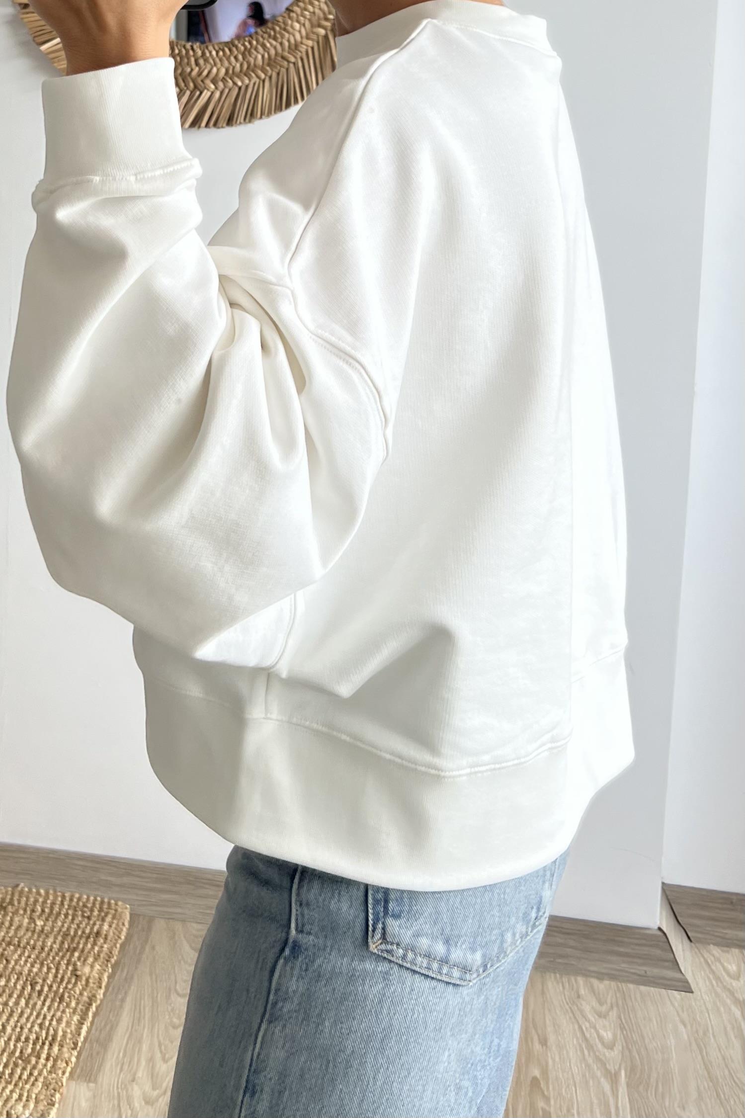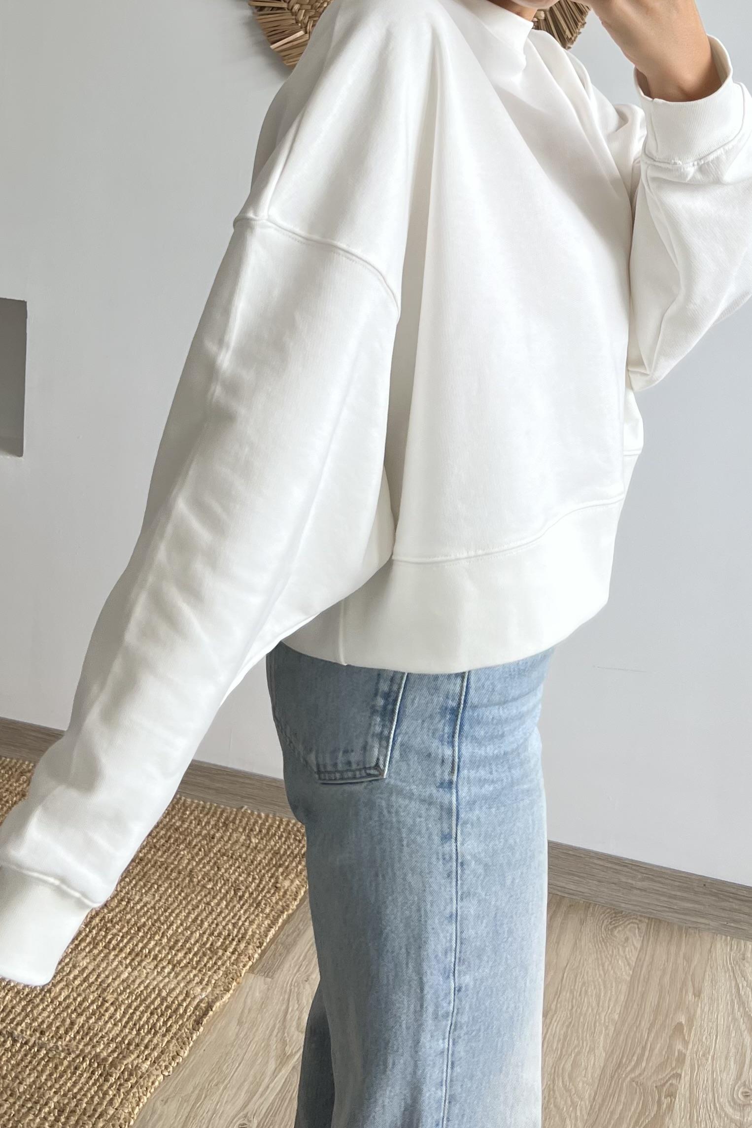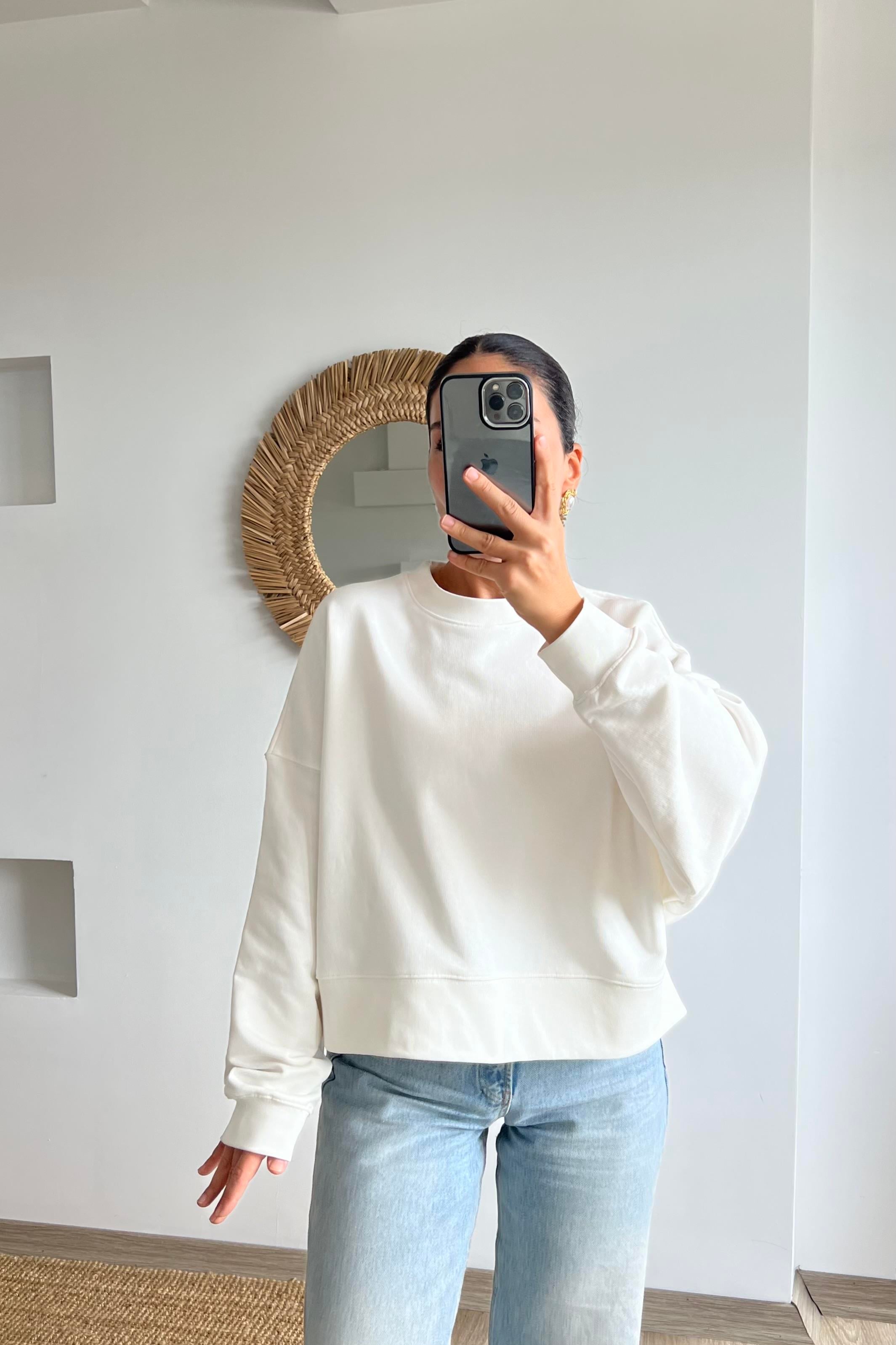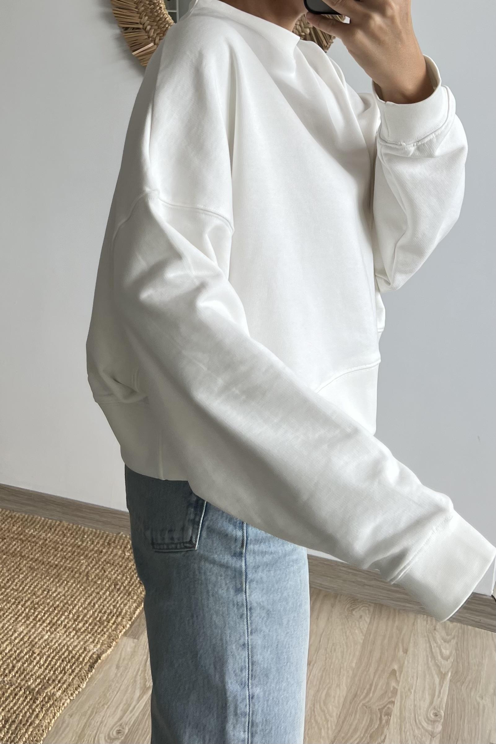 Beyaz Oversize Düşük Omuz Sweatshirt