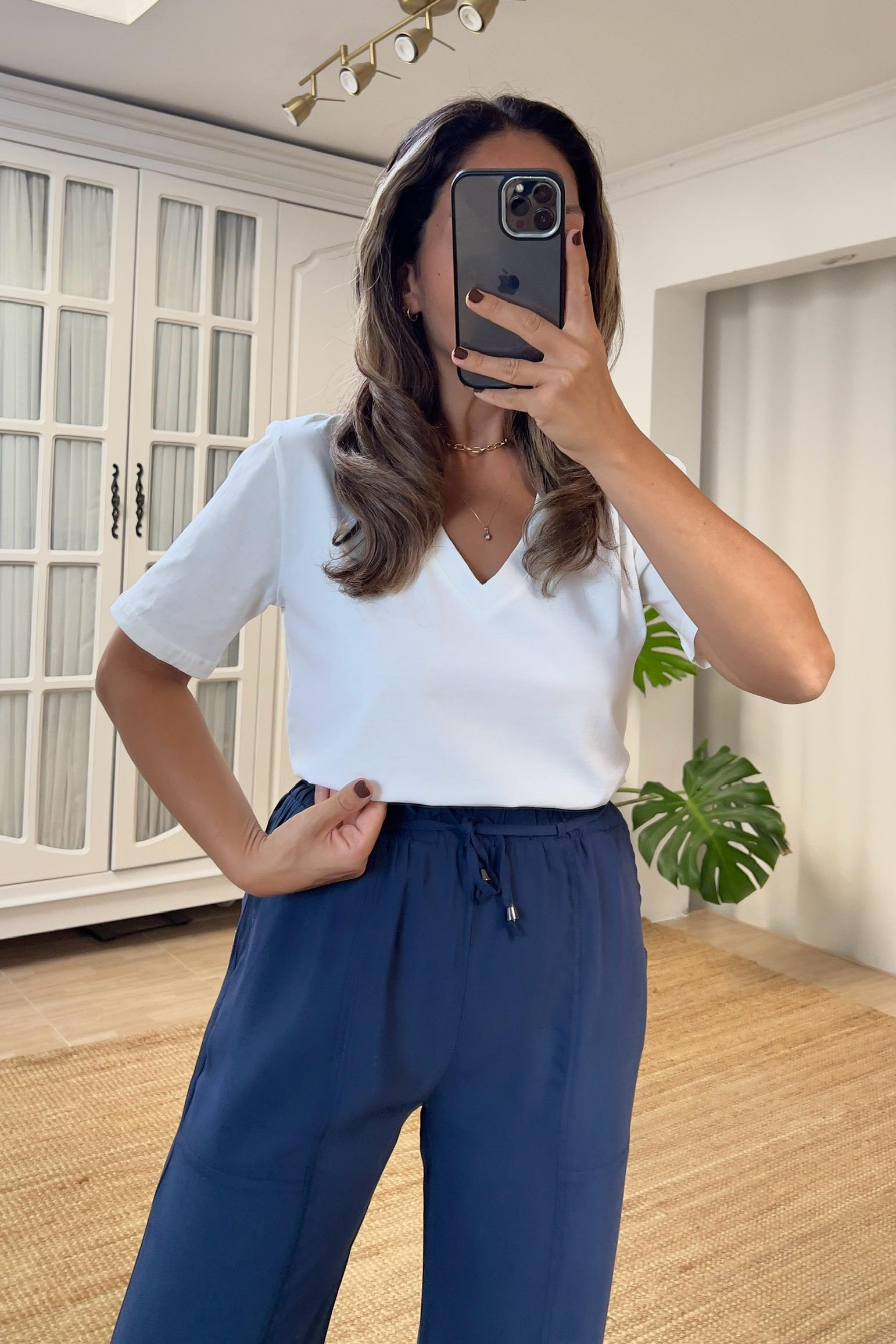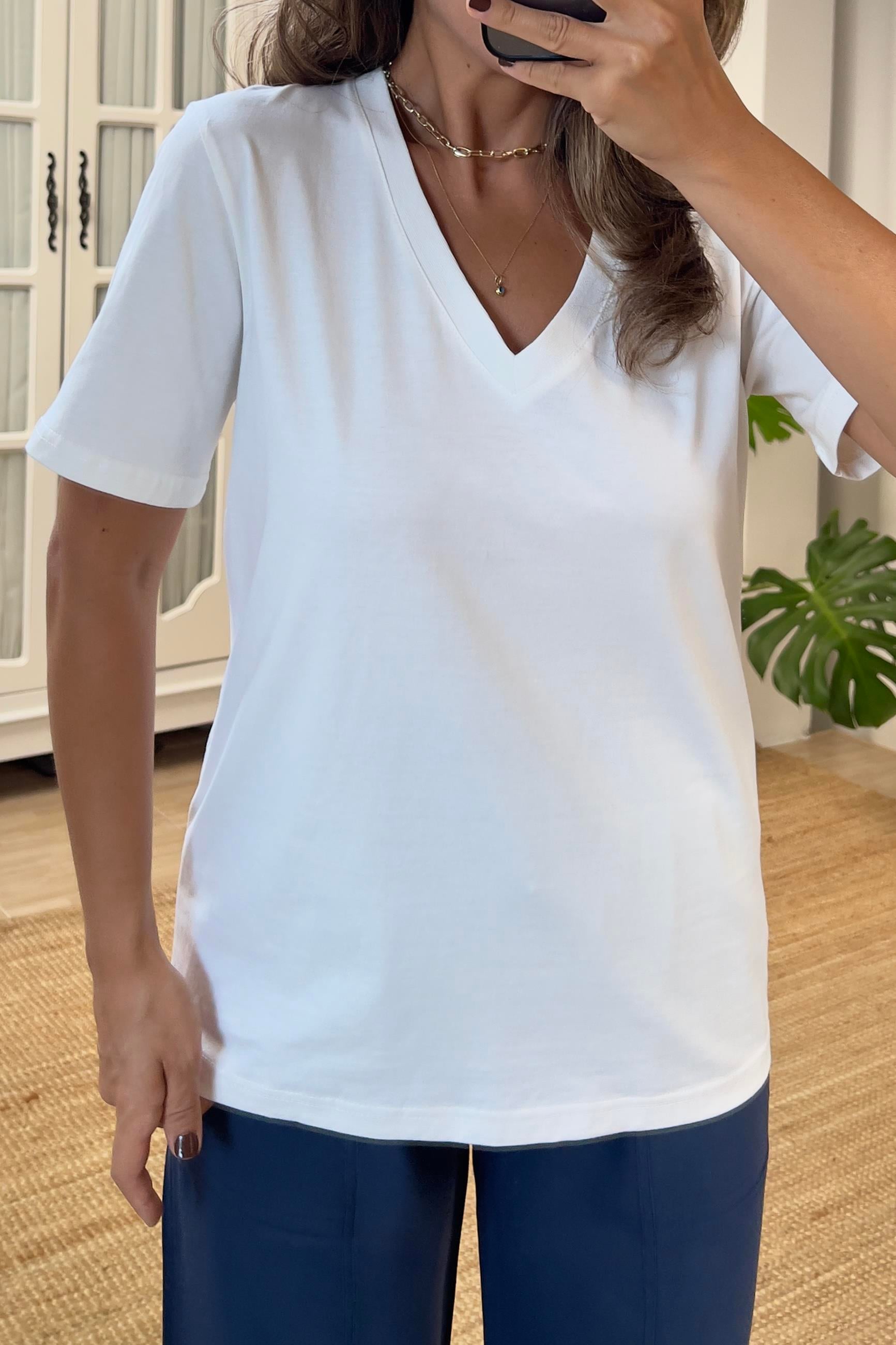 Beyaz V Yaka Organik Pamuklu Basic Tshirt