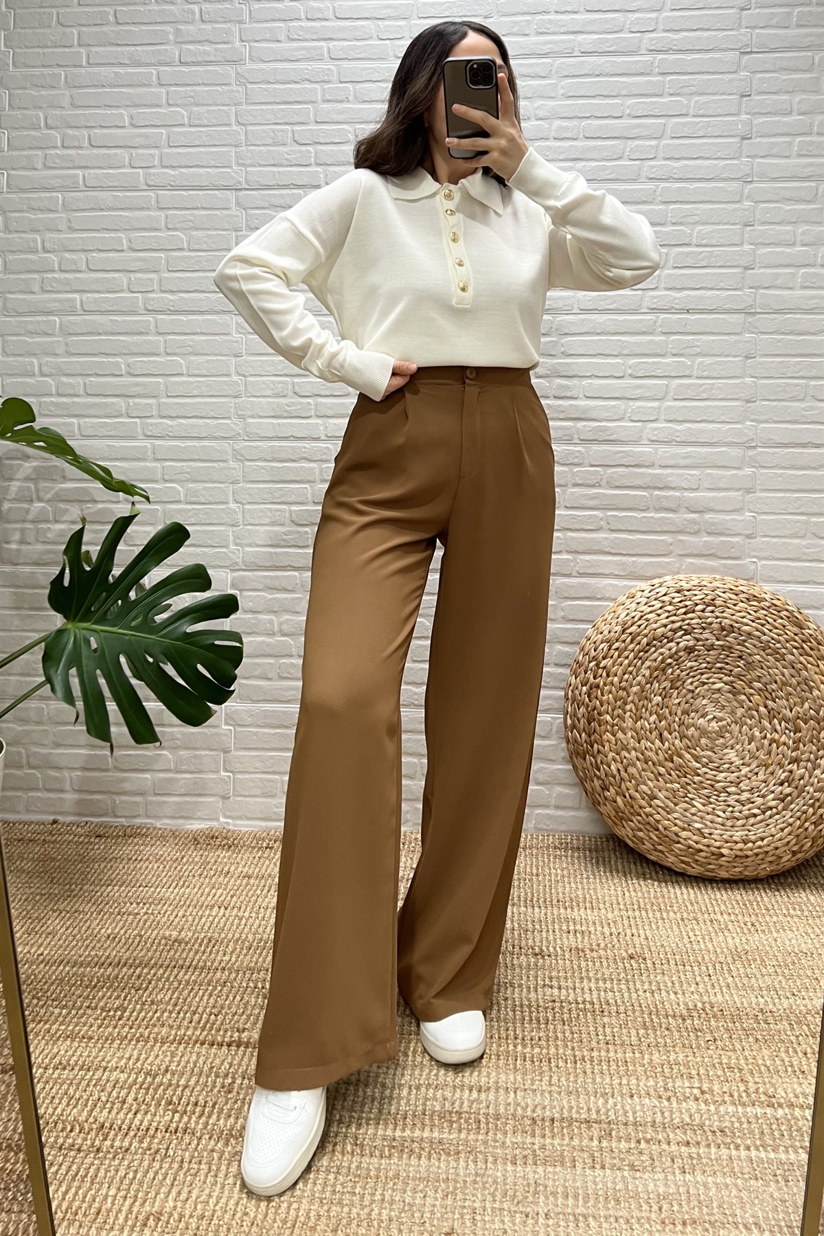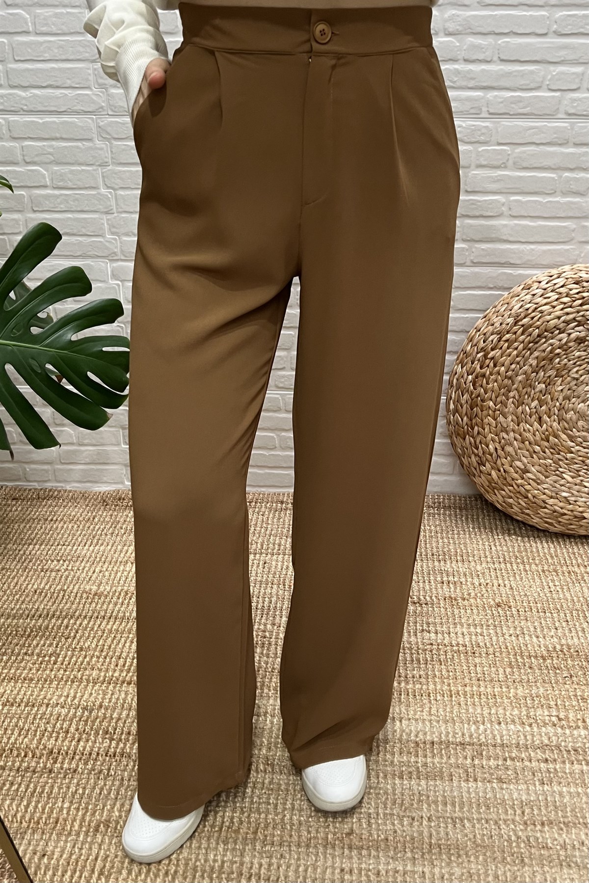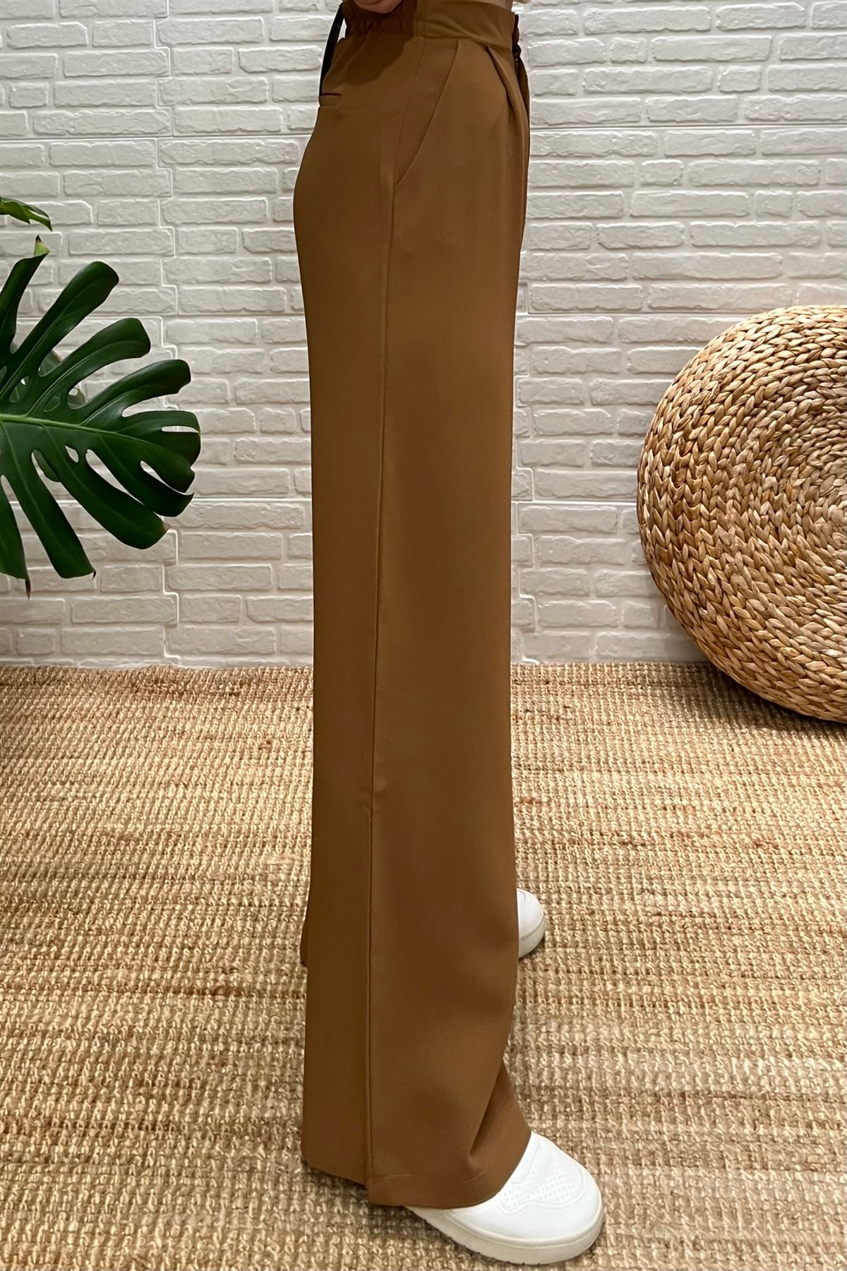 Camel Beli Lastikli Palazzo Pantolon