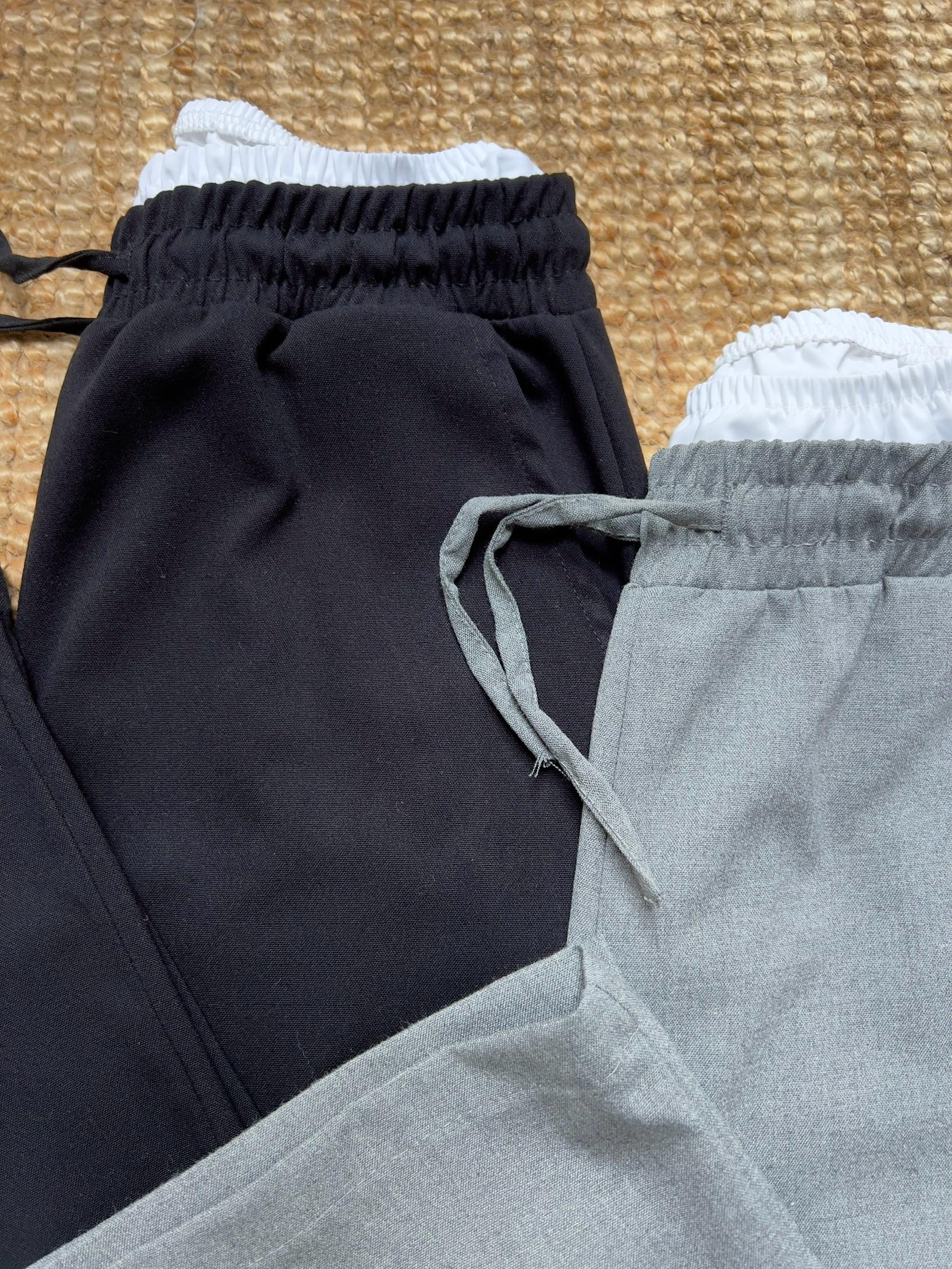 Gri Çift Bel Detaylı Palazzo Pantolon
