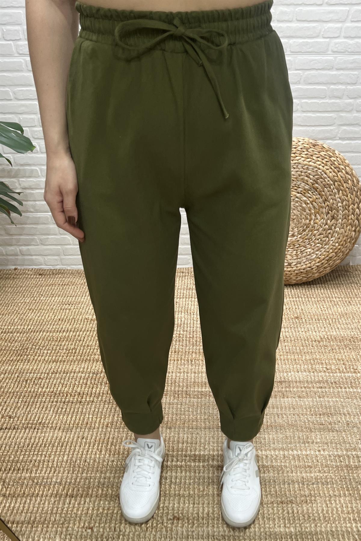 Haki Beli Lastikli Paçası Pileli Gabardin Pantolon