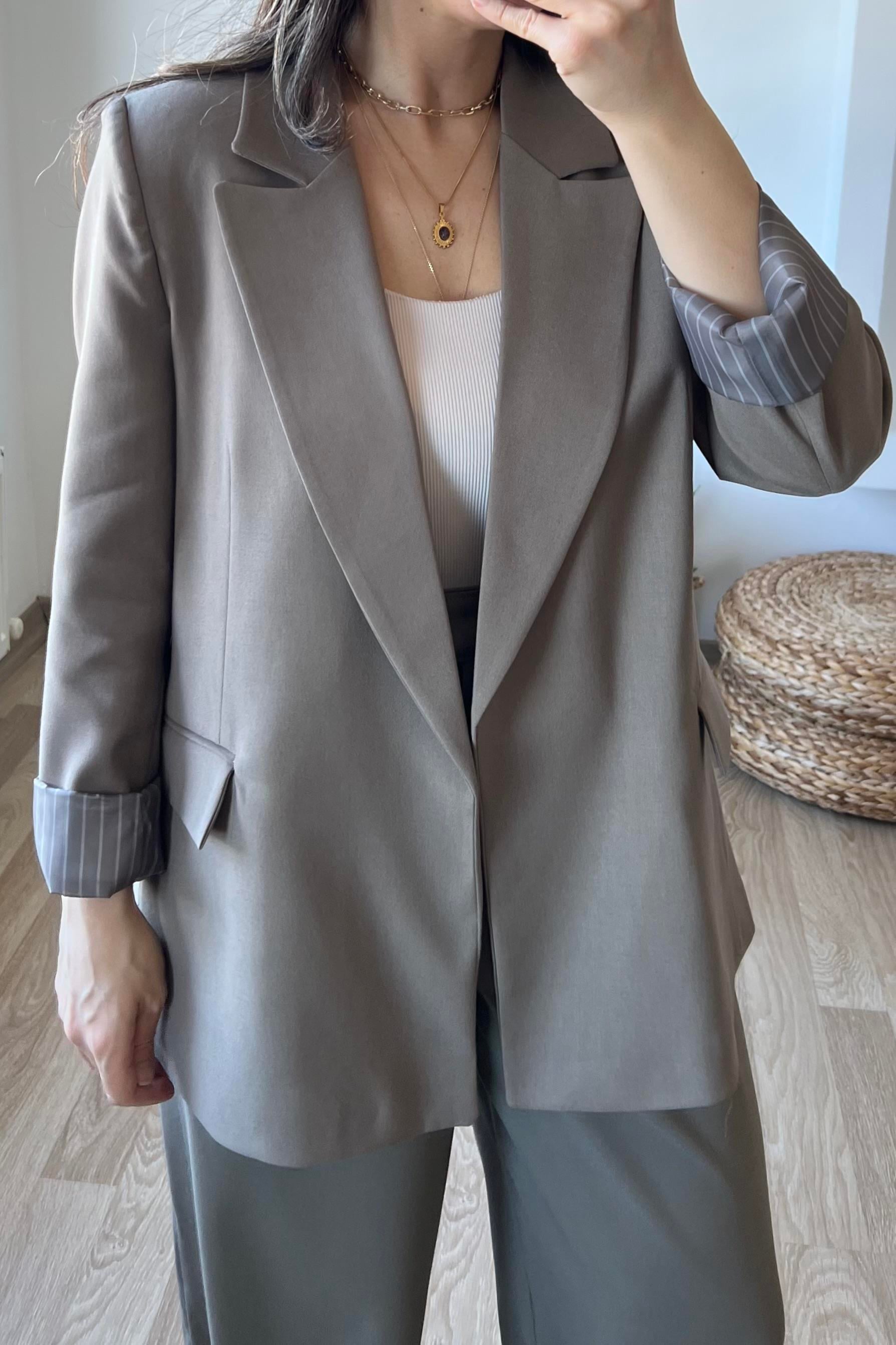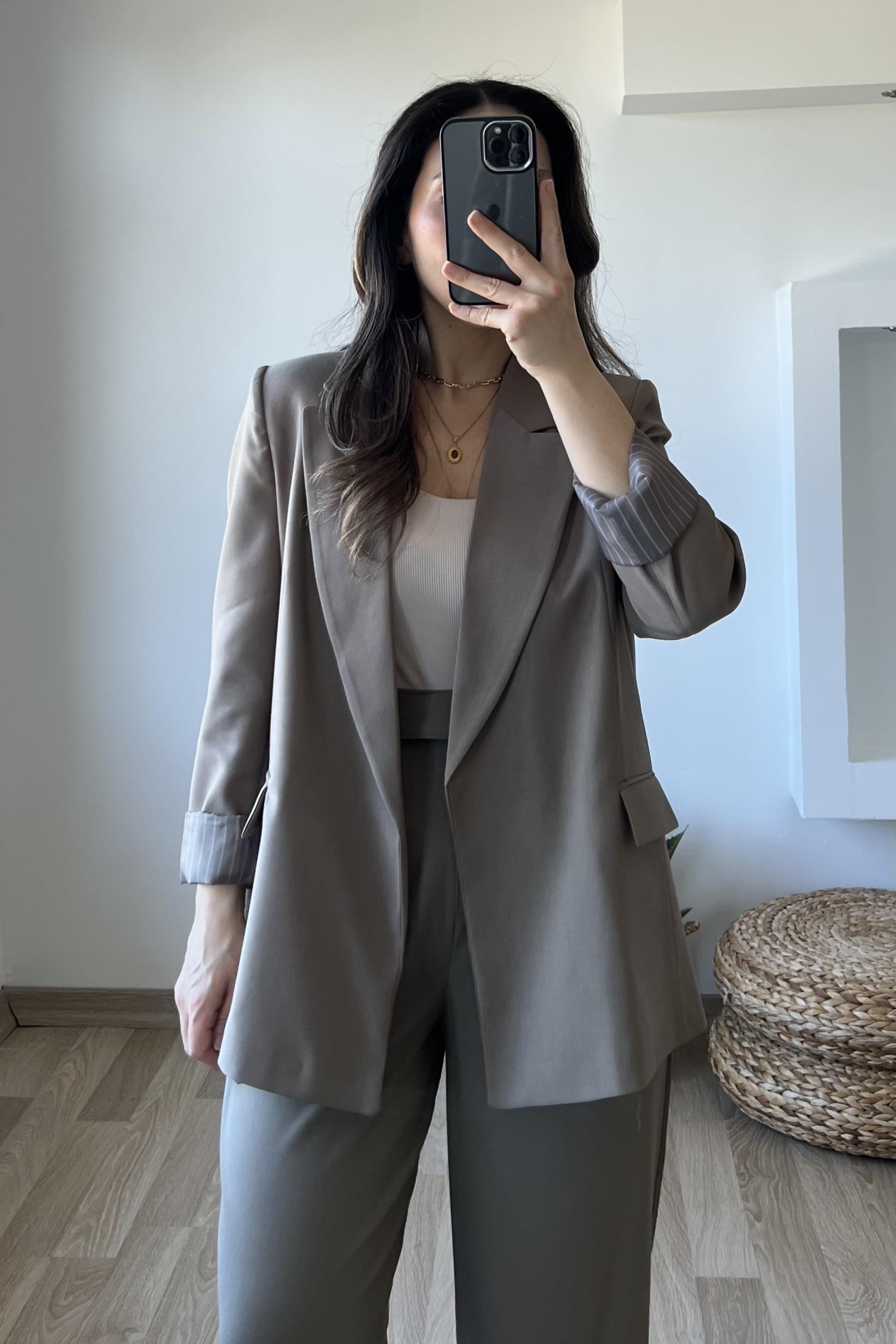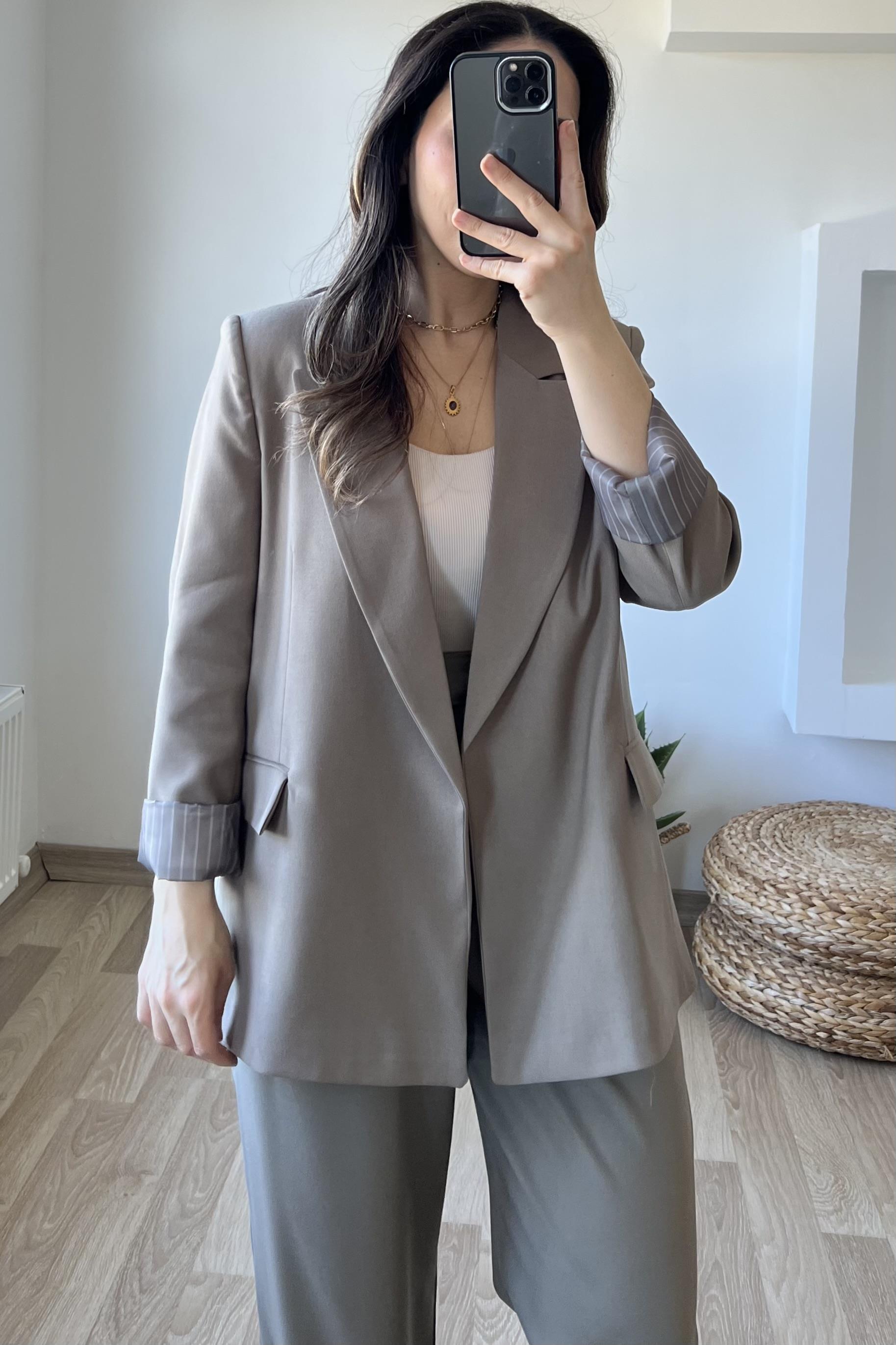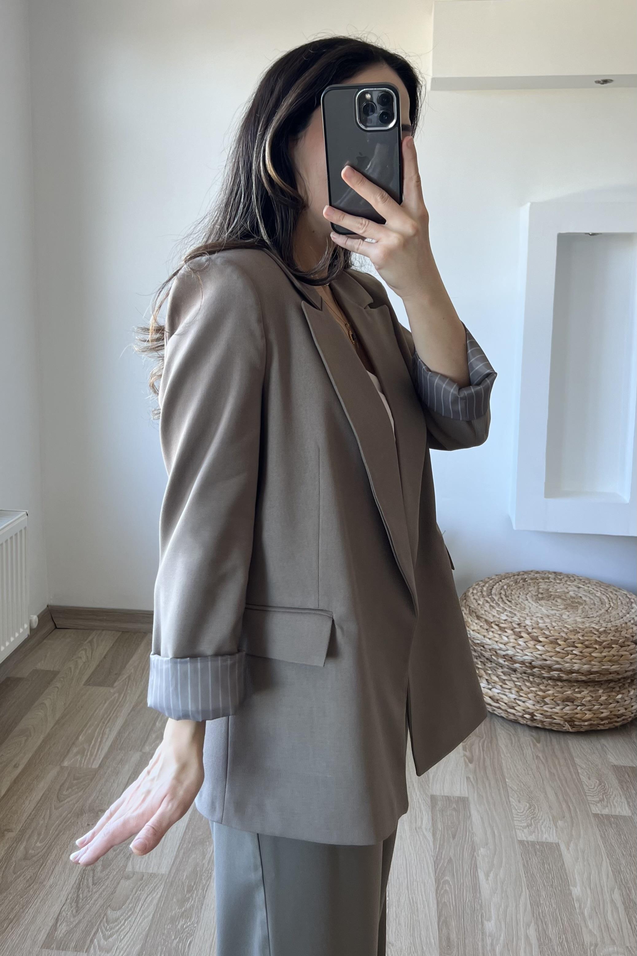 Haki Premium Kolu Katlamalı Blazer