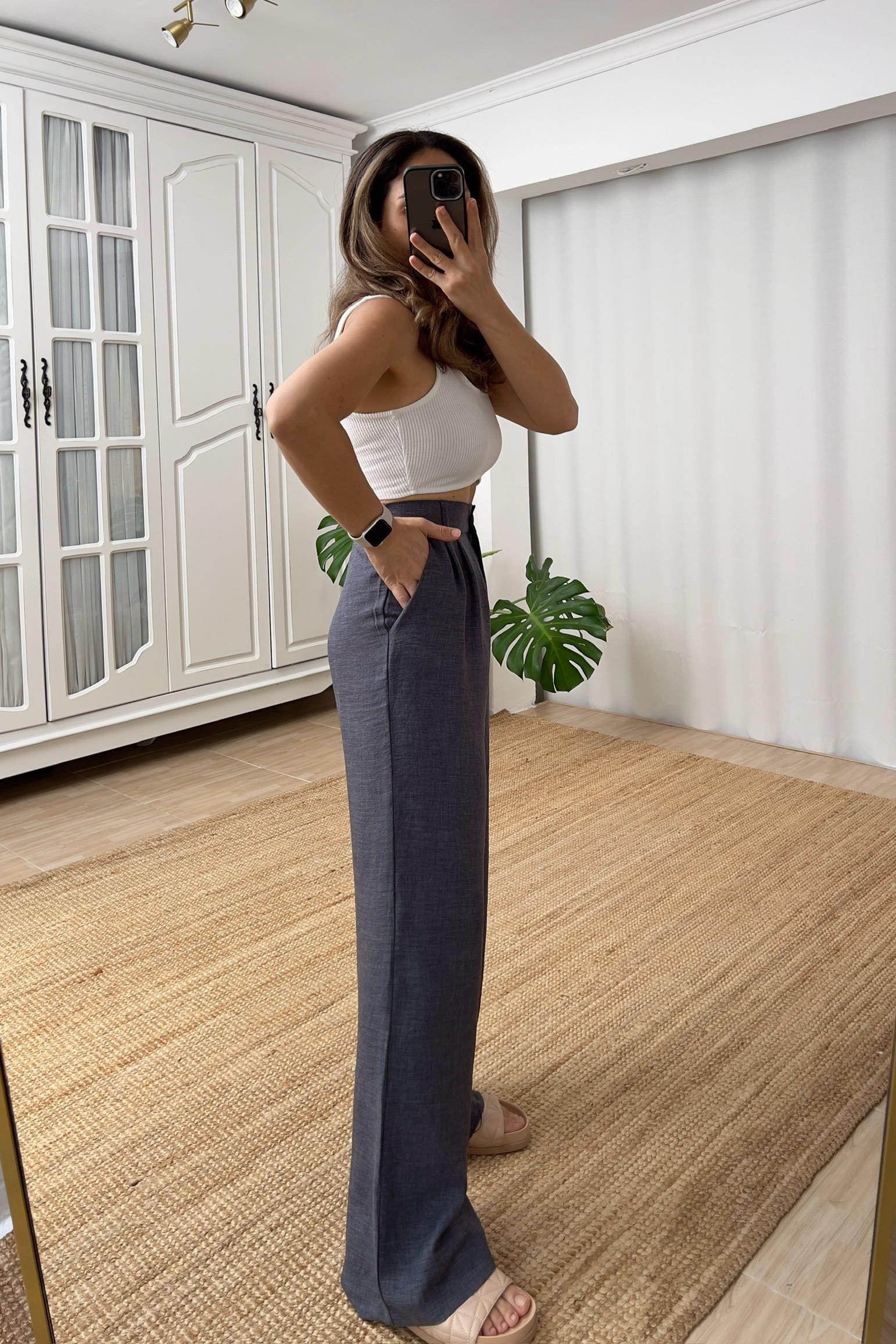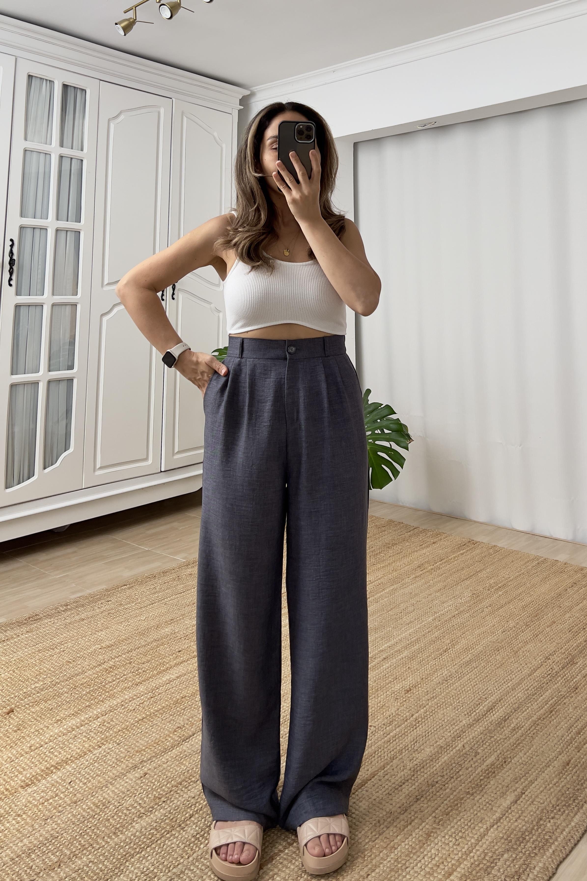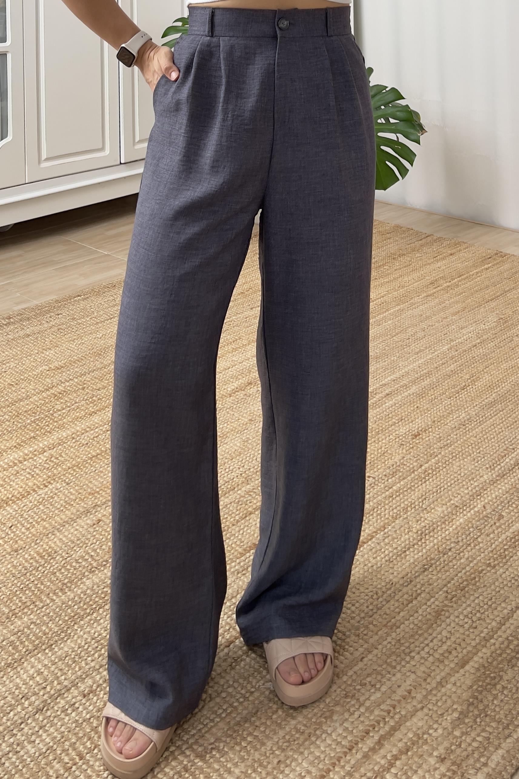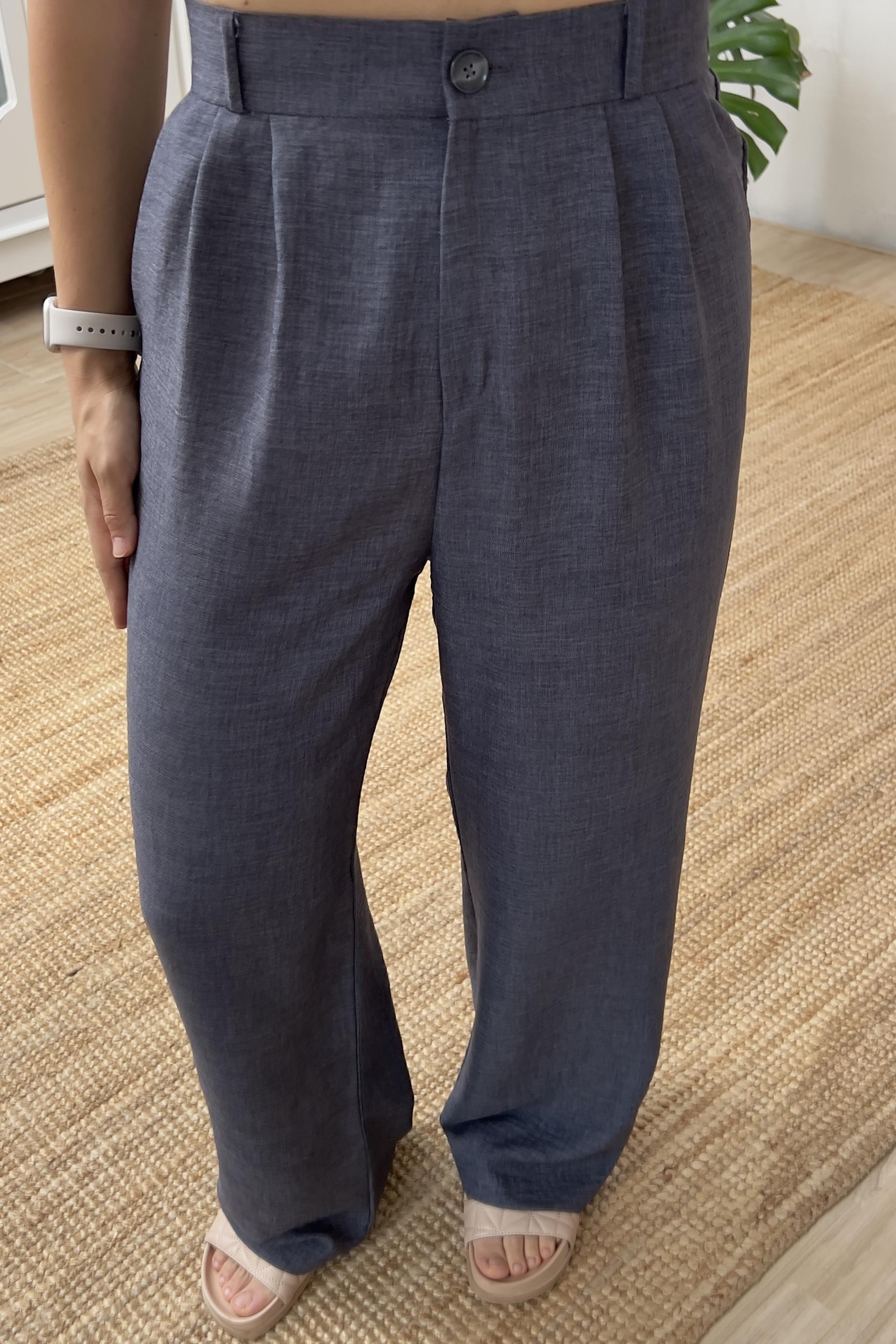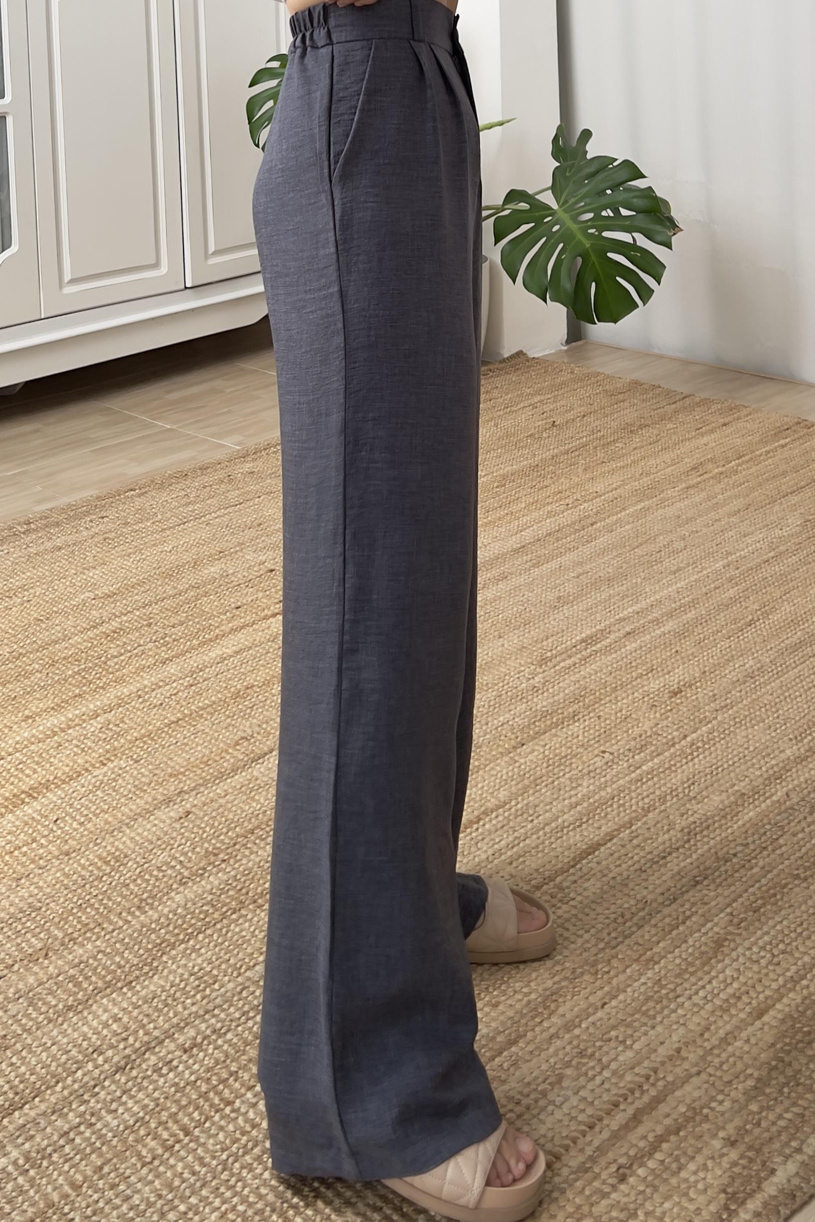 İndigo Beli Lastikli Dökümlü Pantolon