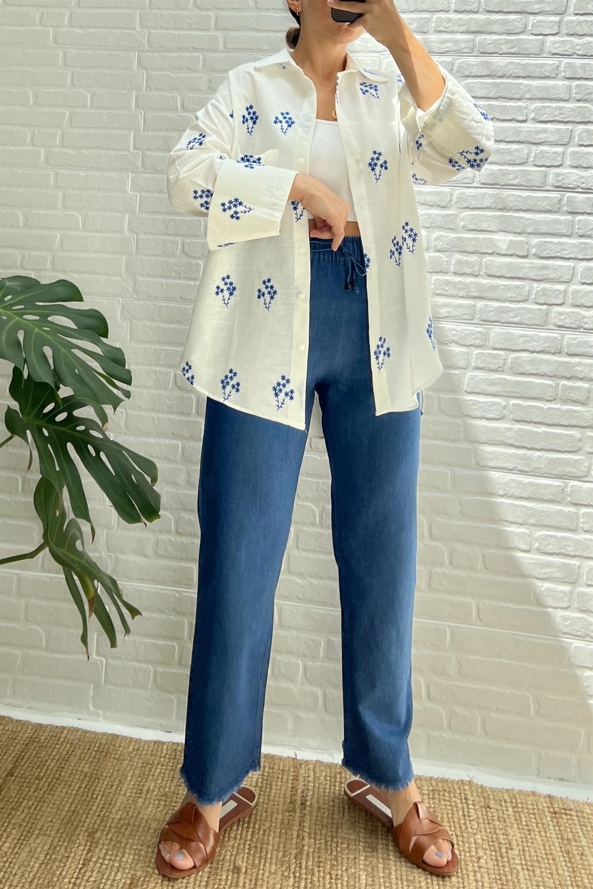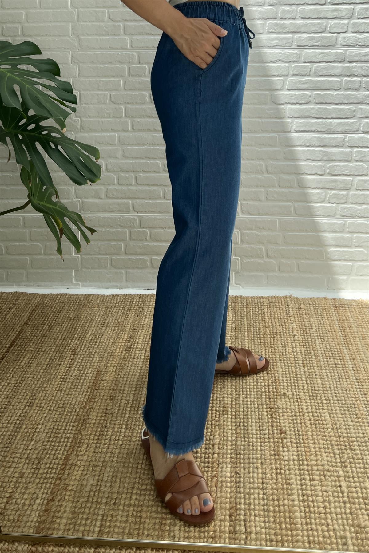 İndigo Paçası Püskül Detaylı Rahat Pantolon