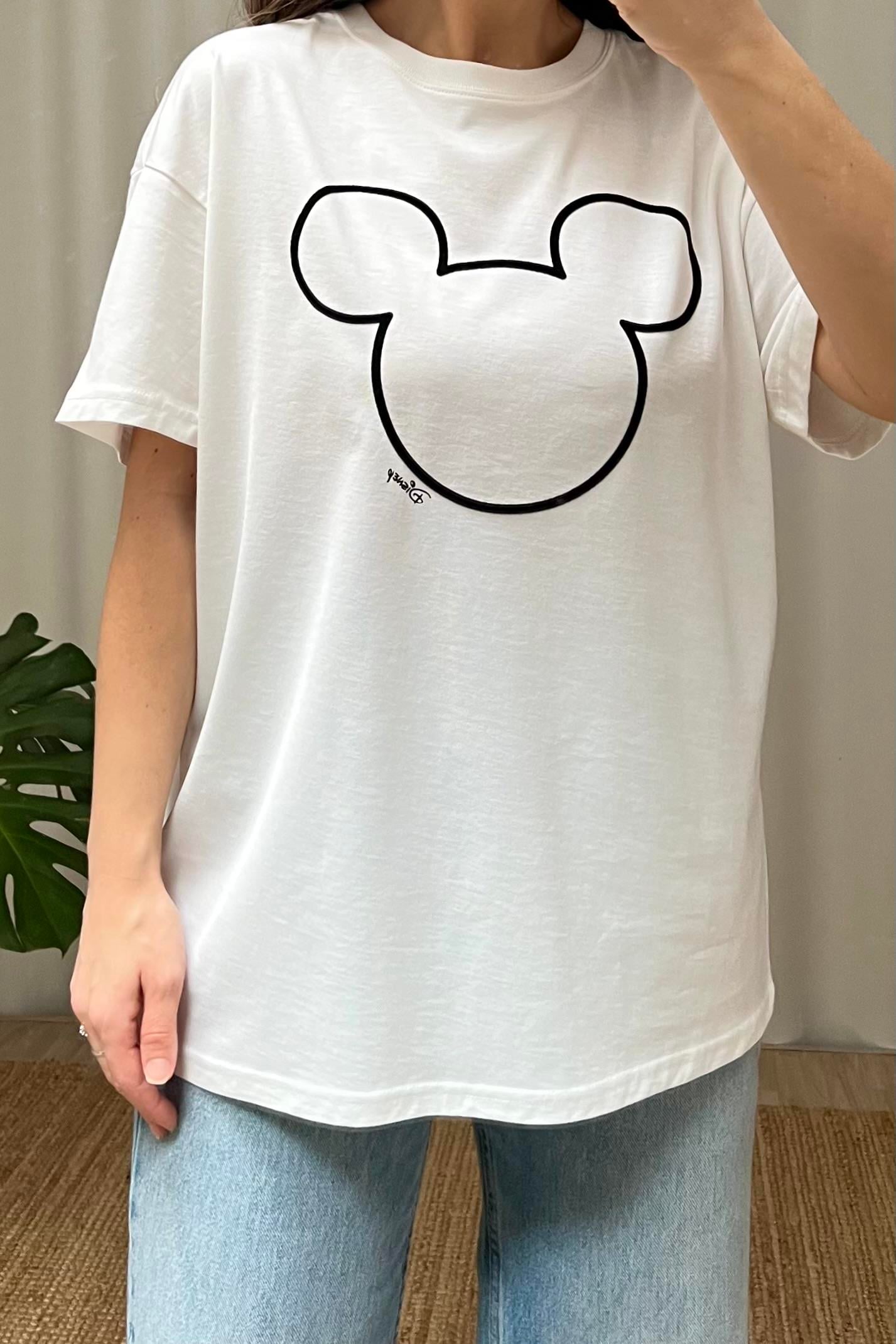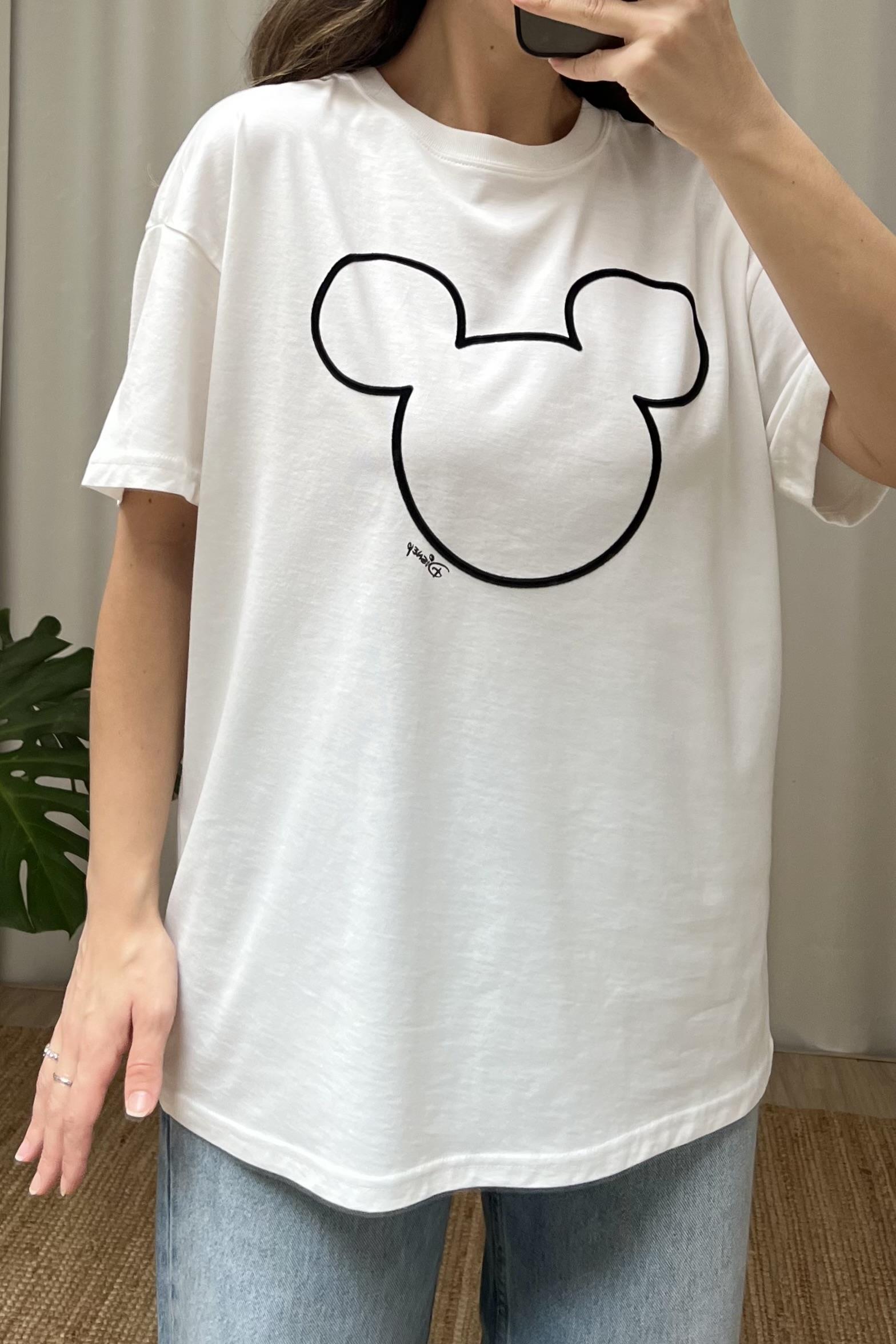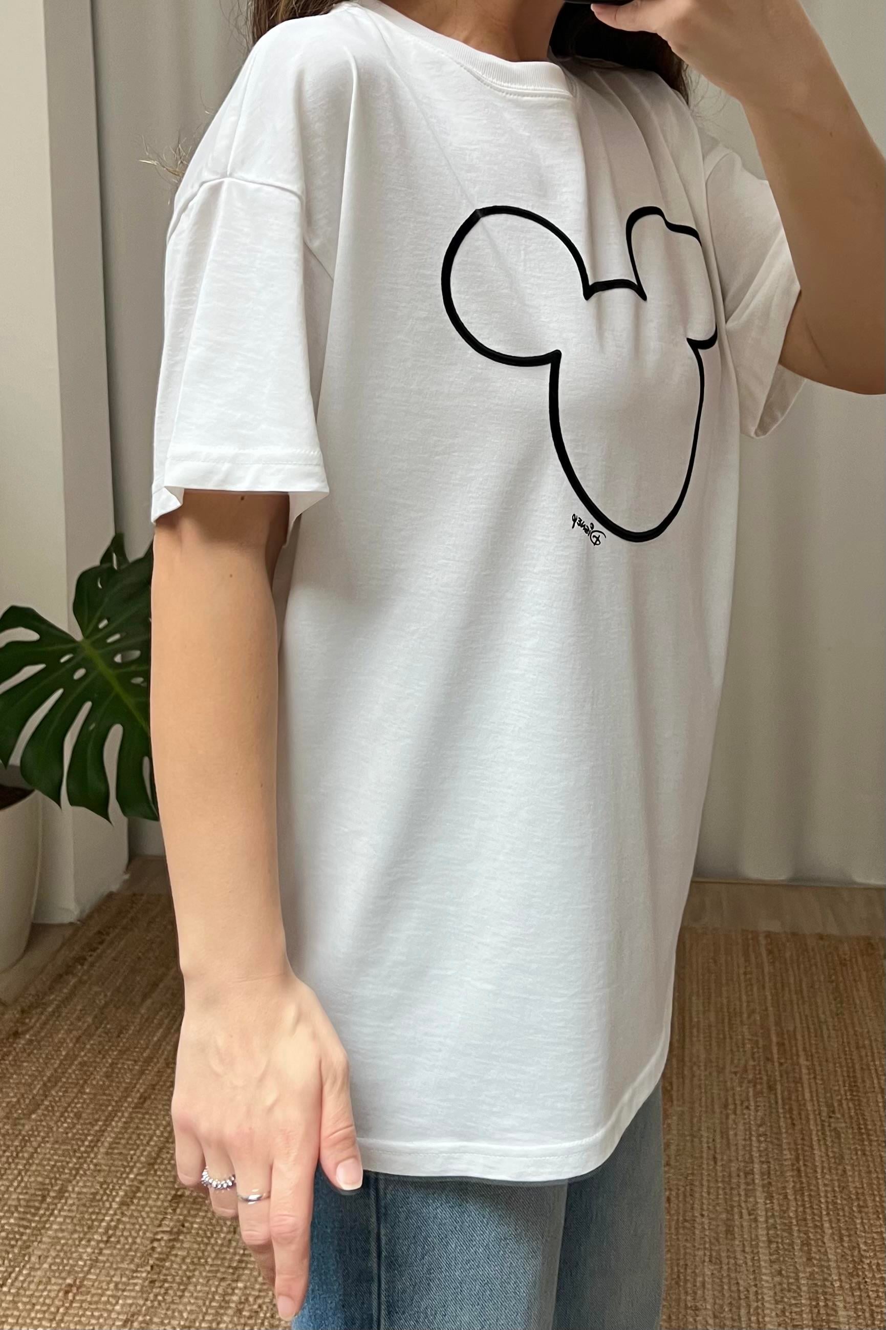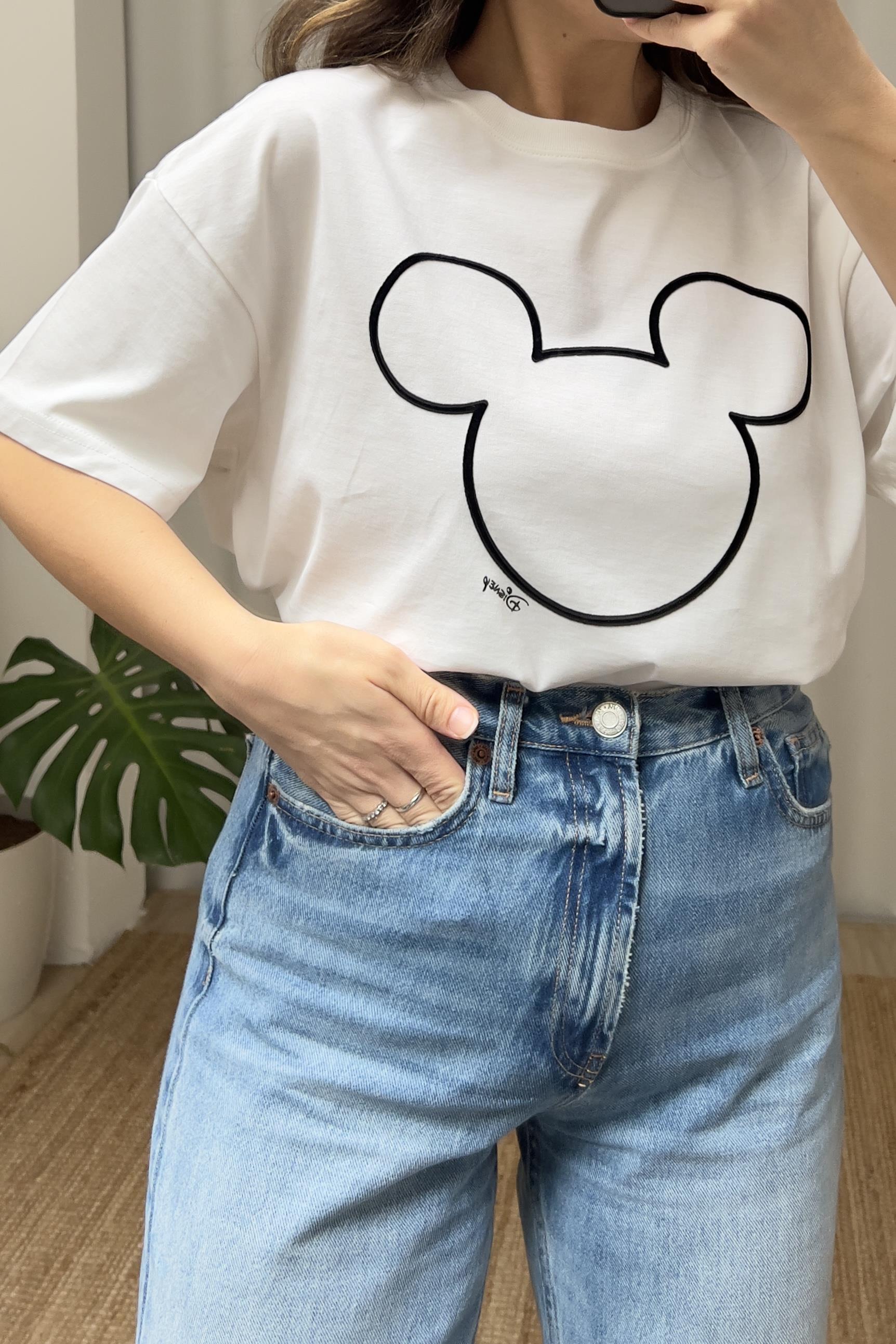 Kabartmalı Mickey Siluetli Tshirt