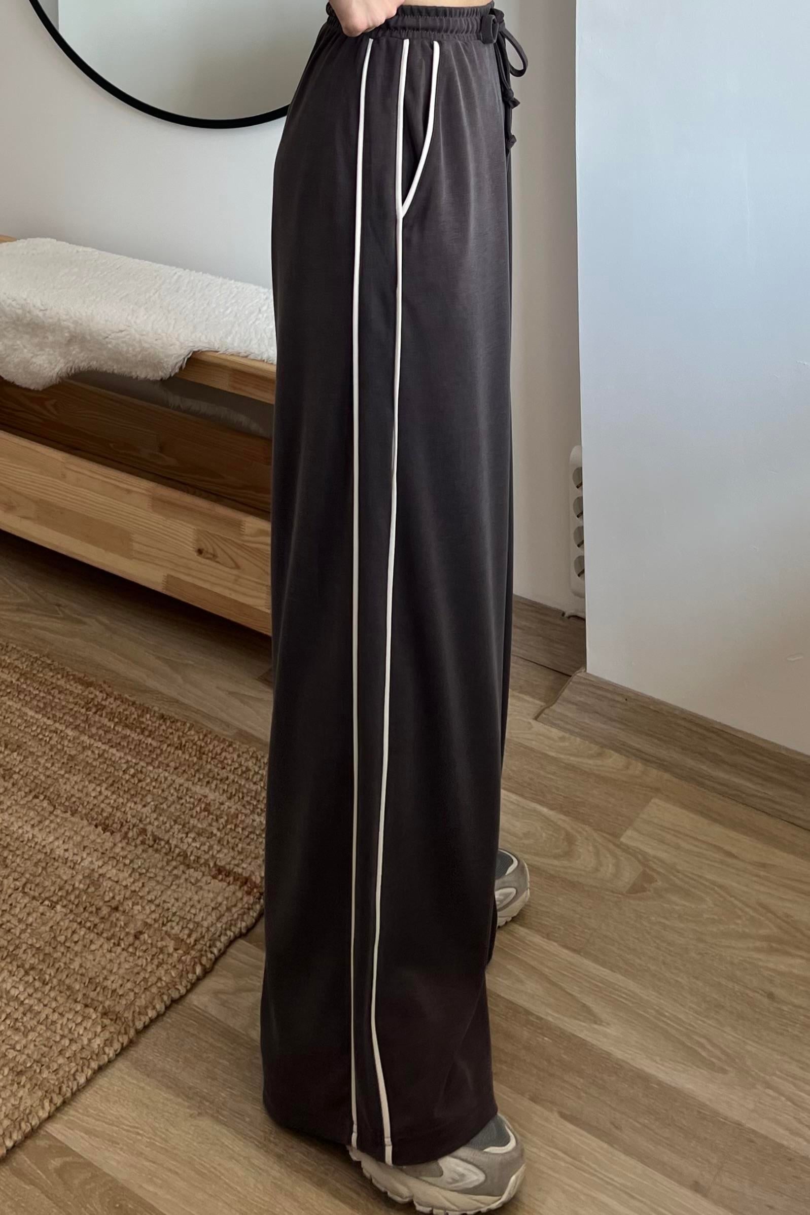 Kahve Oys Şerit Detaylı Rahat Modal Pantolon