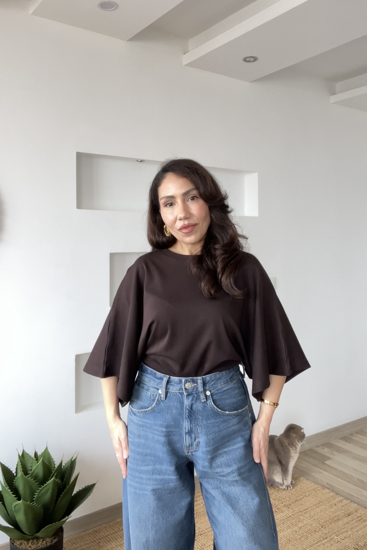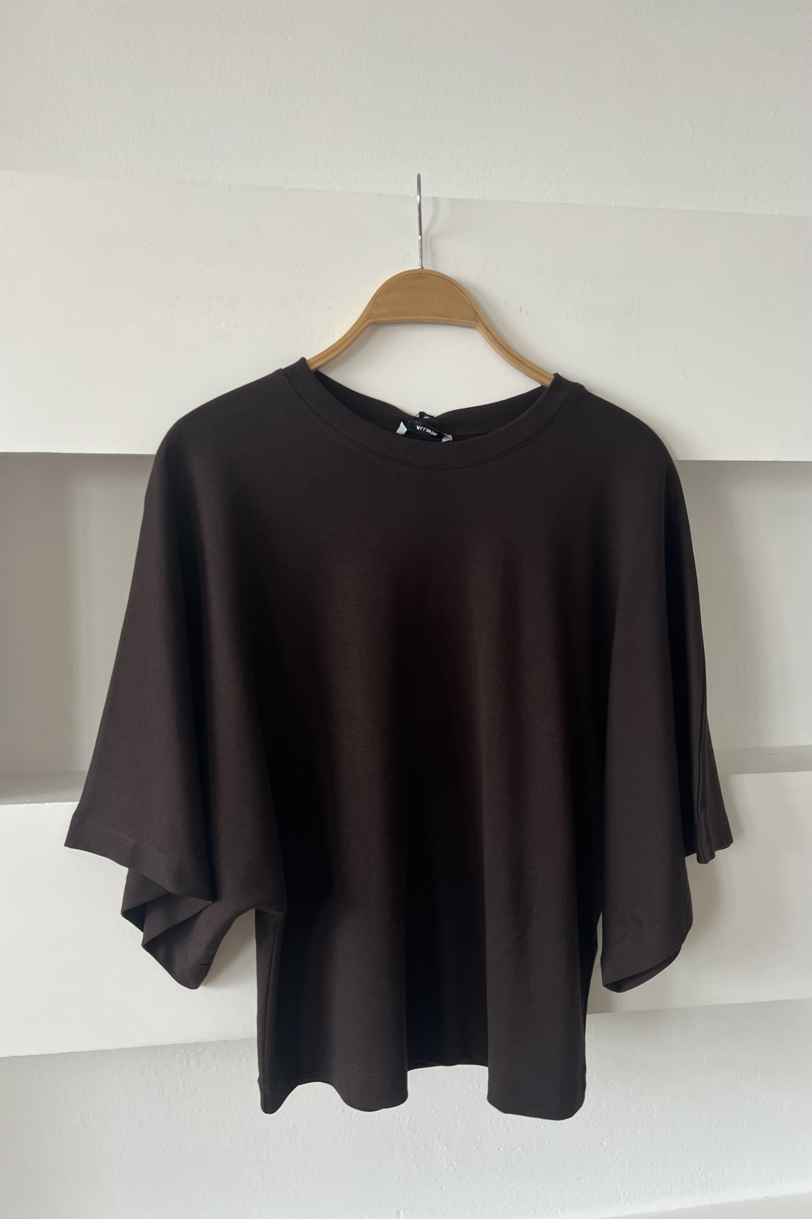Kahverengi Yarasa Kol Tok Dokulu Basic Tshirt