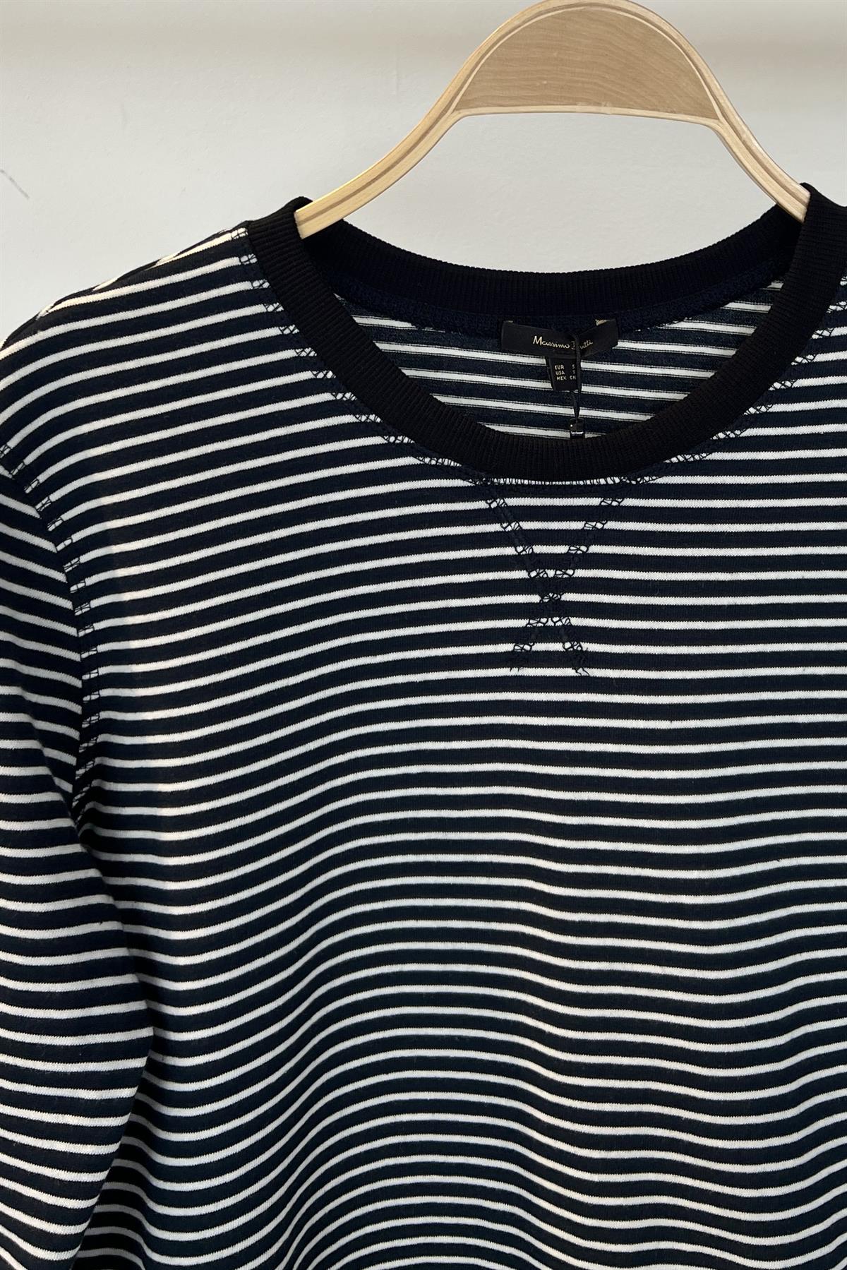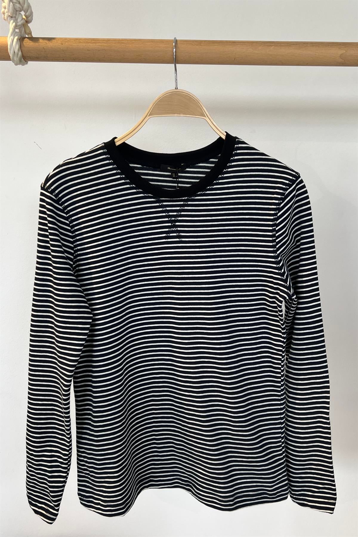 Lacivert Beyaz Çizgili Biyeli Sweatshirt