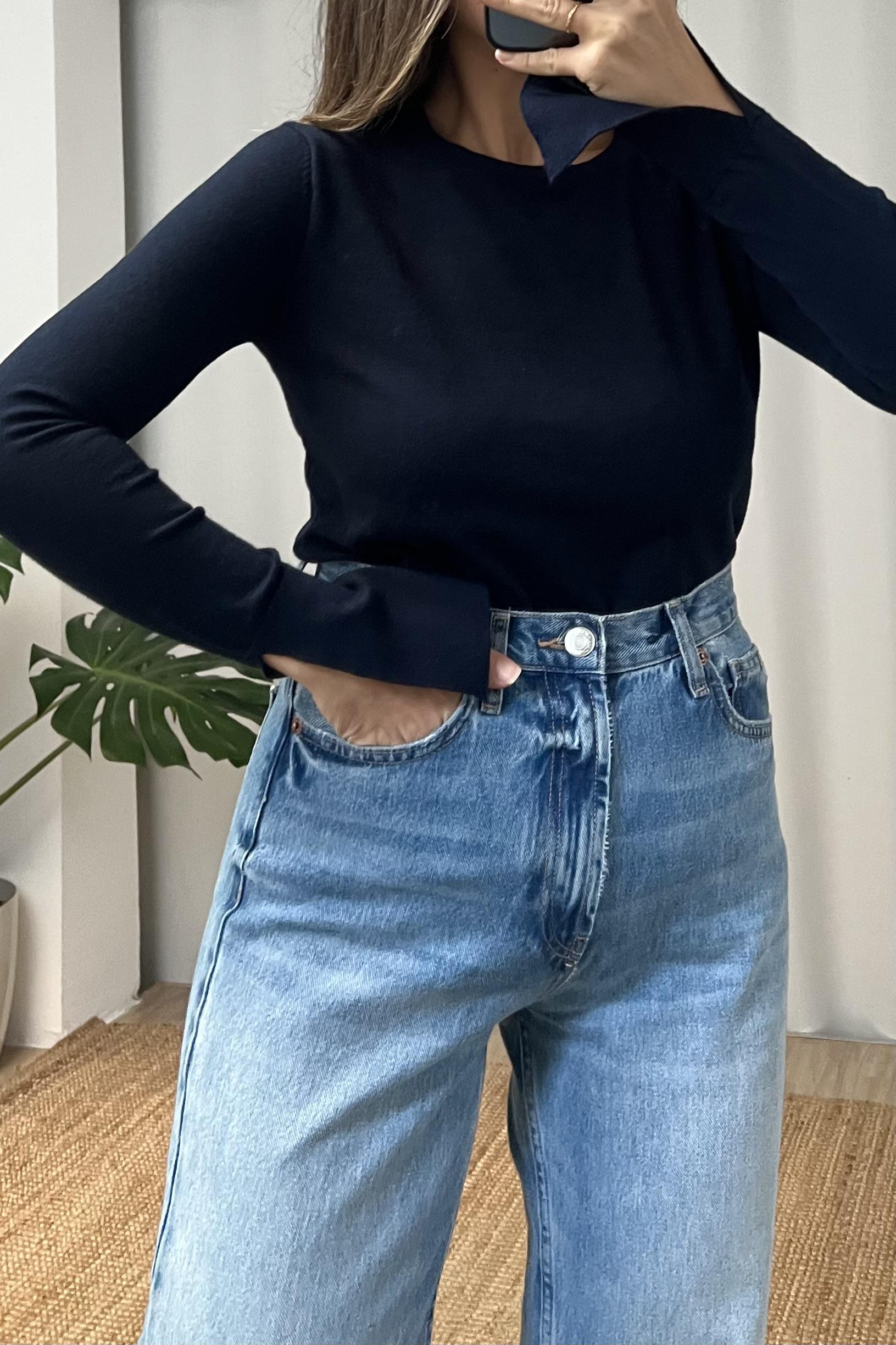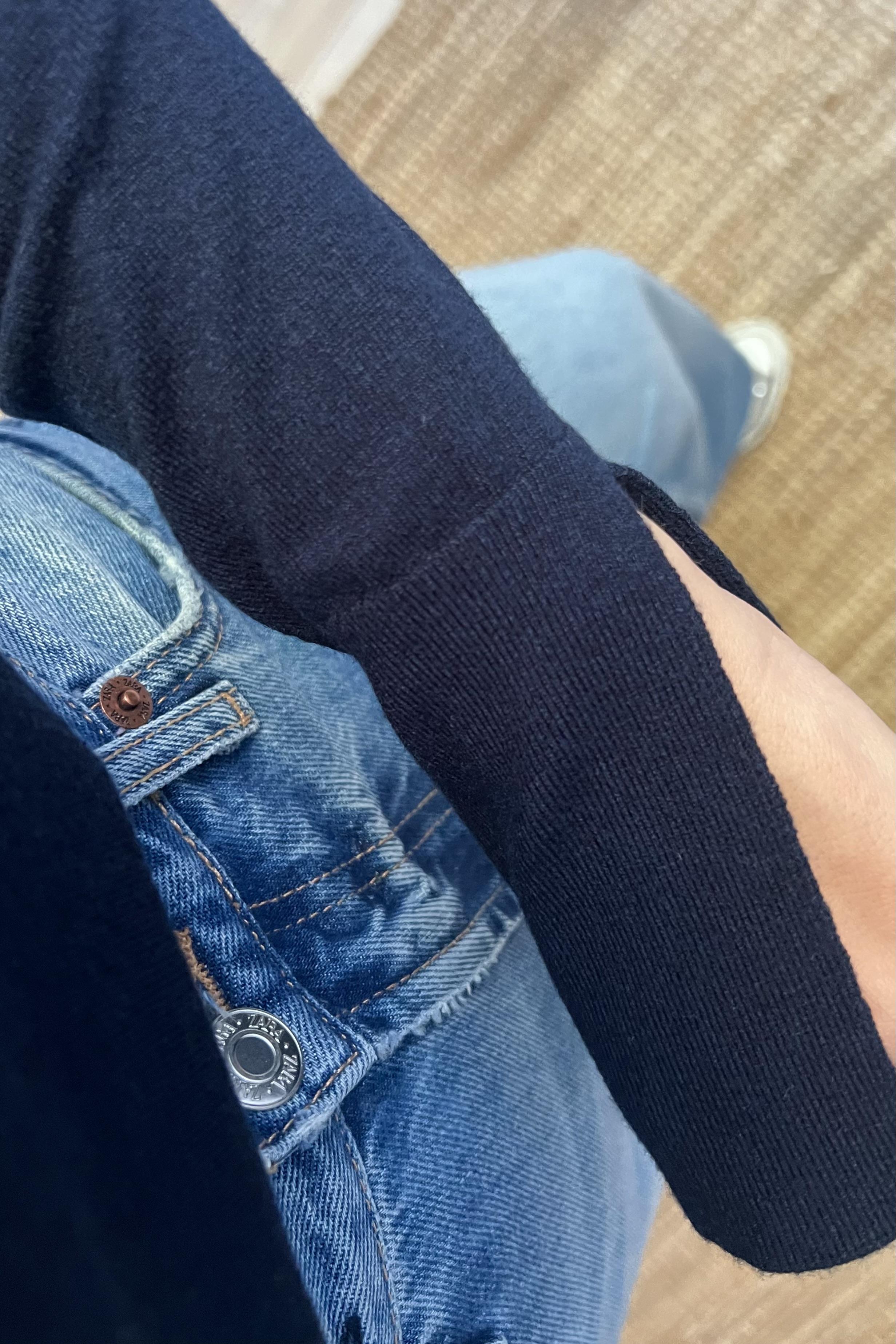 Lacivert Bisiklet Yaka Kolu Yırtmaçlı Premium Kazak