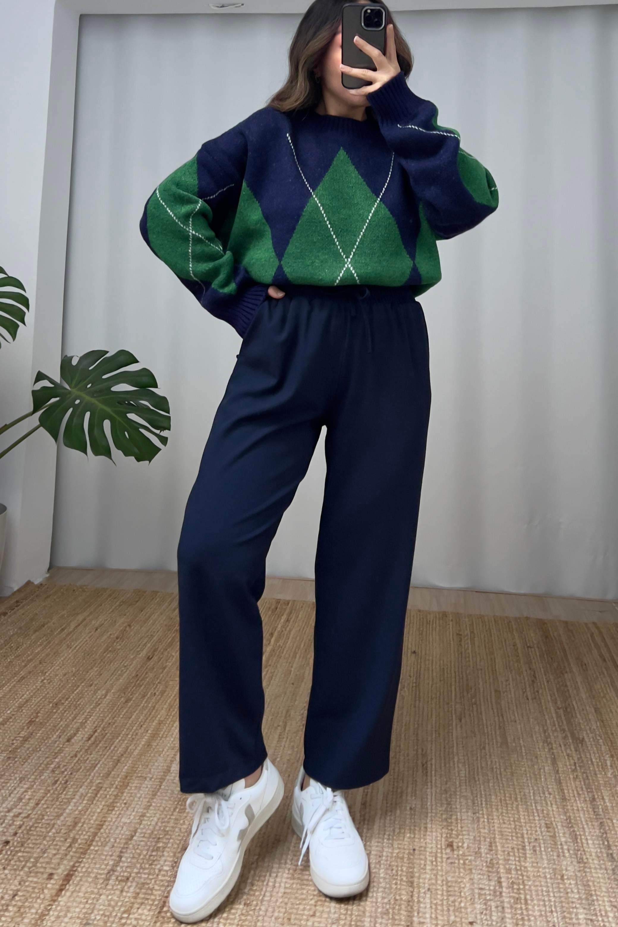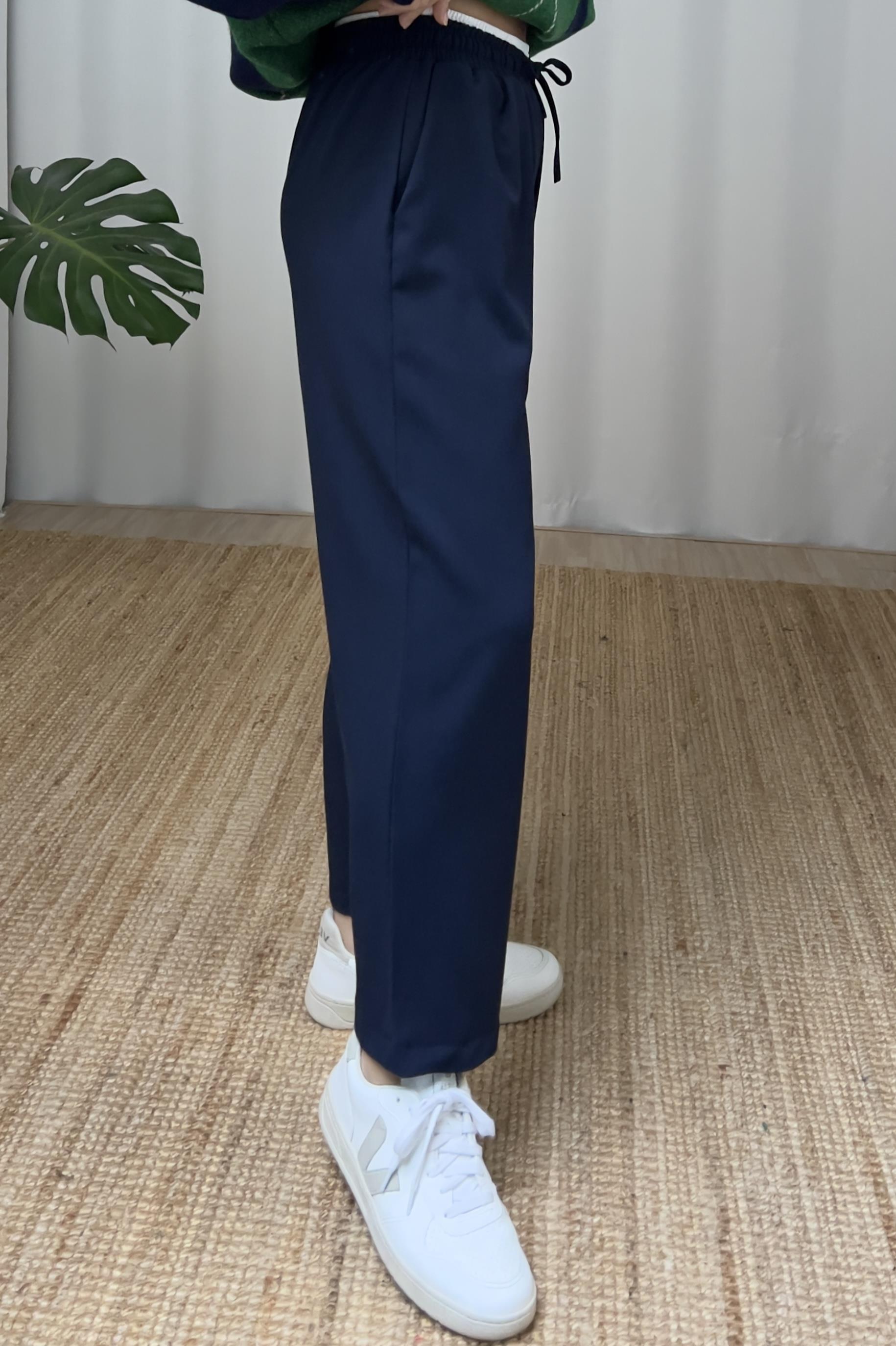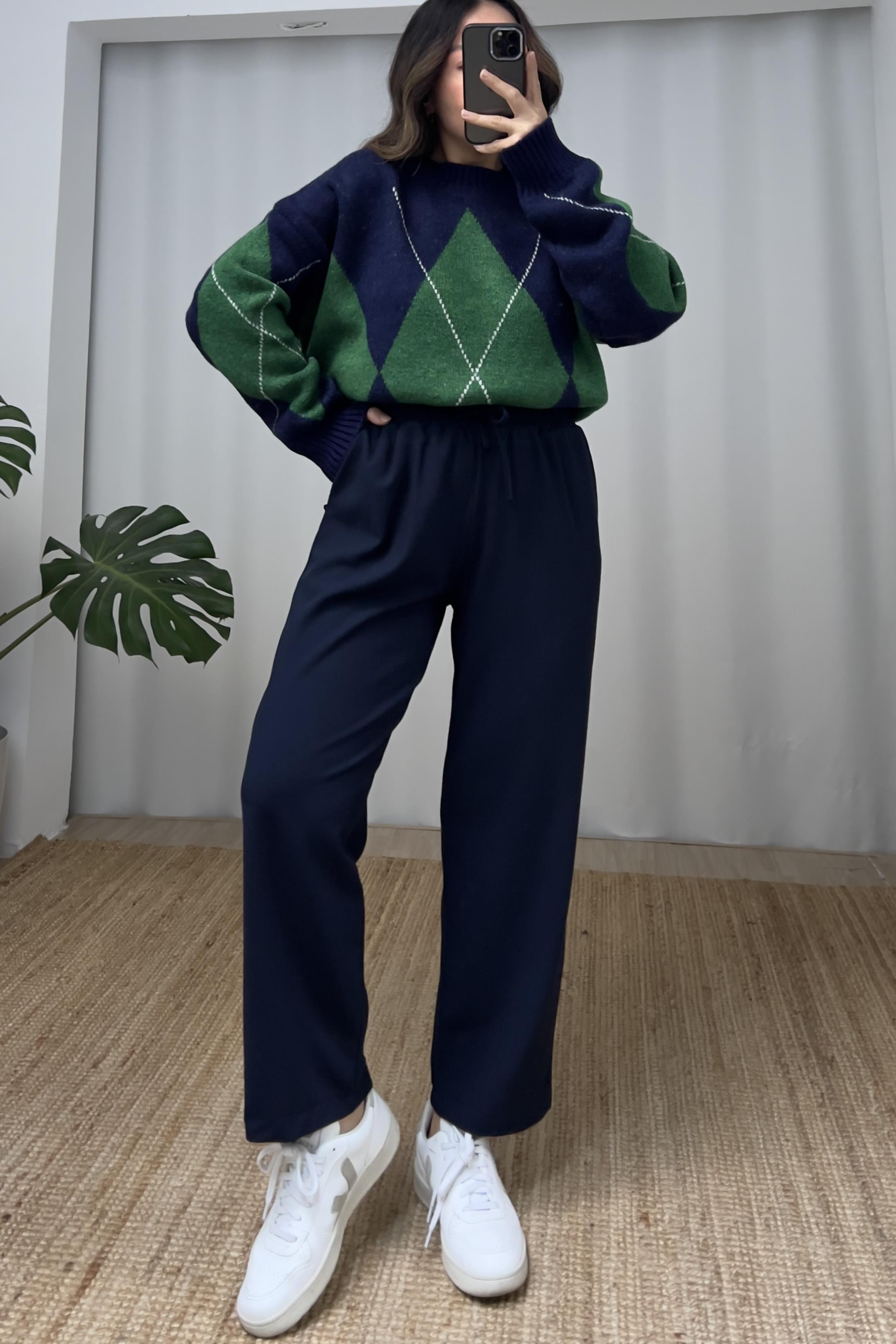 Lacivert Çift Bel Detaylı Rahat Pantolon