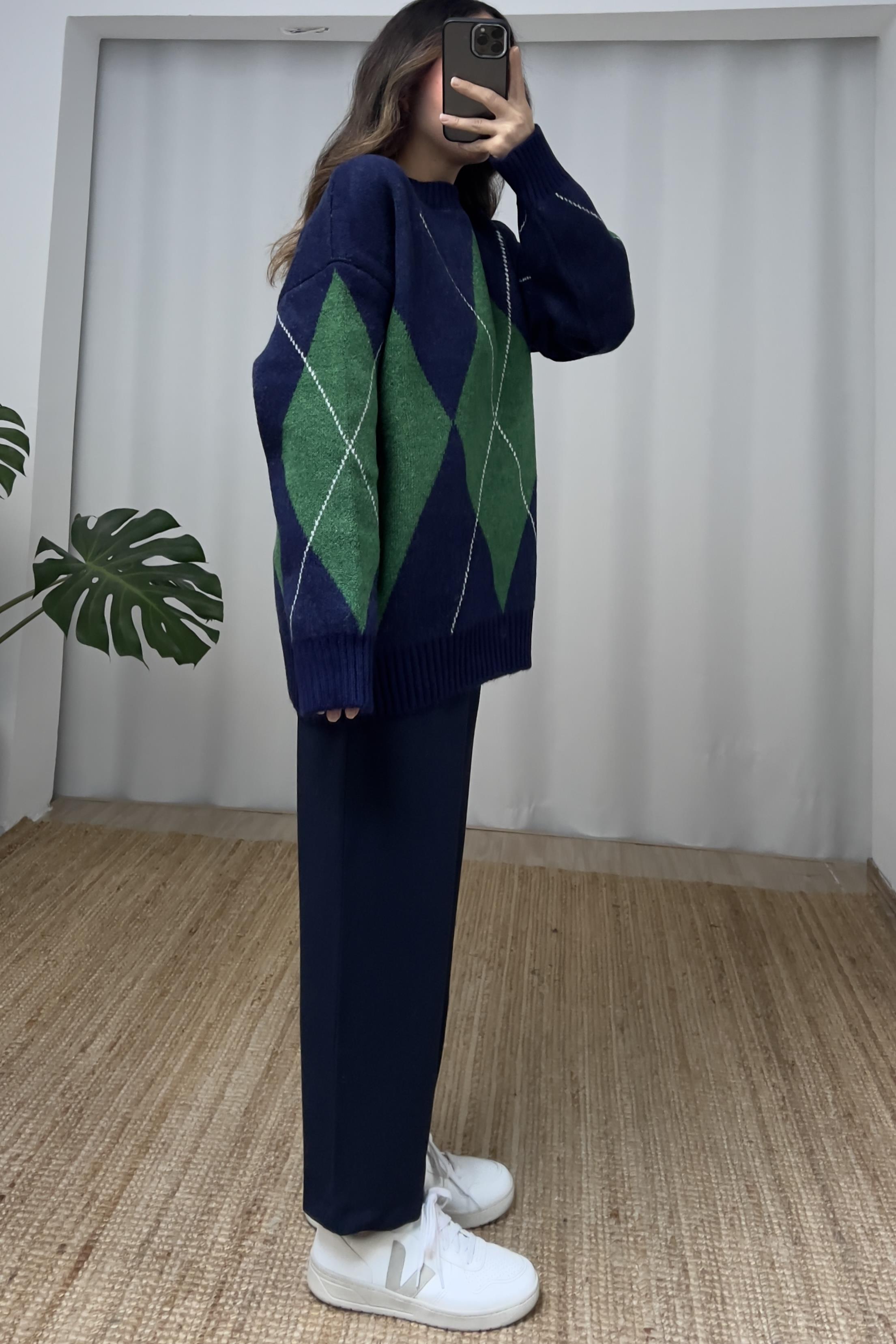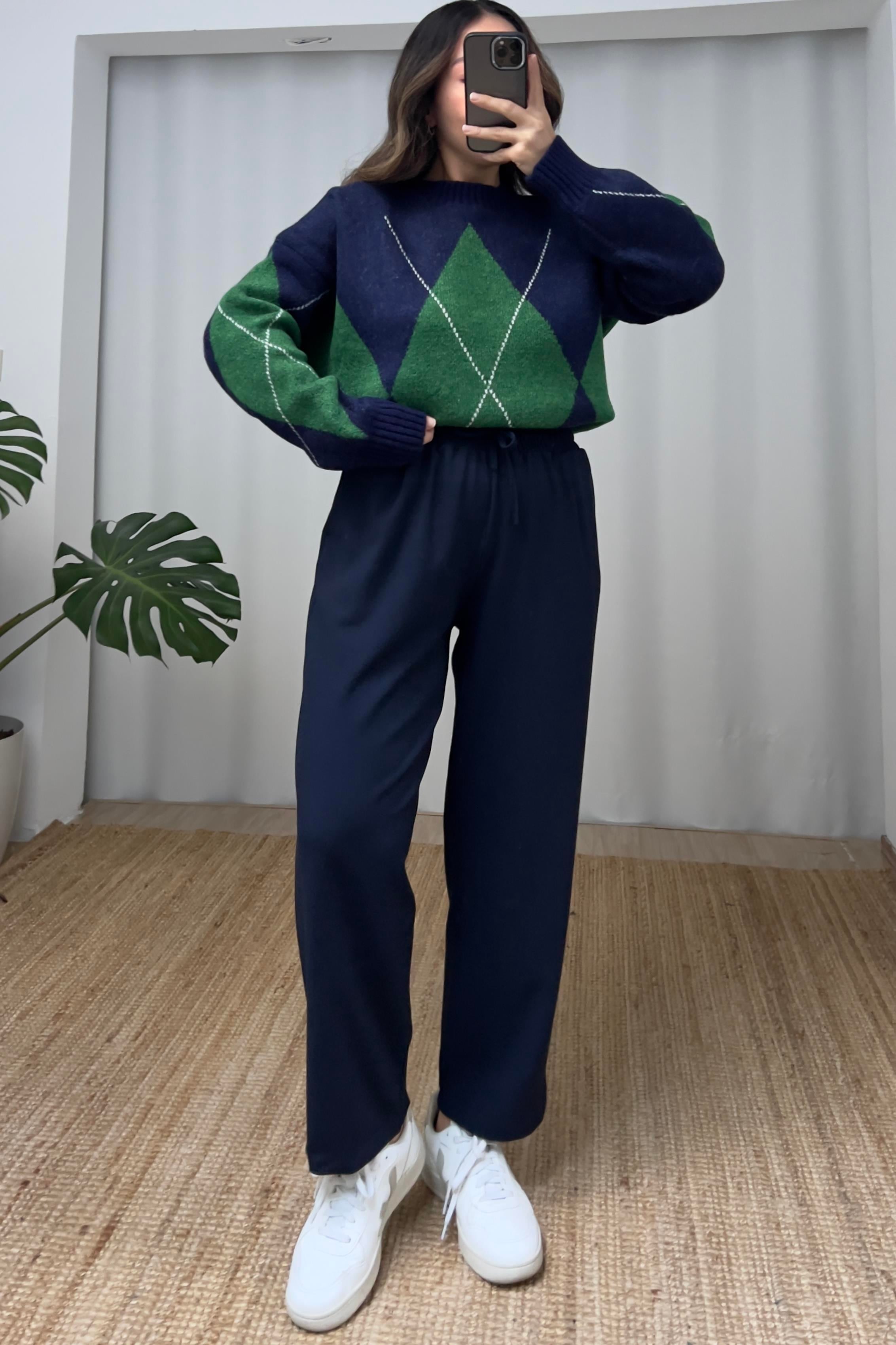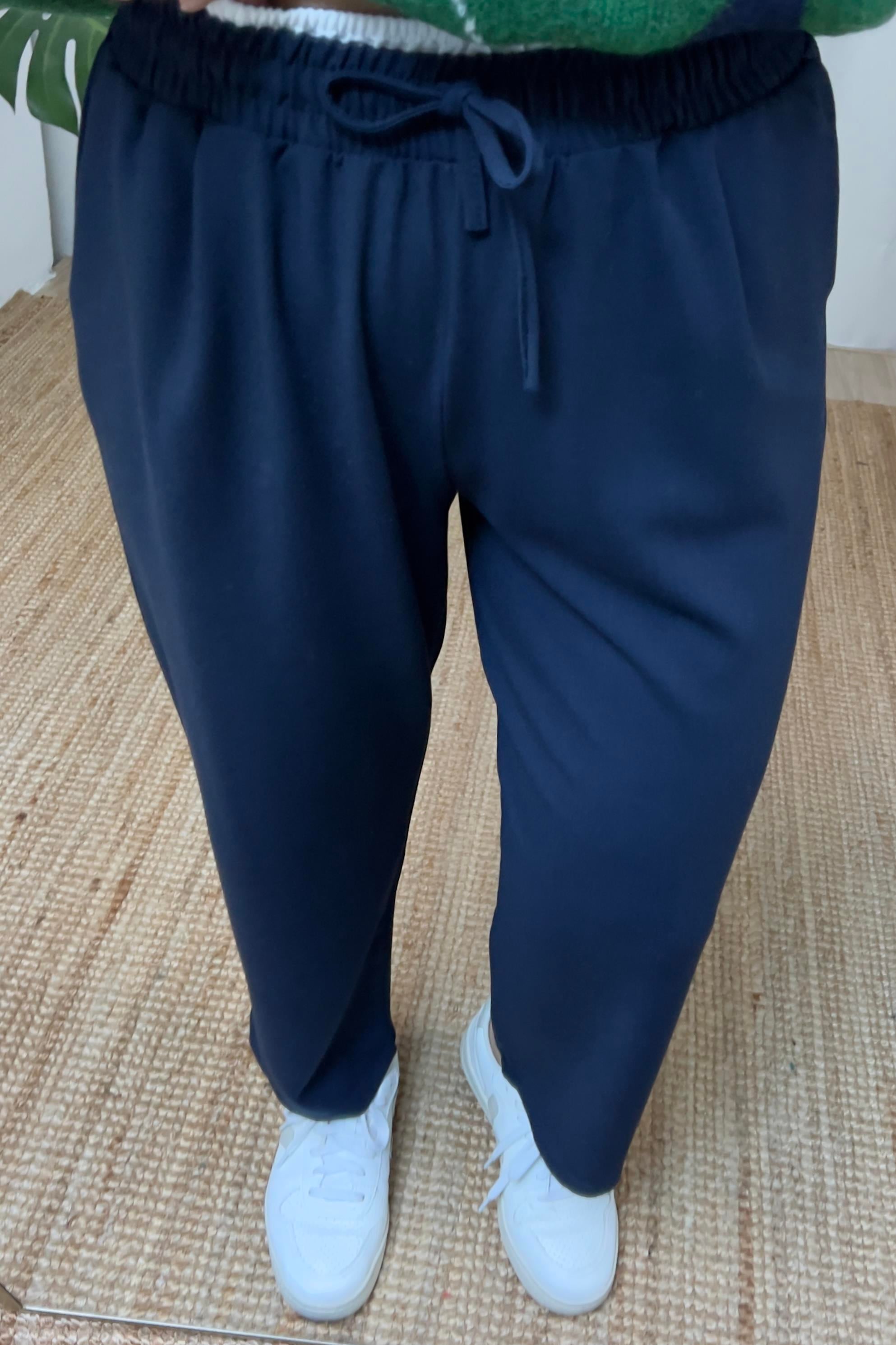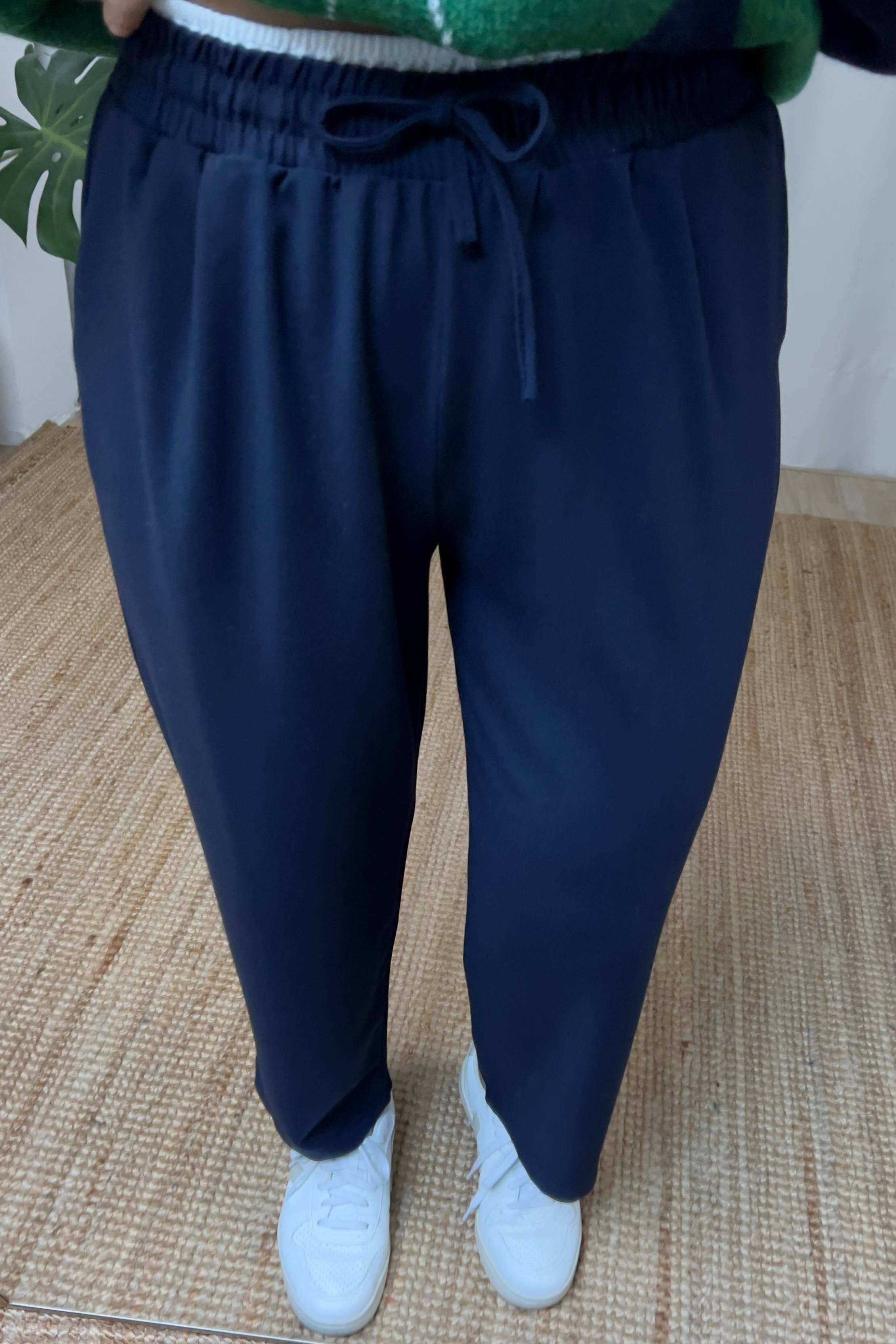Lacivert Çift Bel Detaylı Rahat Pantolon