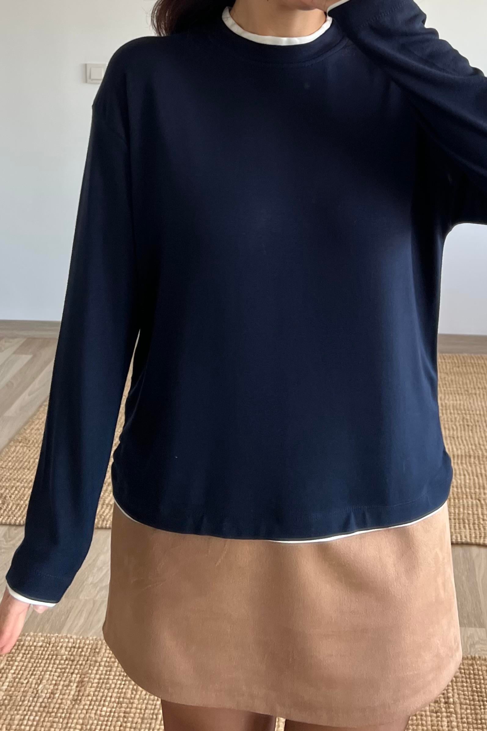 Lacivert Çift Yaka Yumuşak Dokulu Bluz