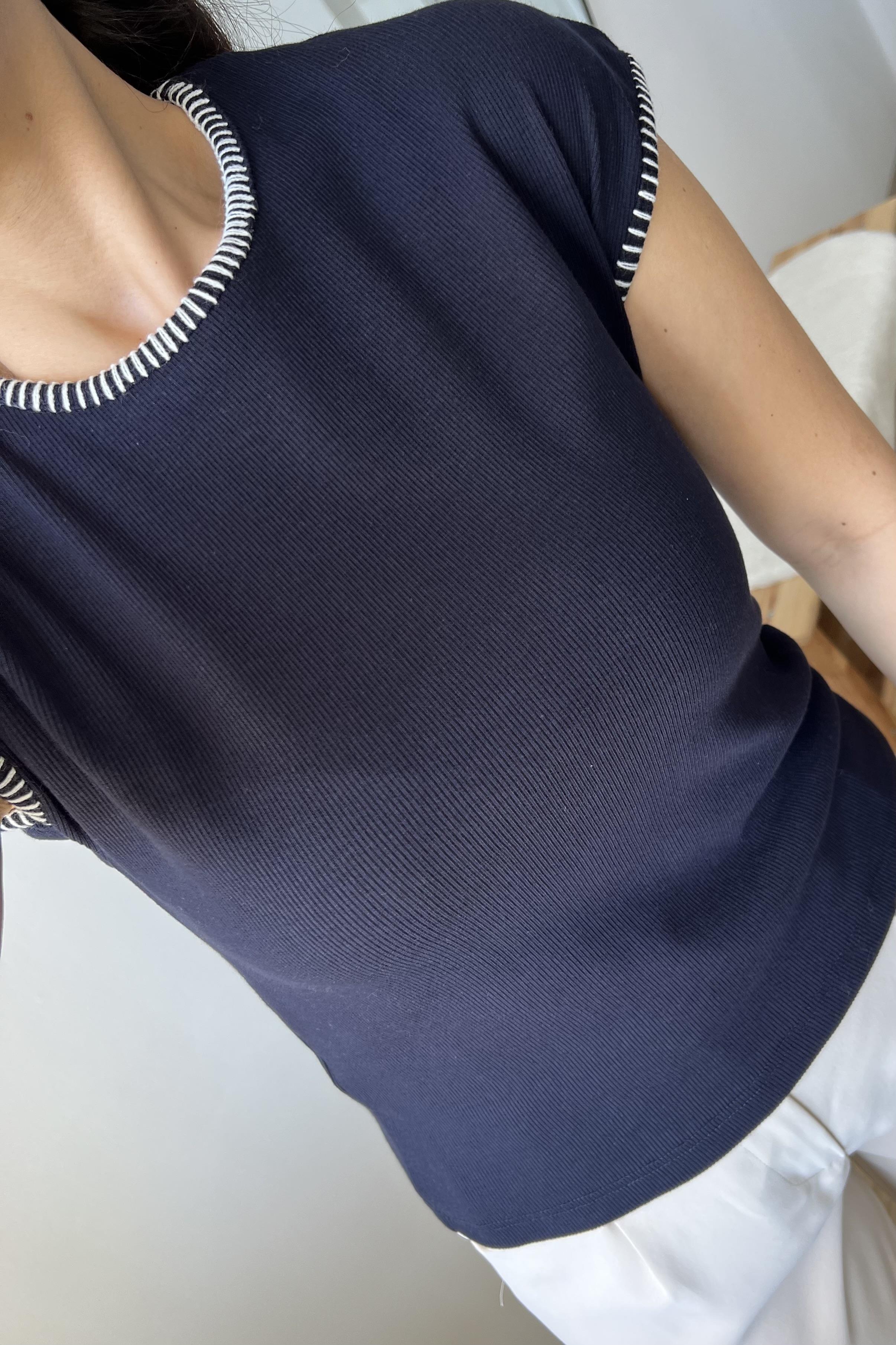 Lacivert Dikiş Detaylı Fitilli Tshirt