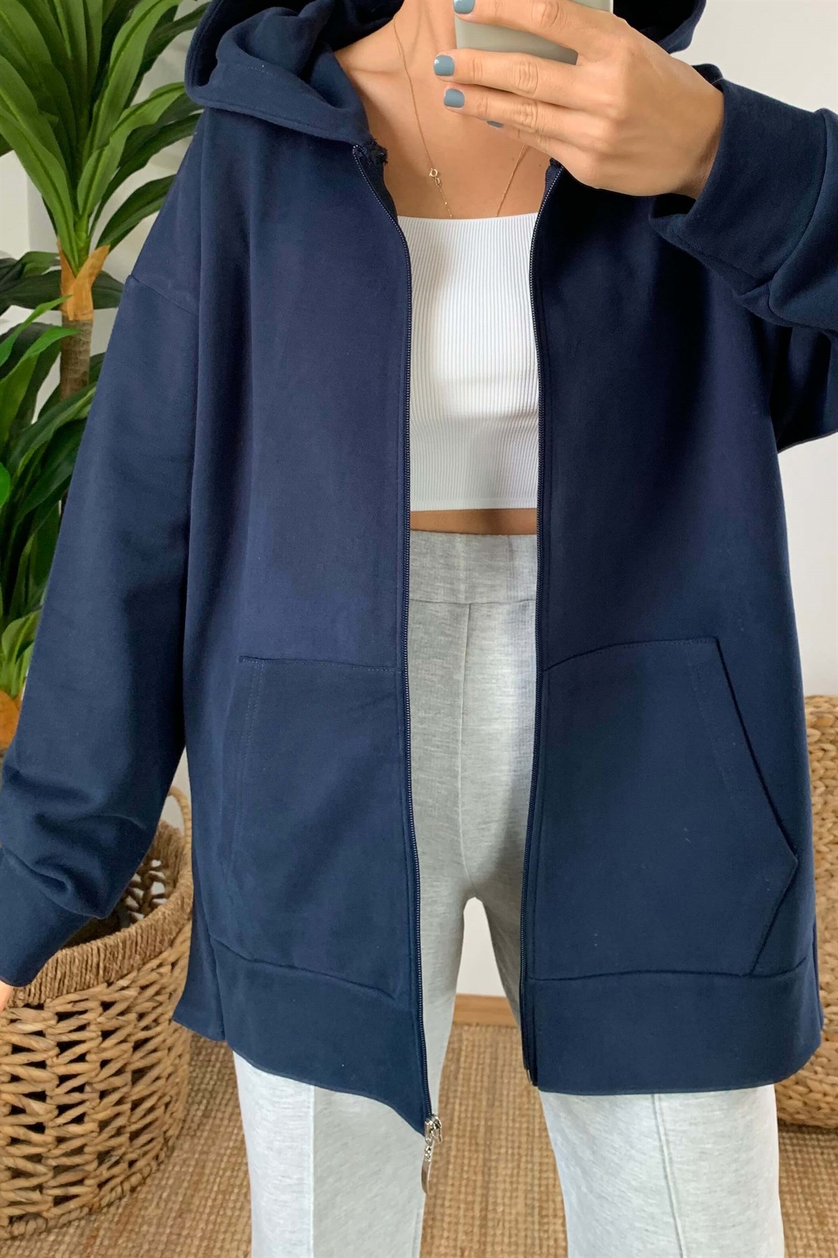 Lacivert Fermuarlı Sweat Hırka