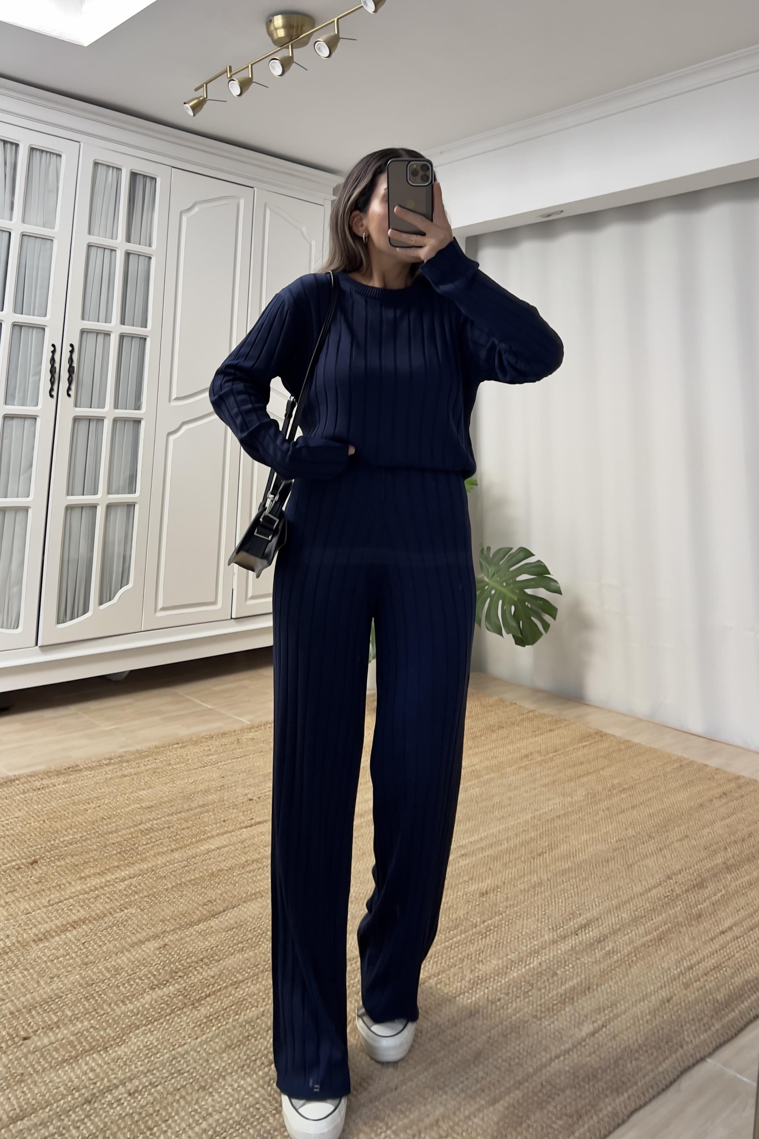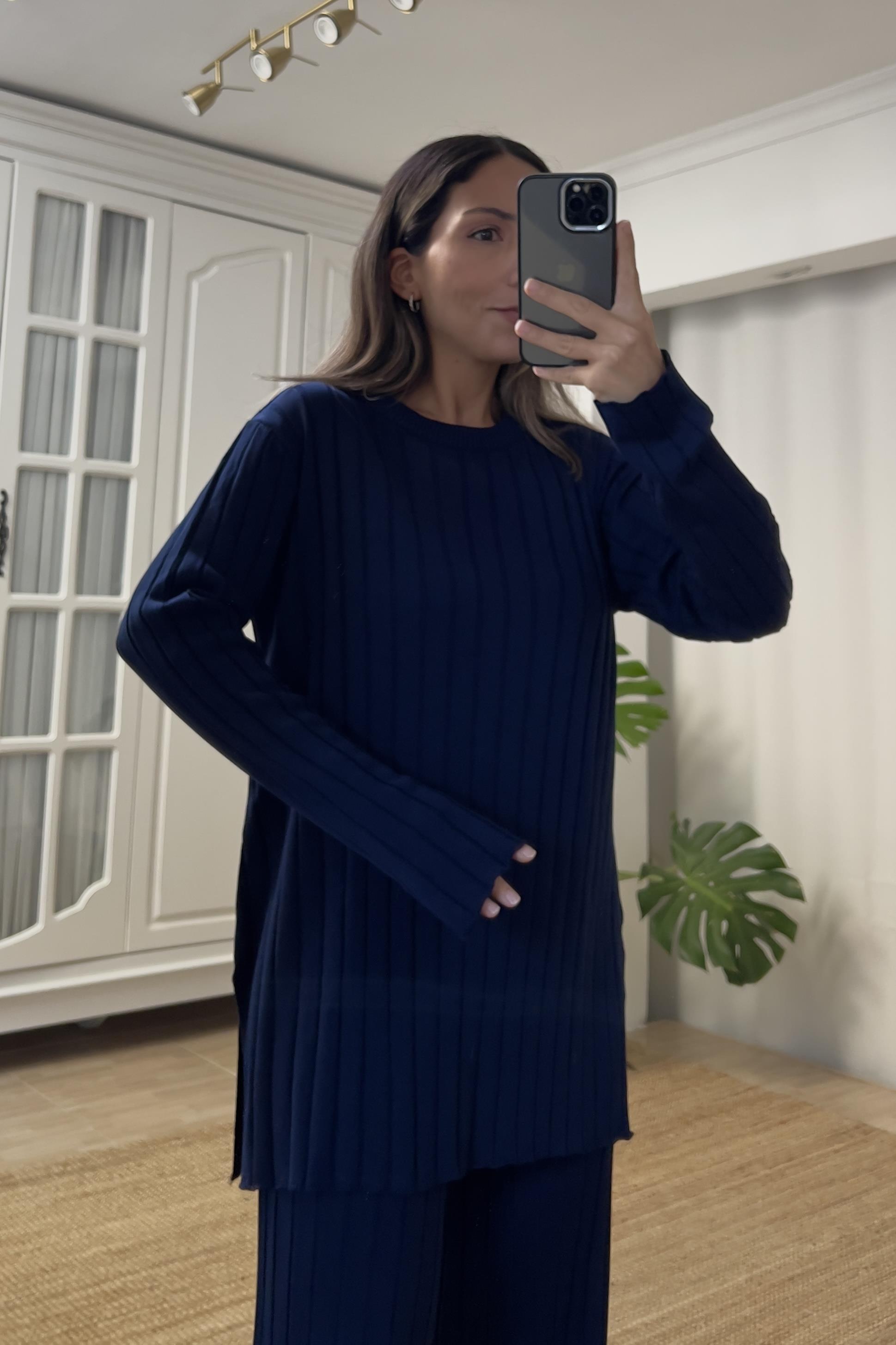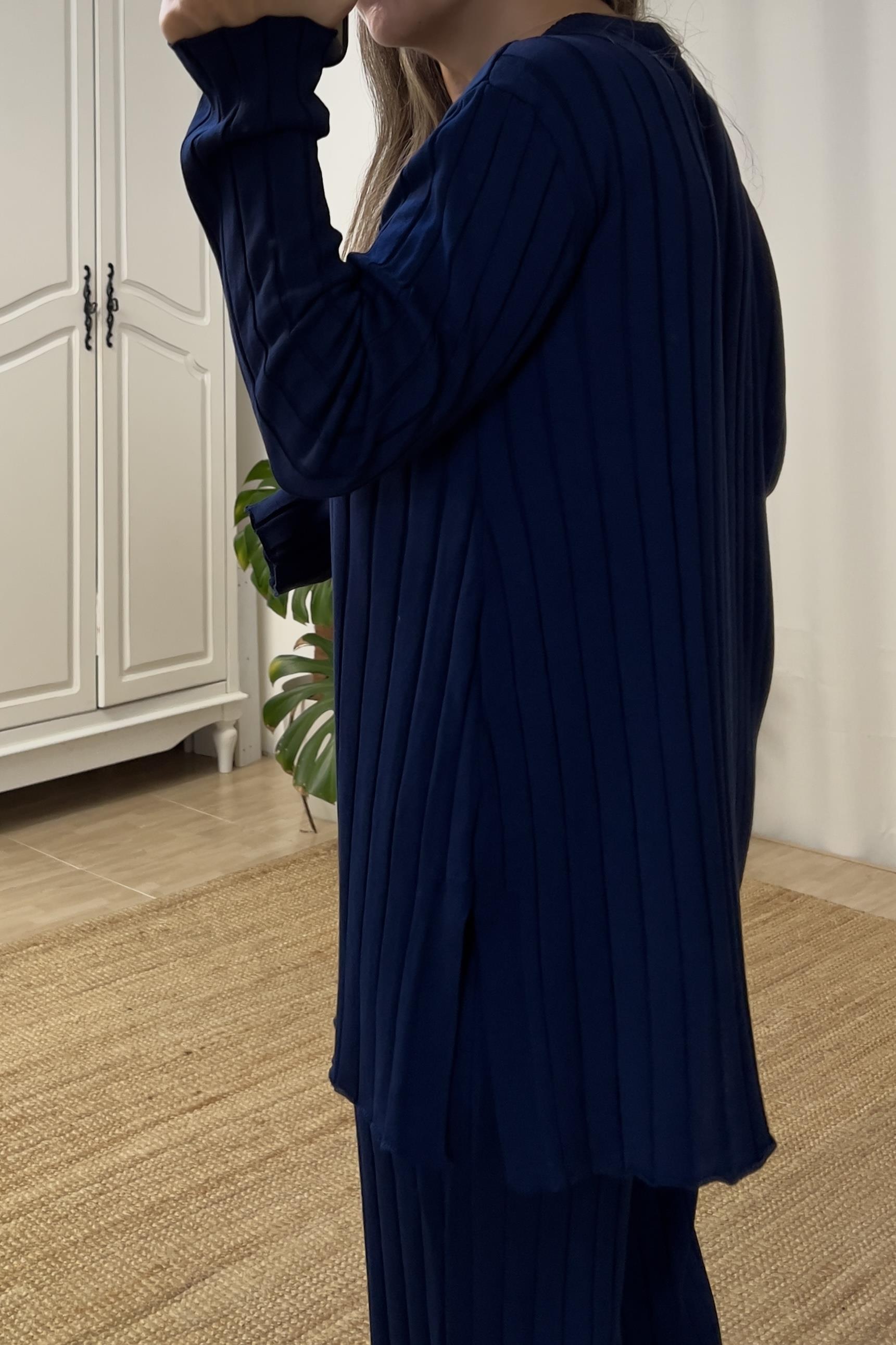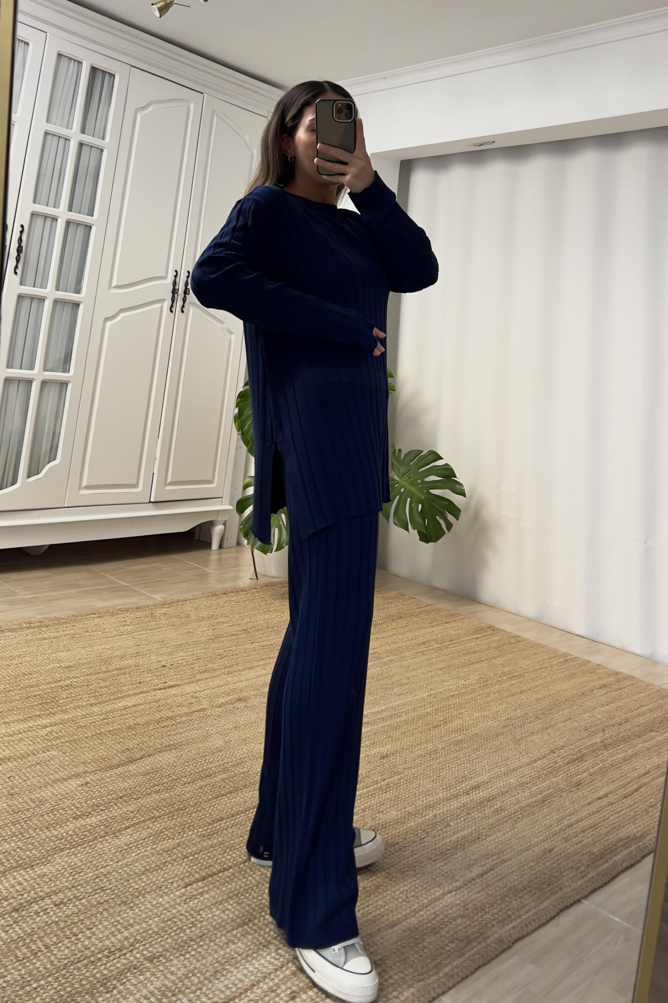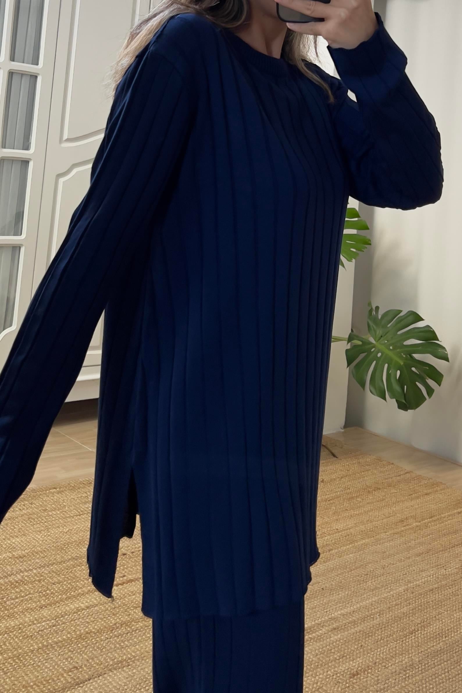 Lacivert Kendinden Fitilli Mevsimlik Triko Takım