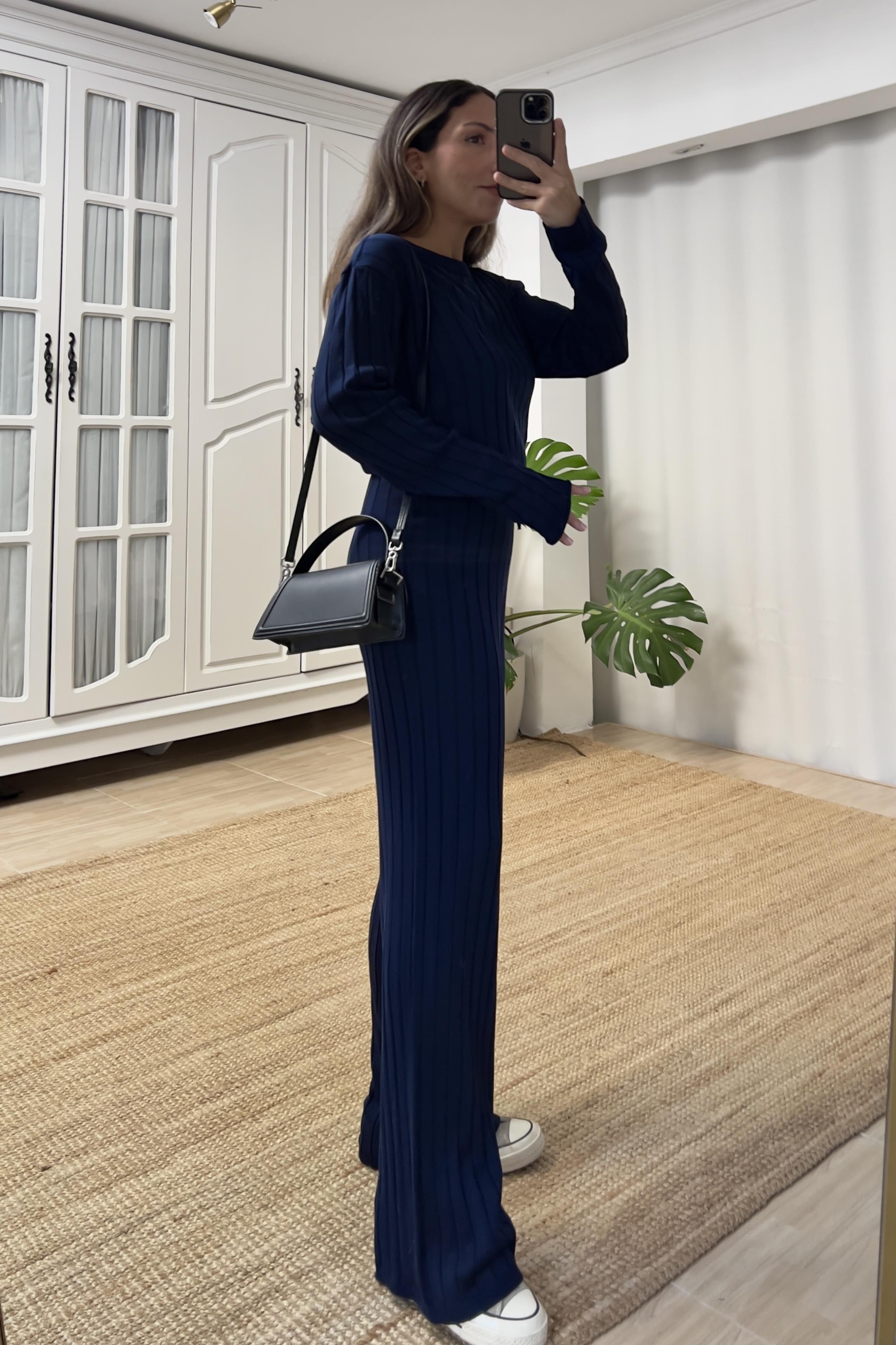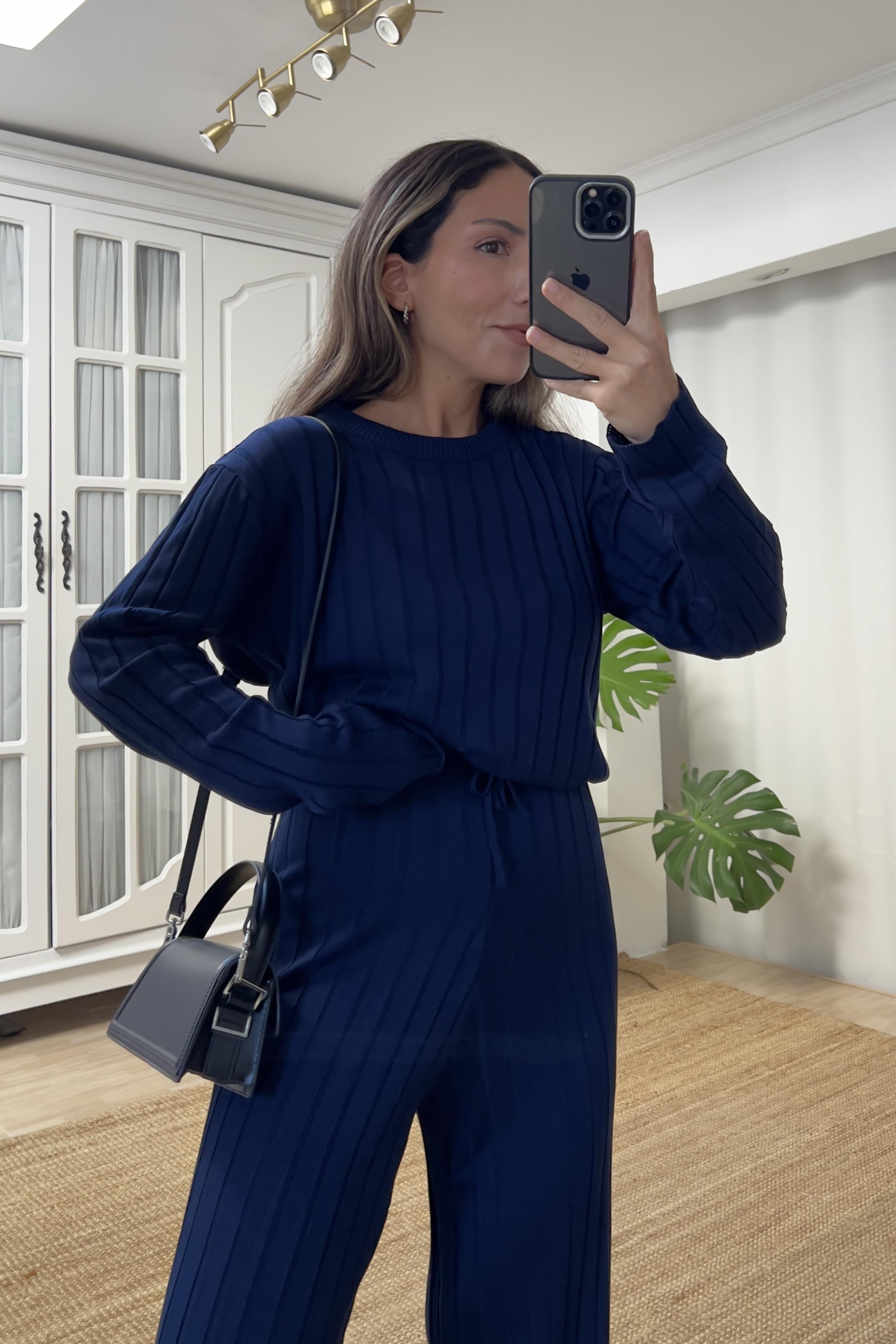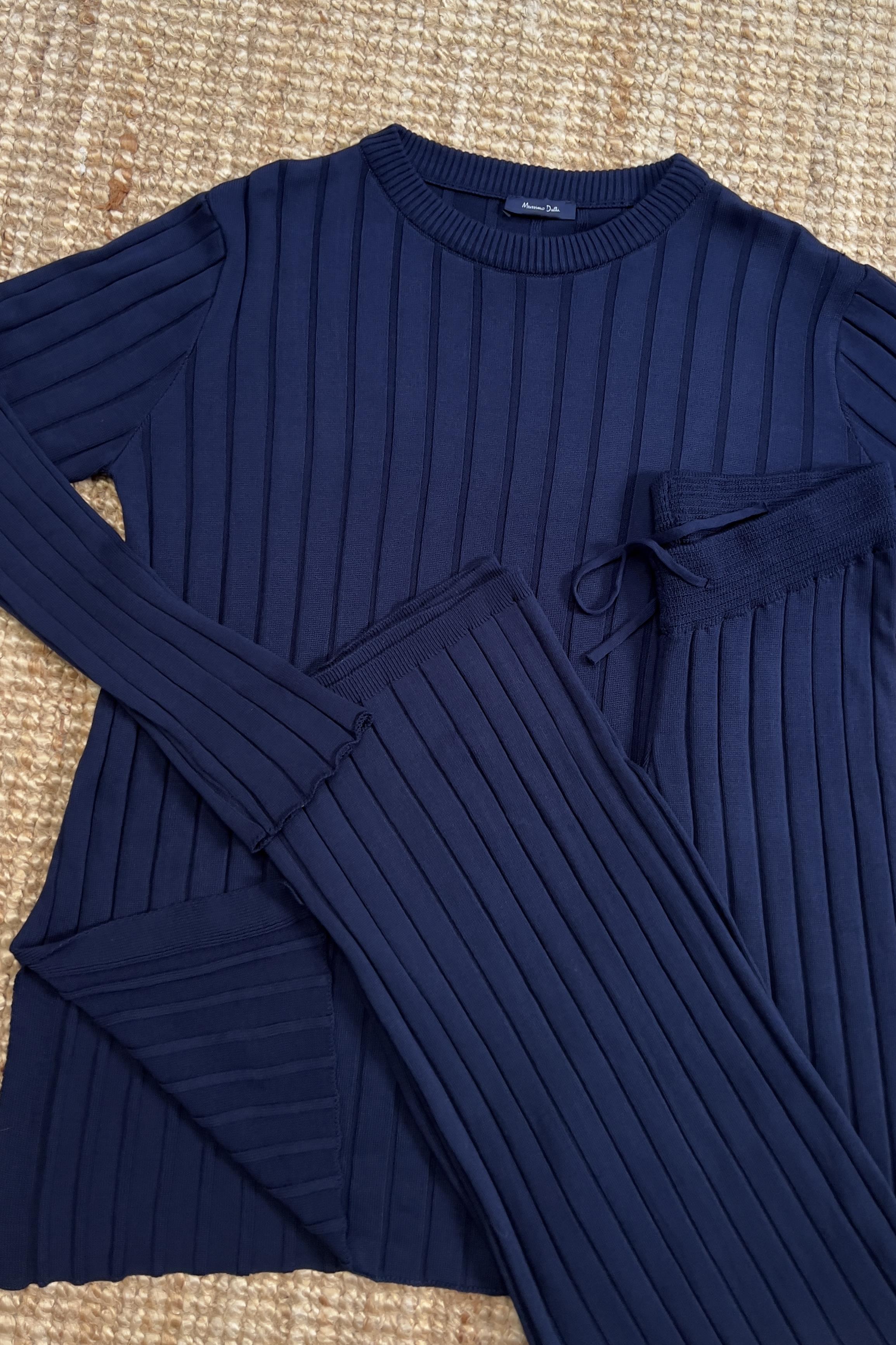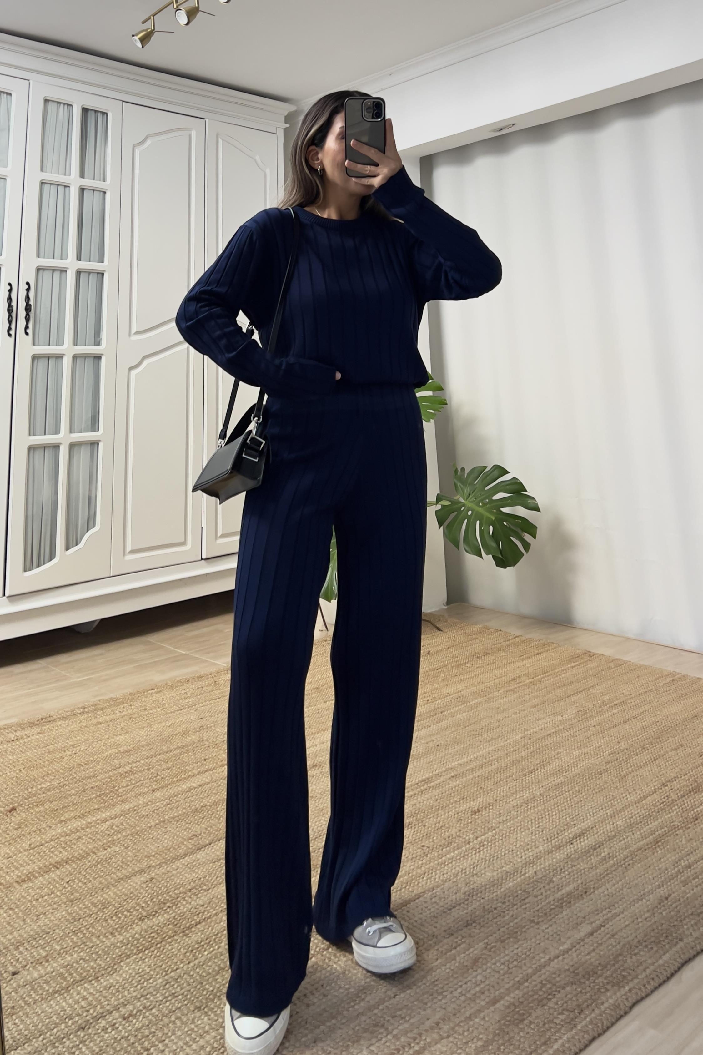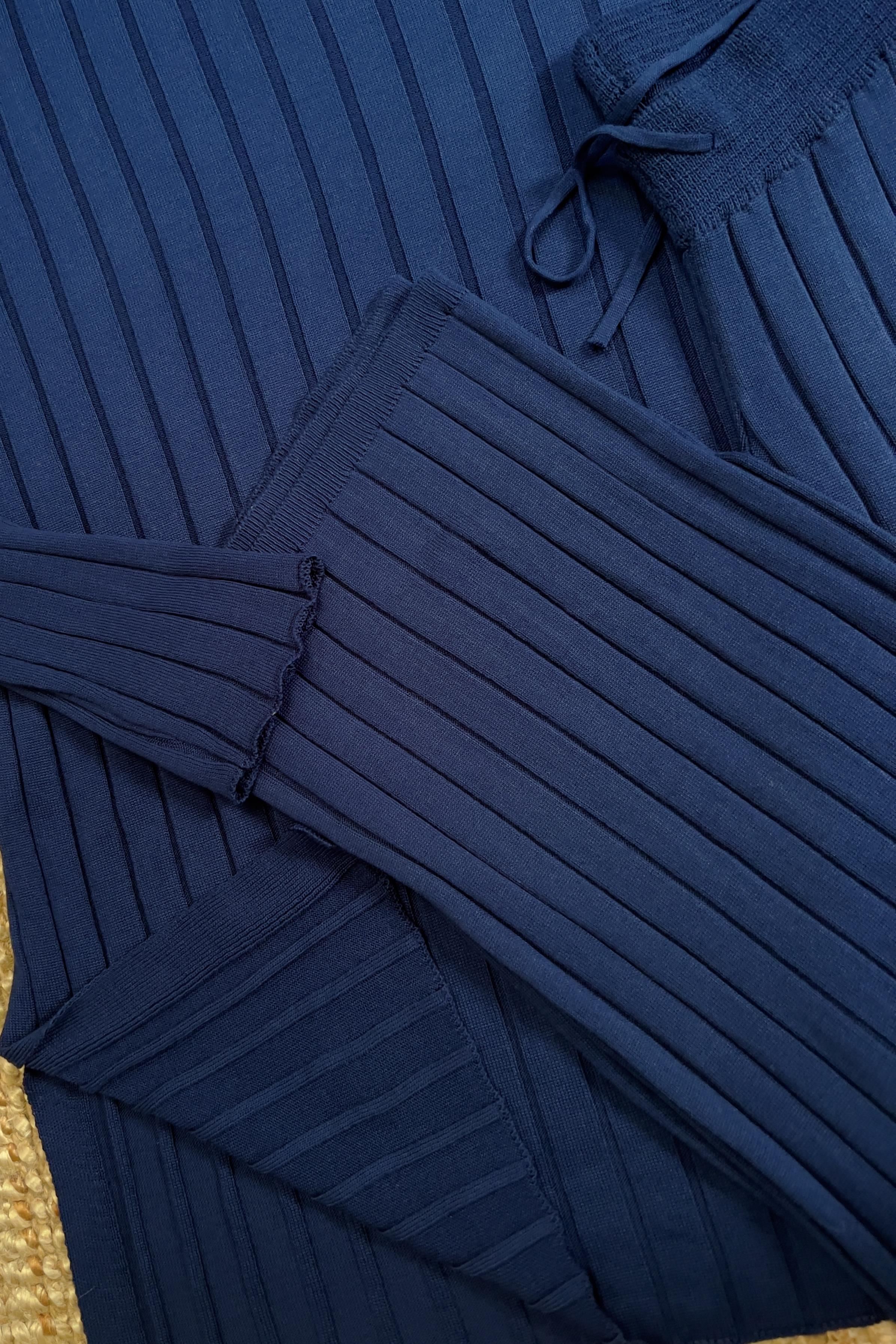 Lacivert Kendinden Fitilli Mevsimlik Triko Takım