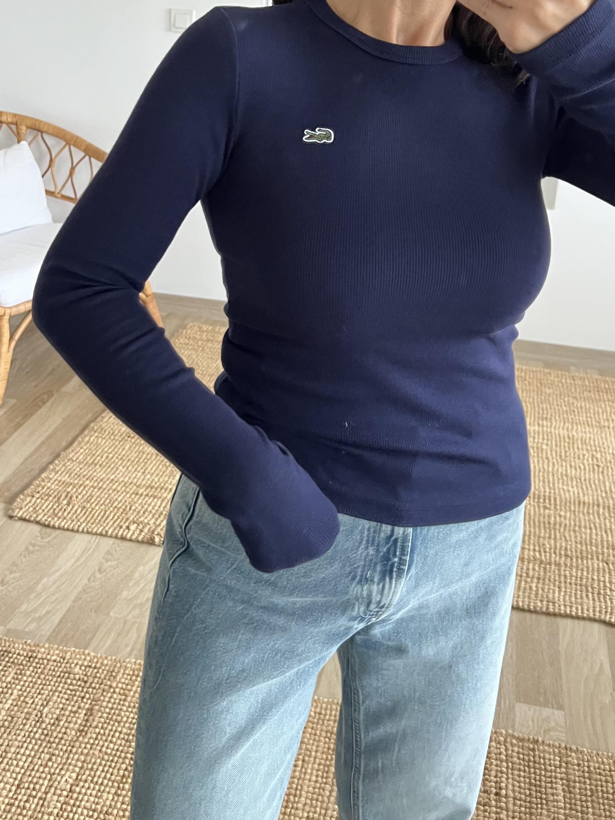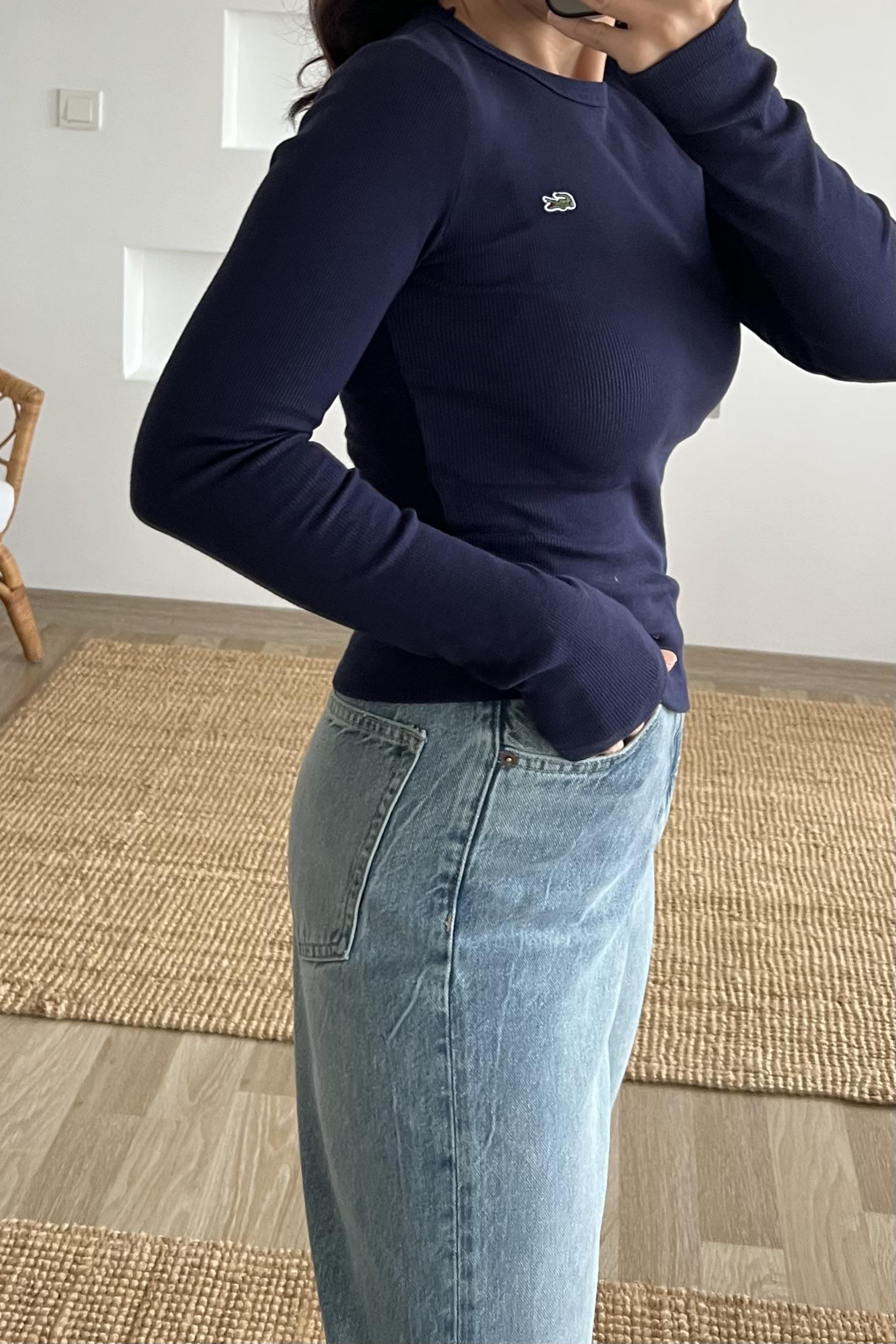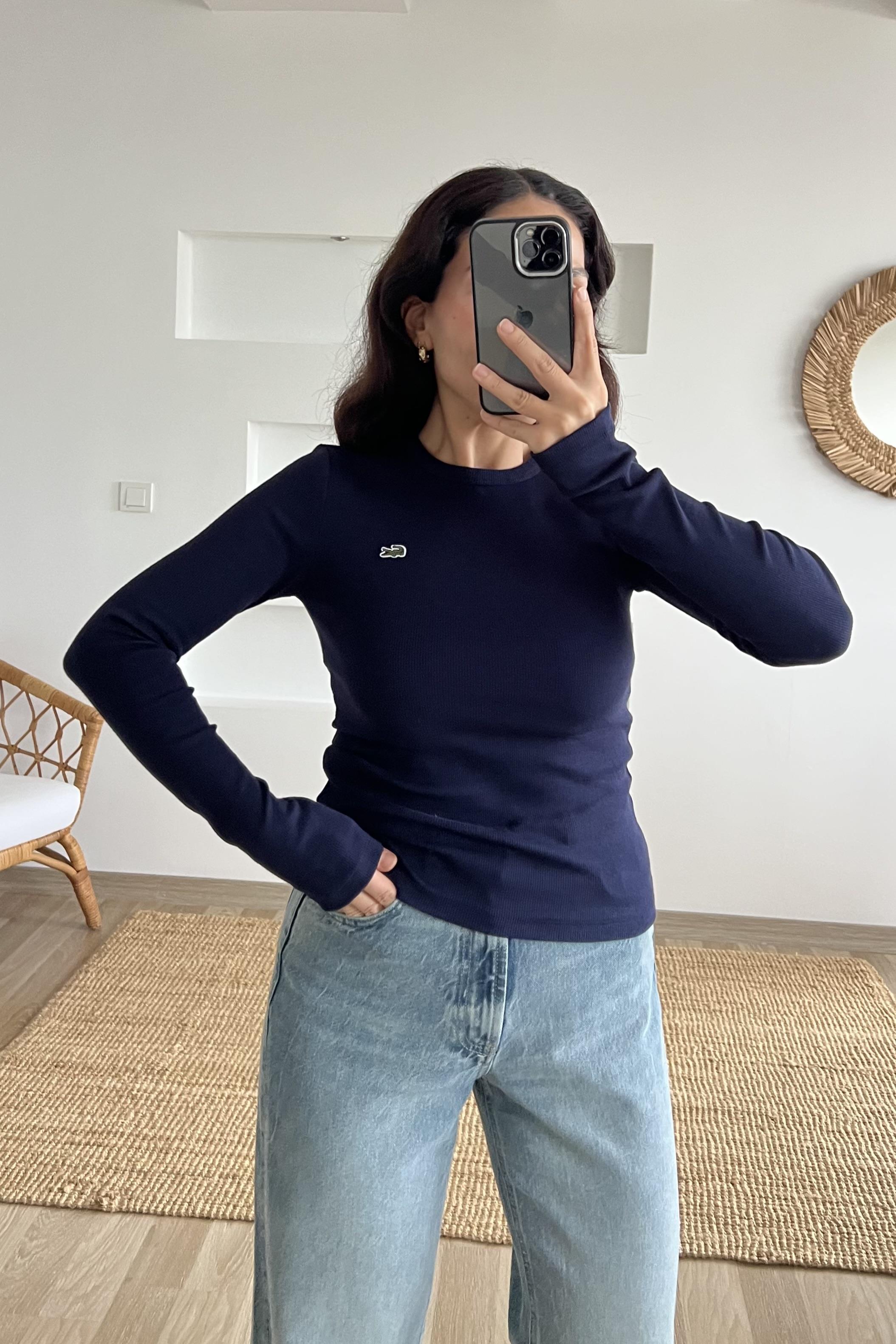 Lacivert Logo Nakışlı Uzun Kollu Bluz