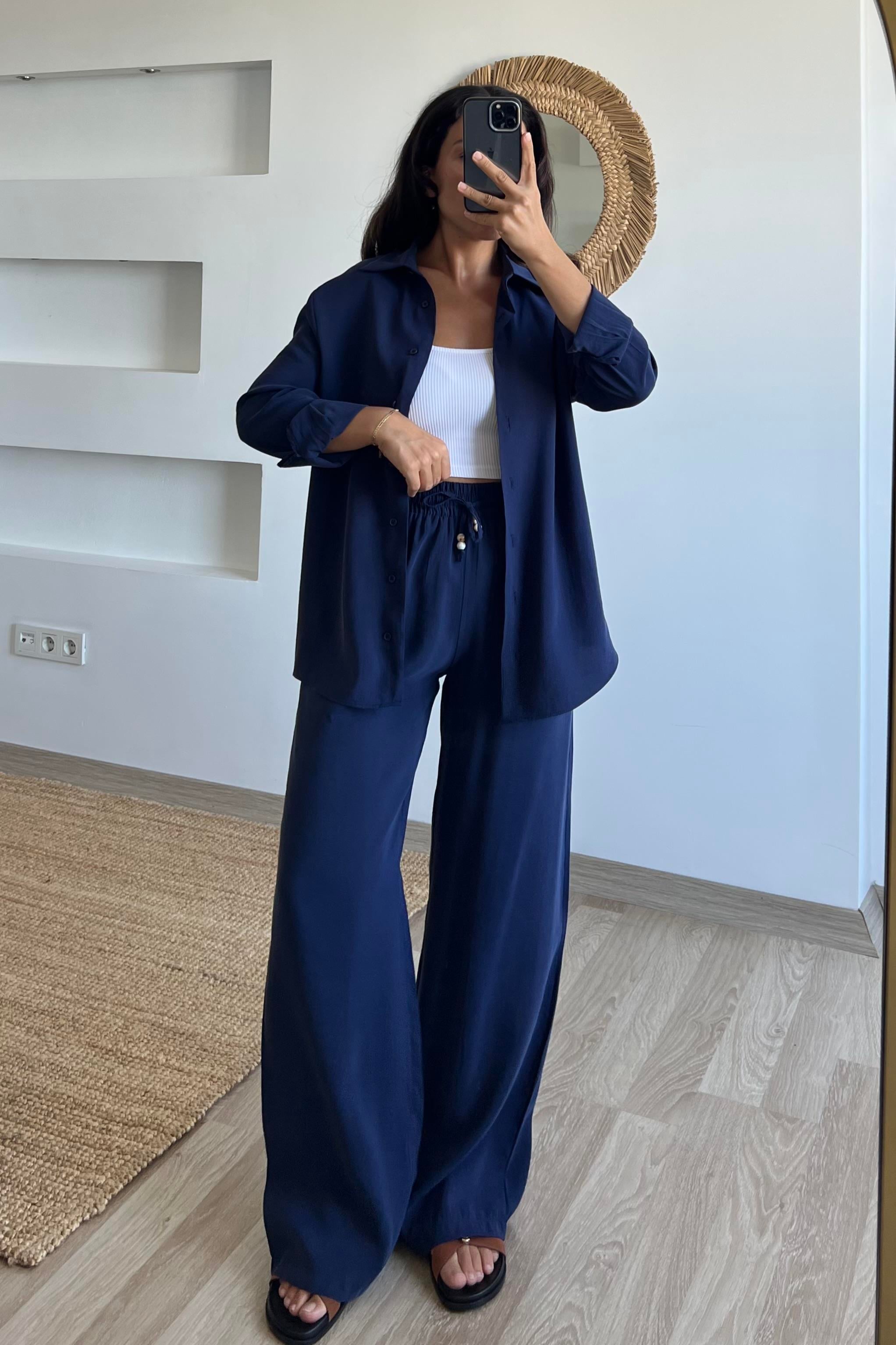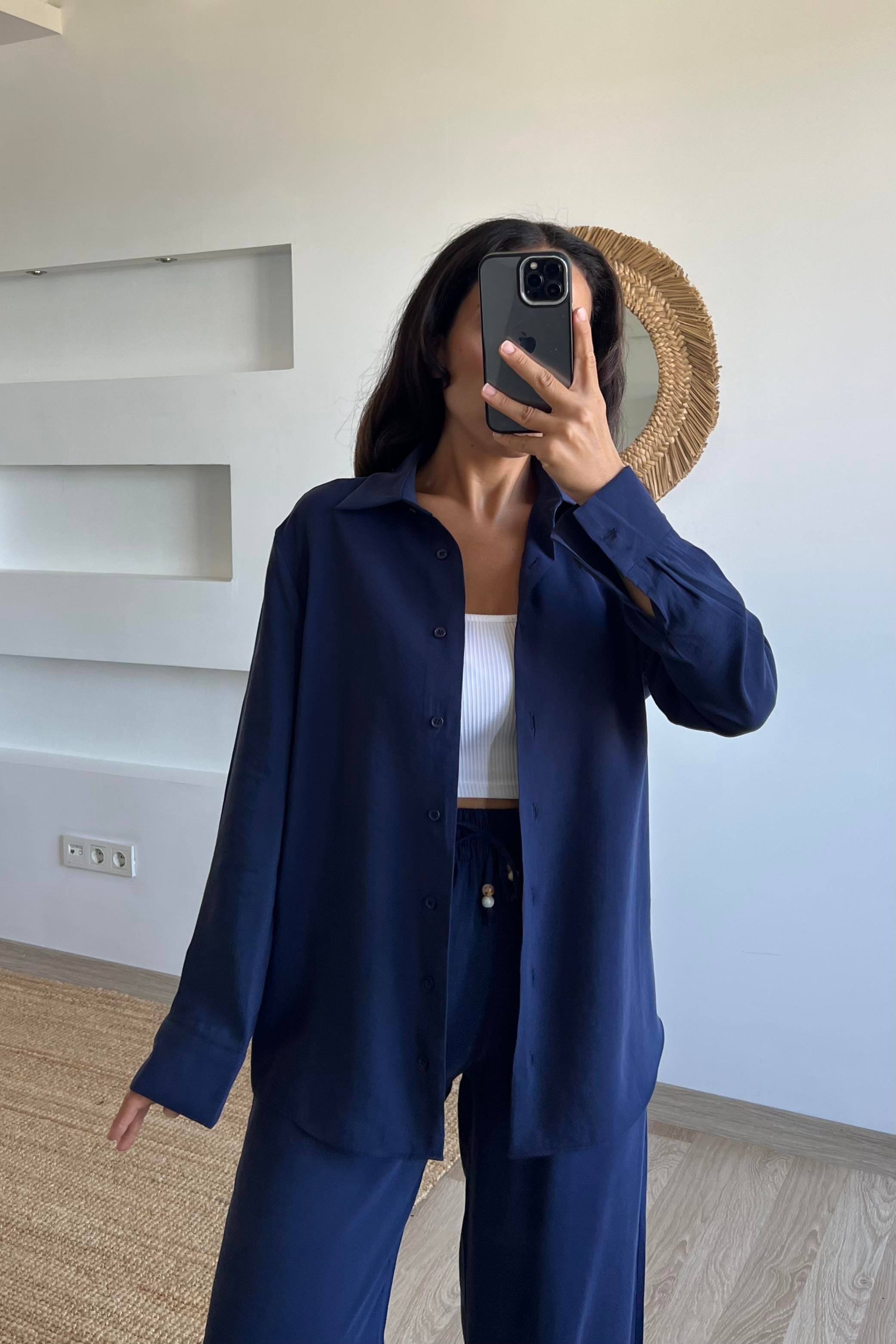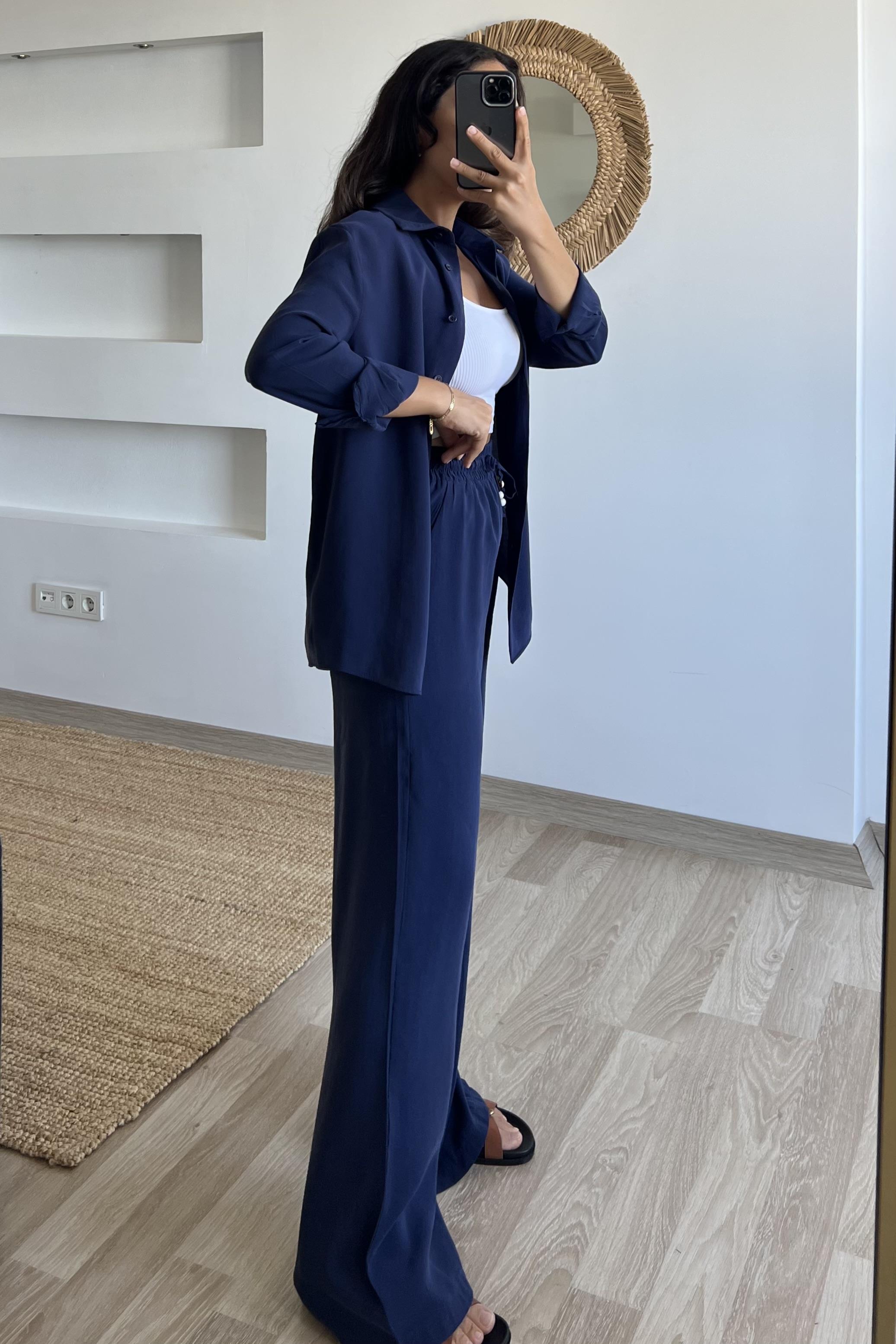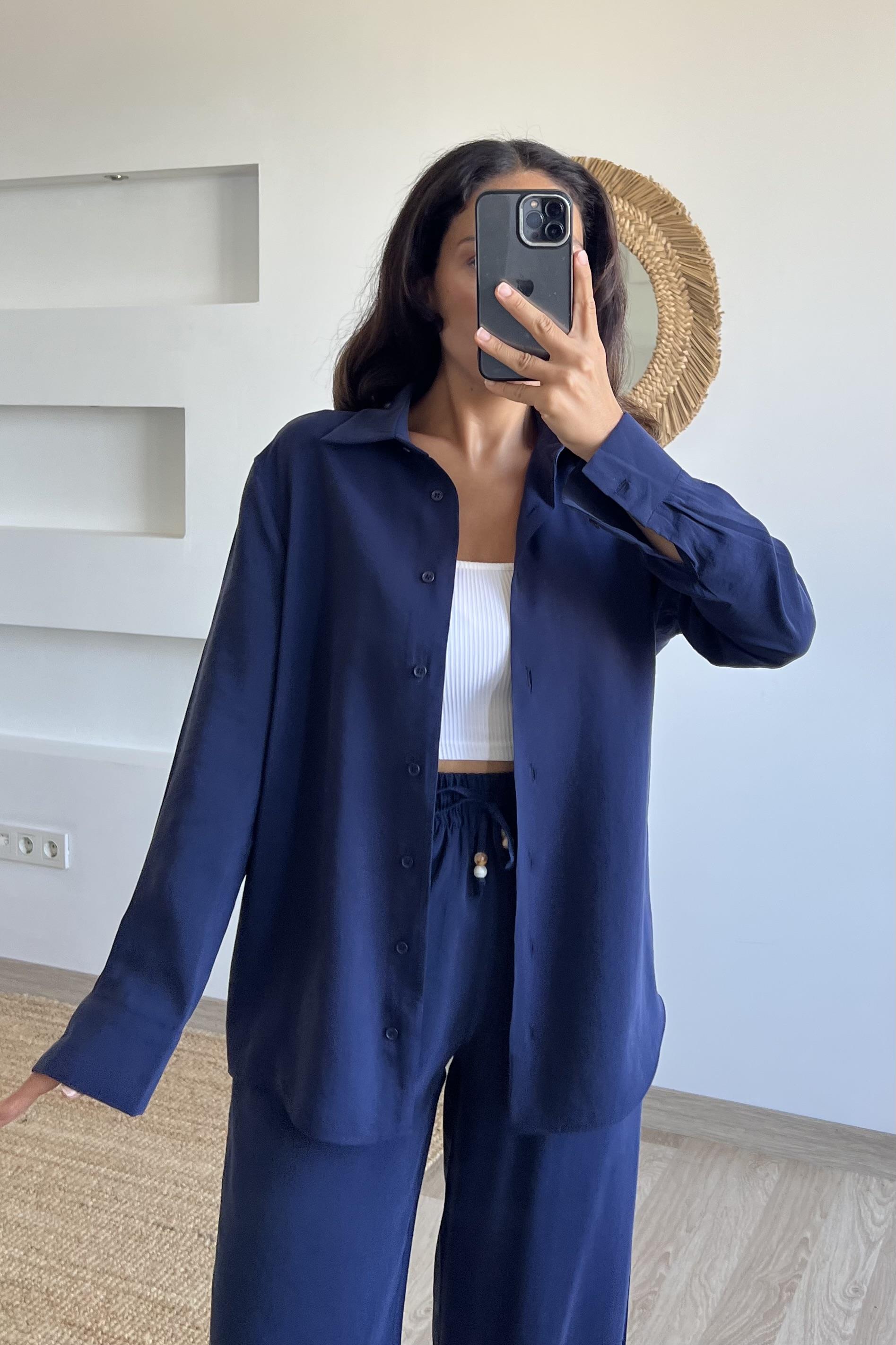 Lacivert Modal Premium Gömlek Pantolon Takım