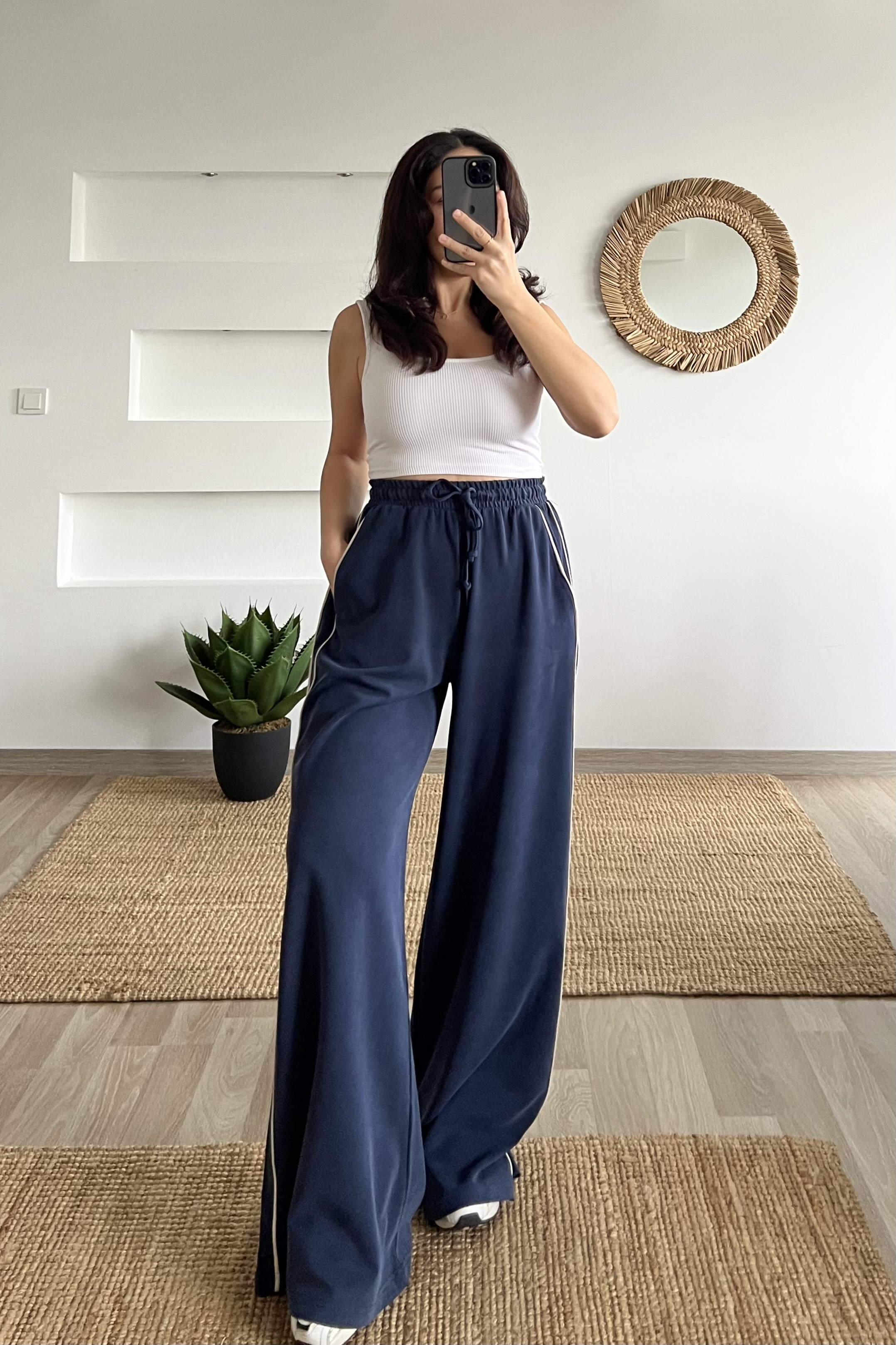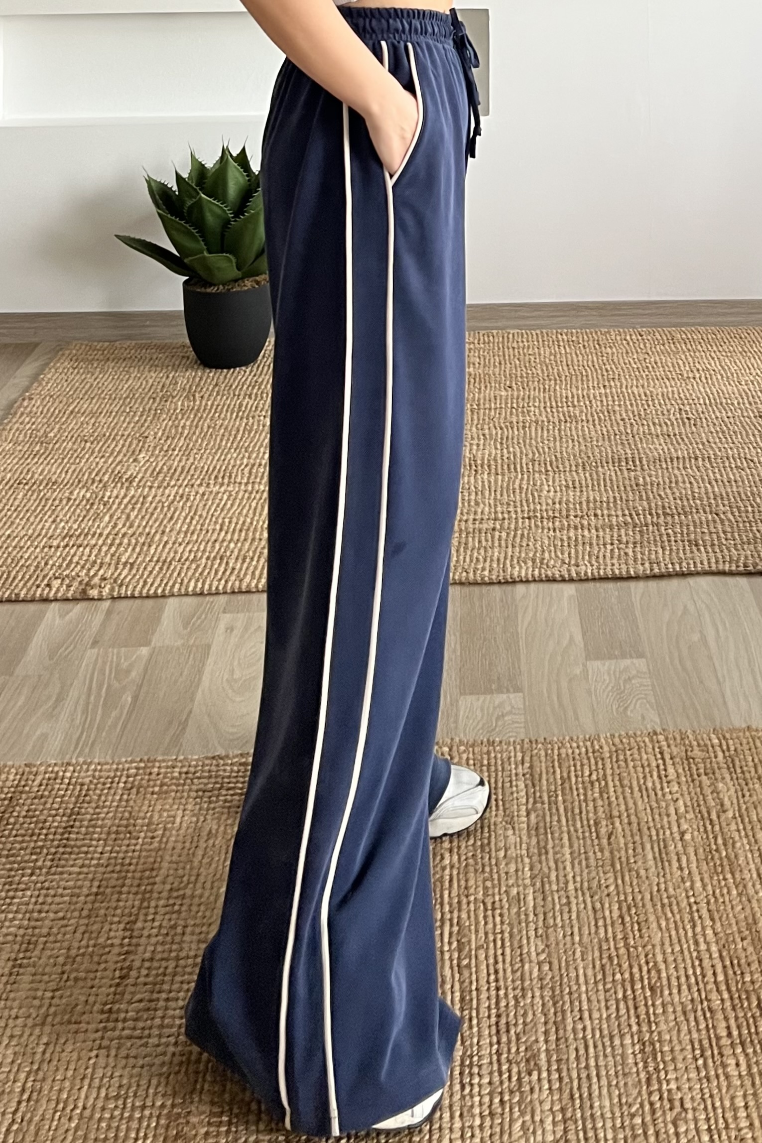 Lacivert Oys Şerit Detaylı Rahat Modal Pantolon
