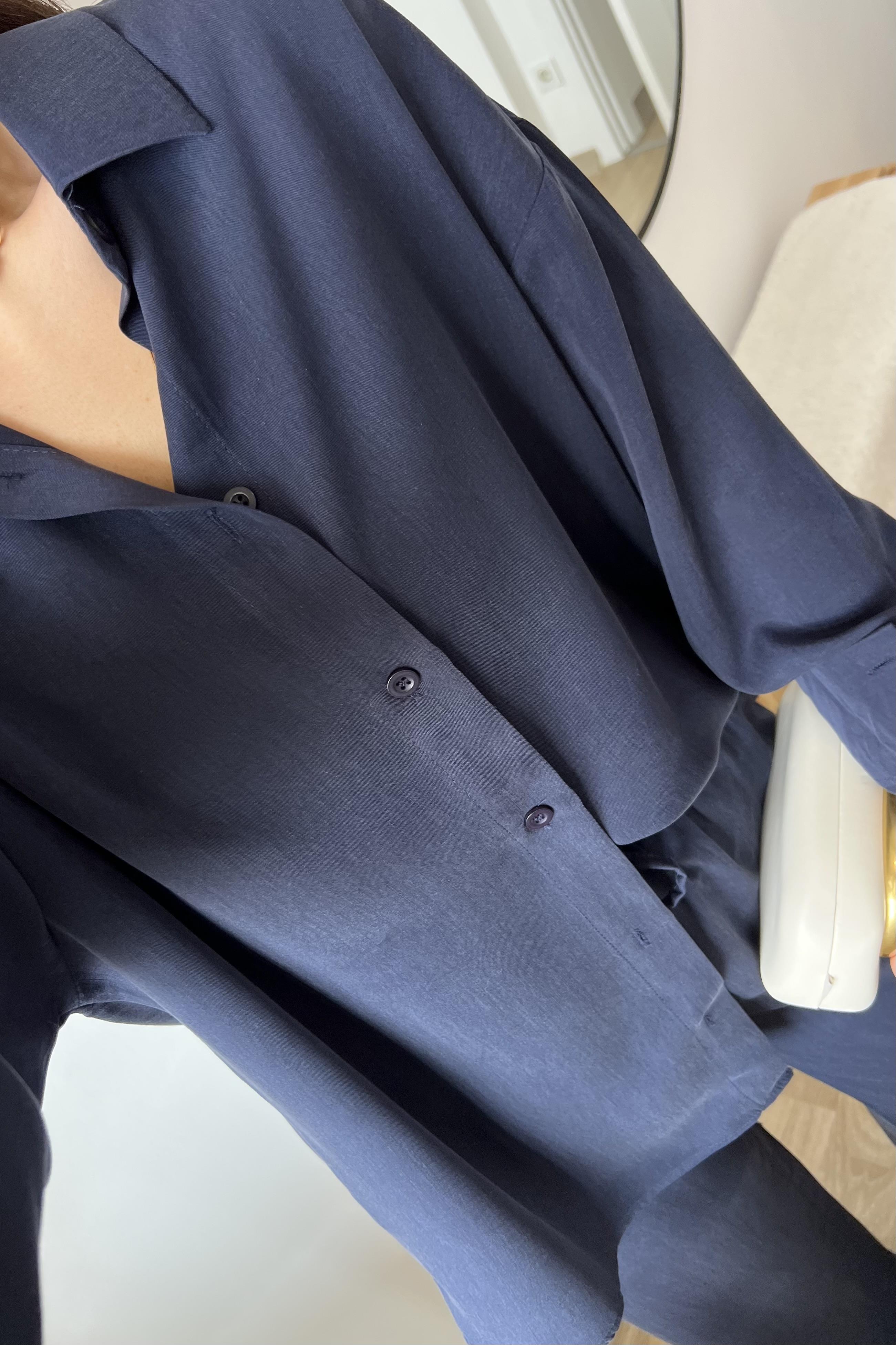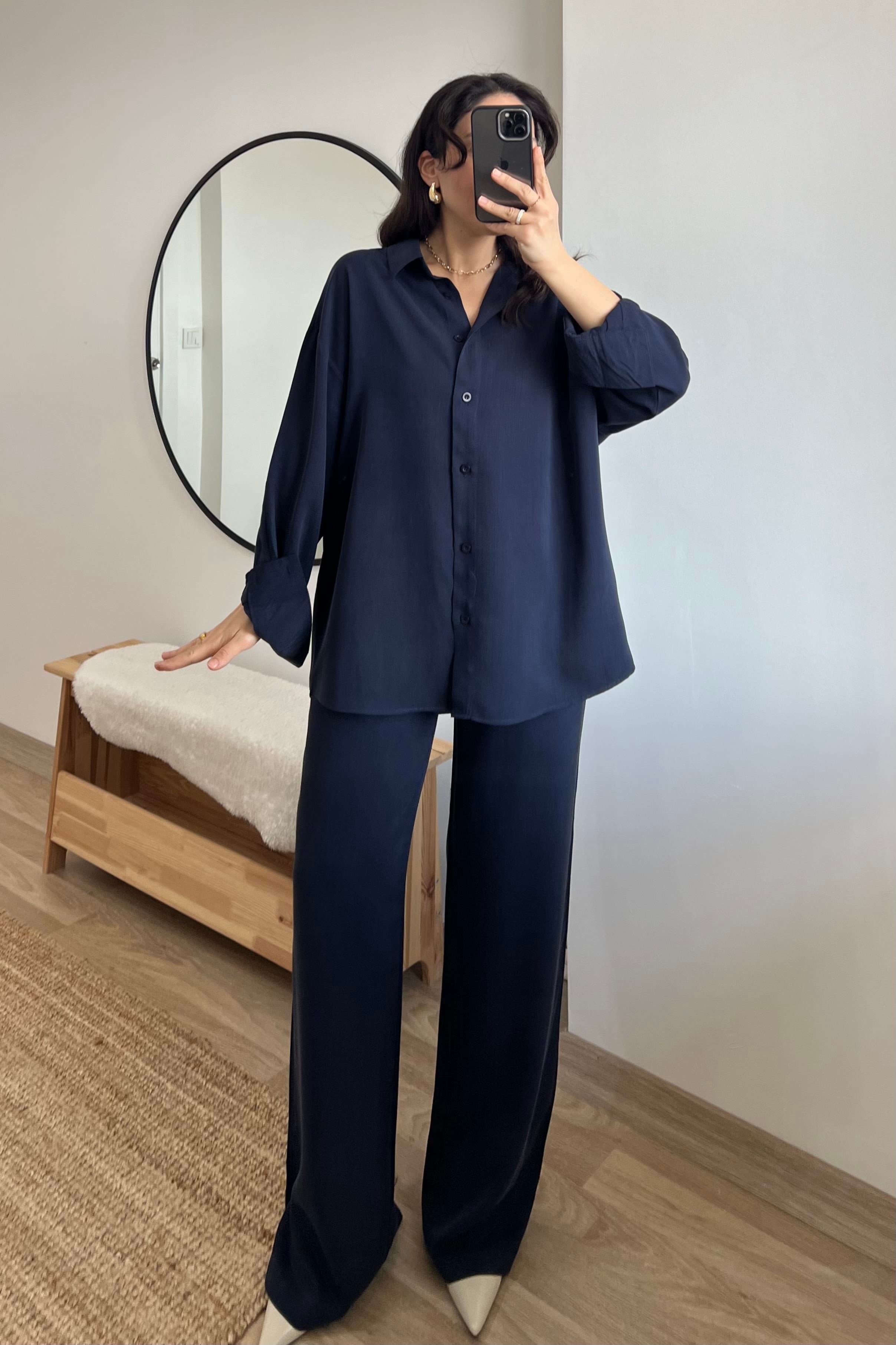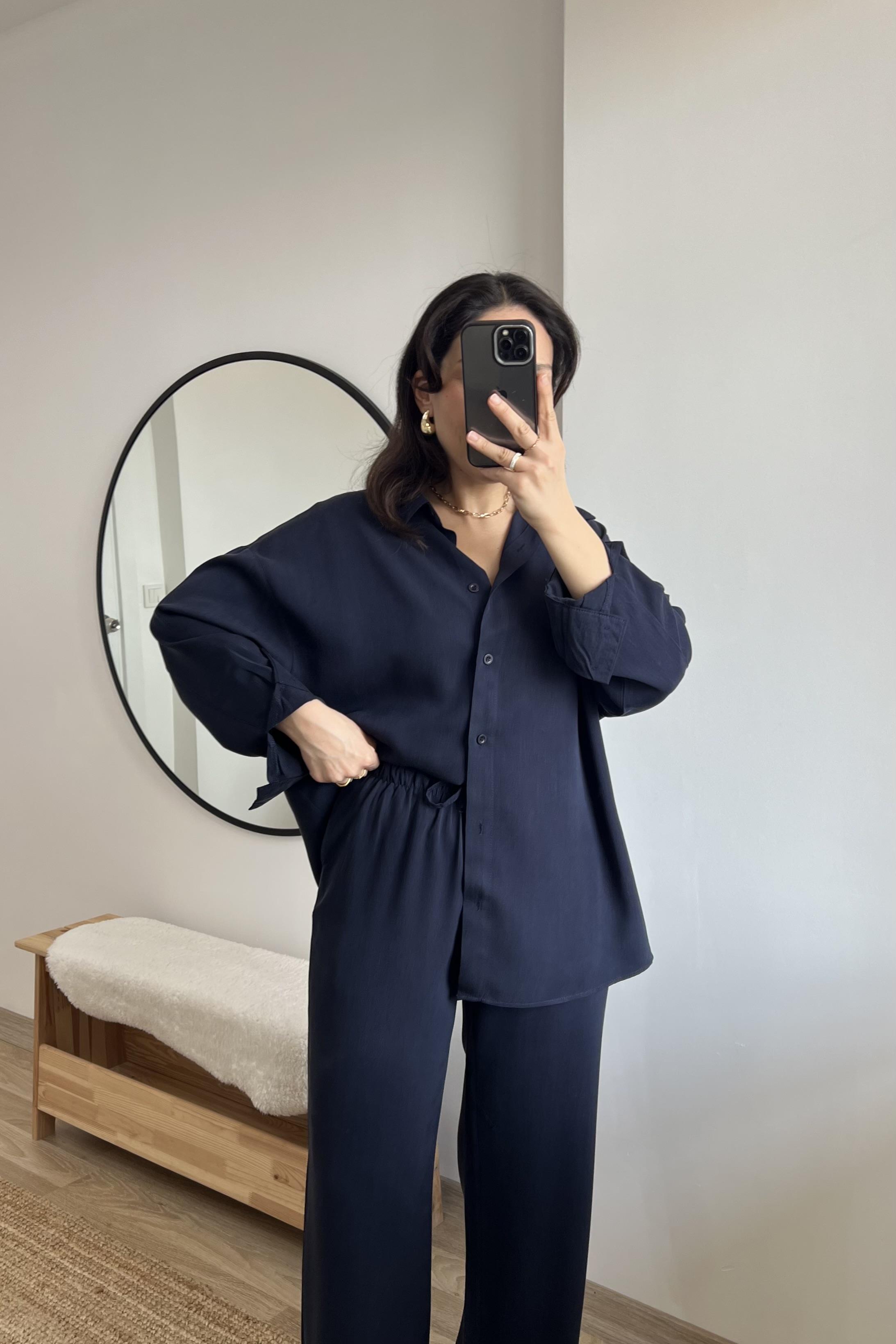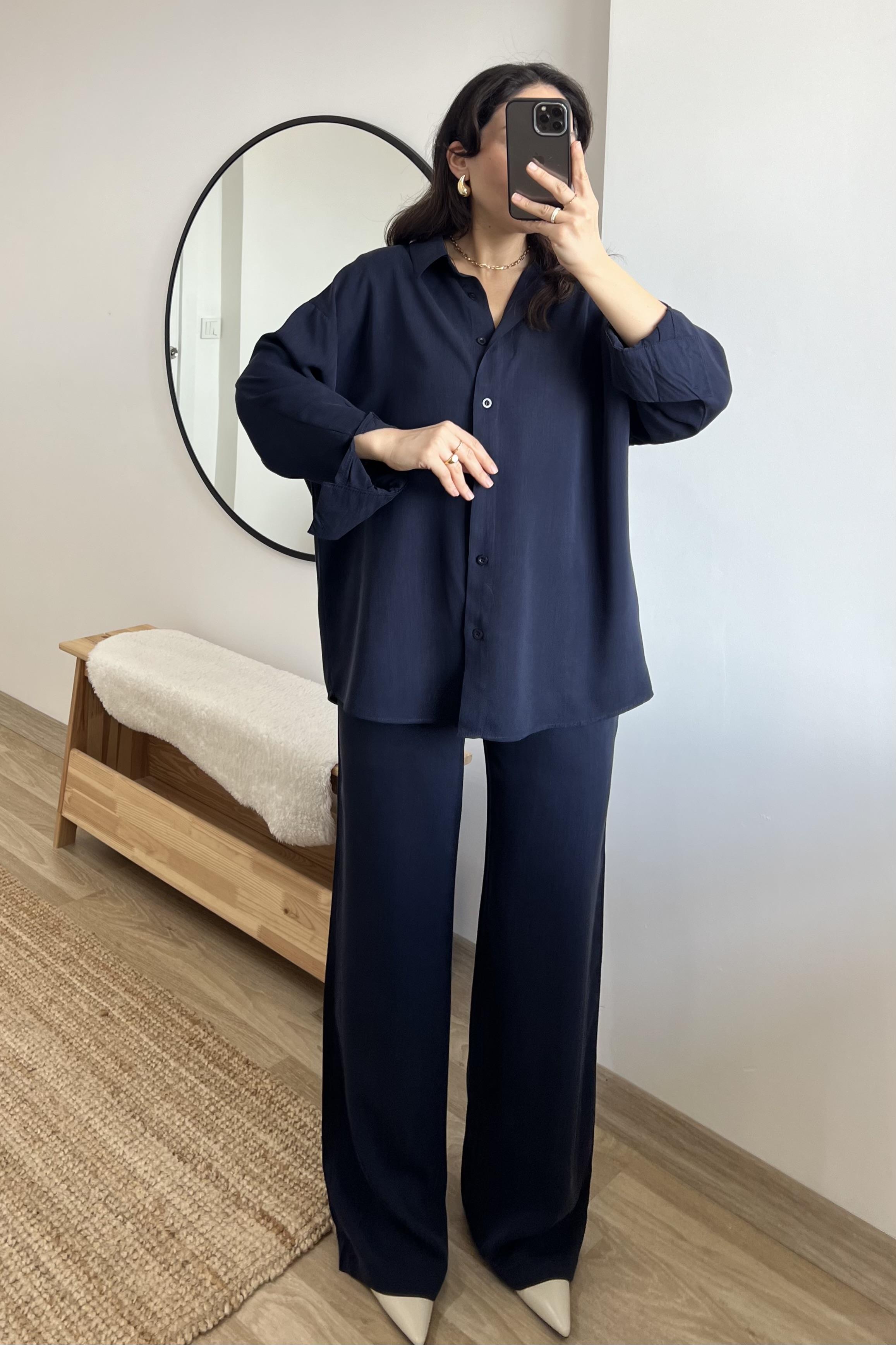Lacivert Premium Tensel Gömlek Pantolon Takım