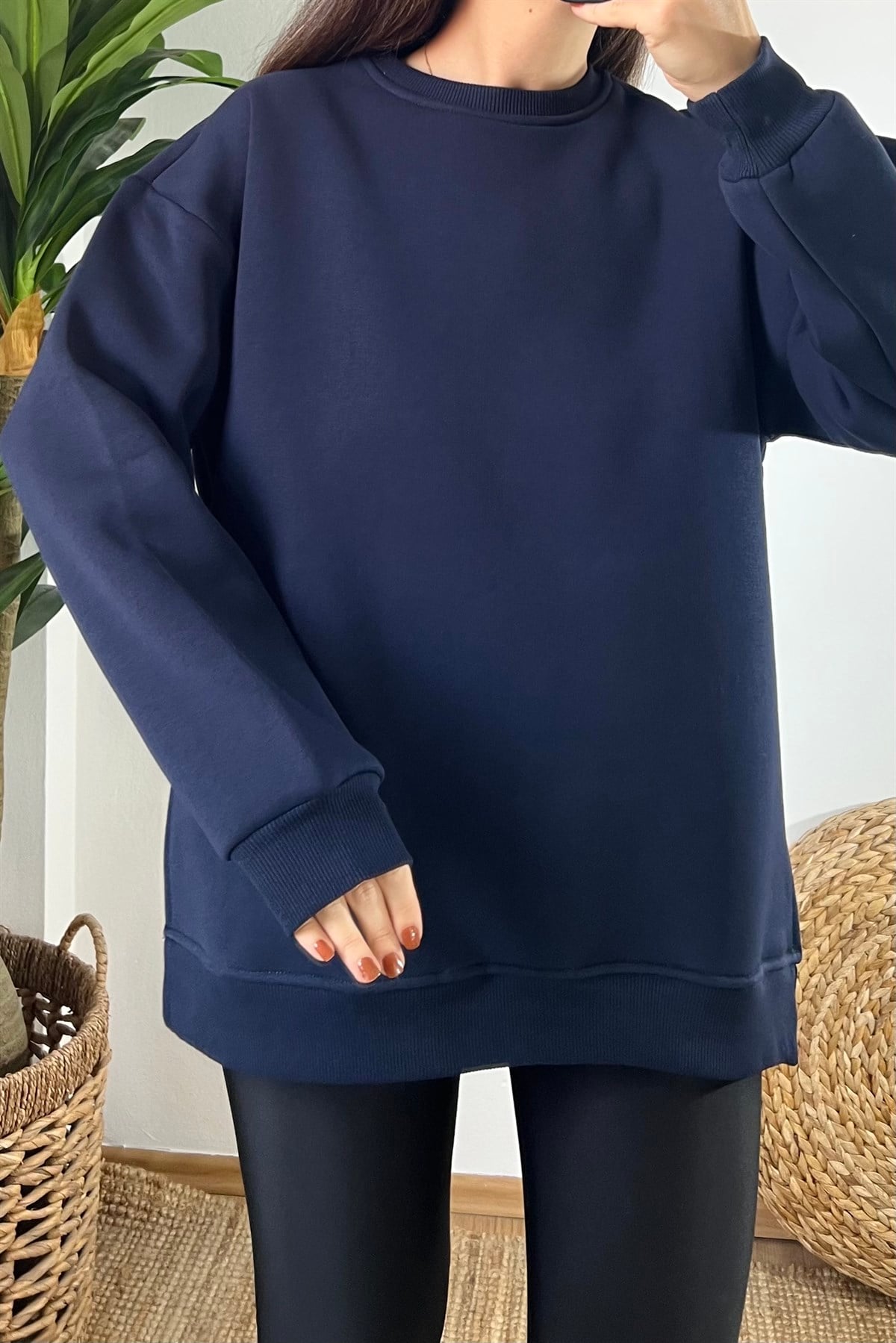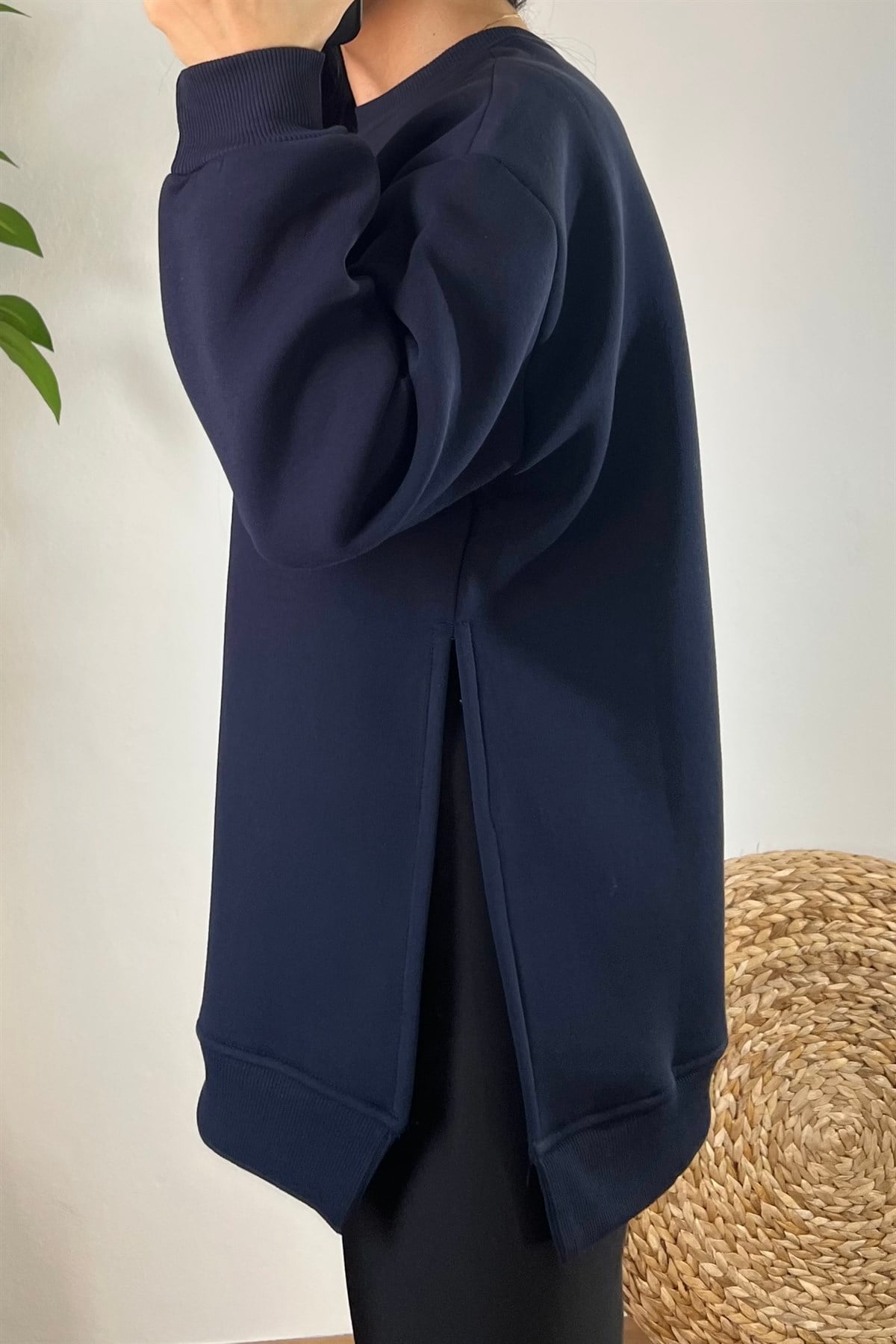 Lacivert Yanı Yırtmaçlı Oversize Sweatshirt