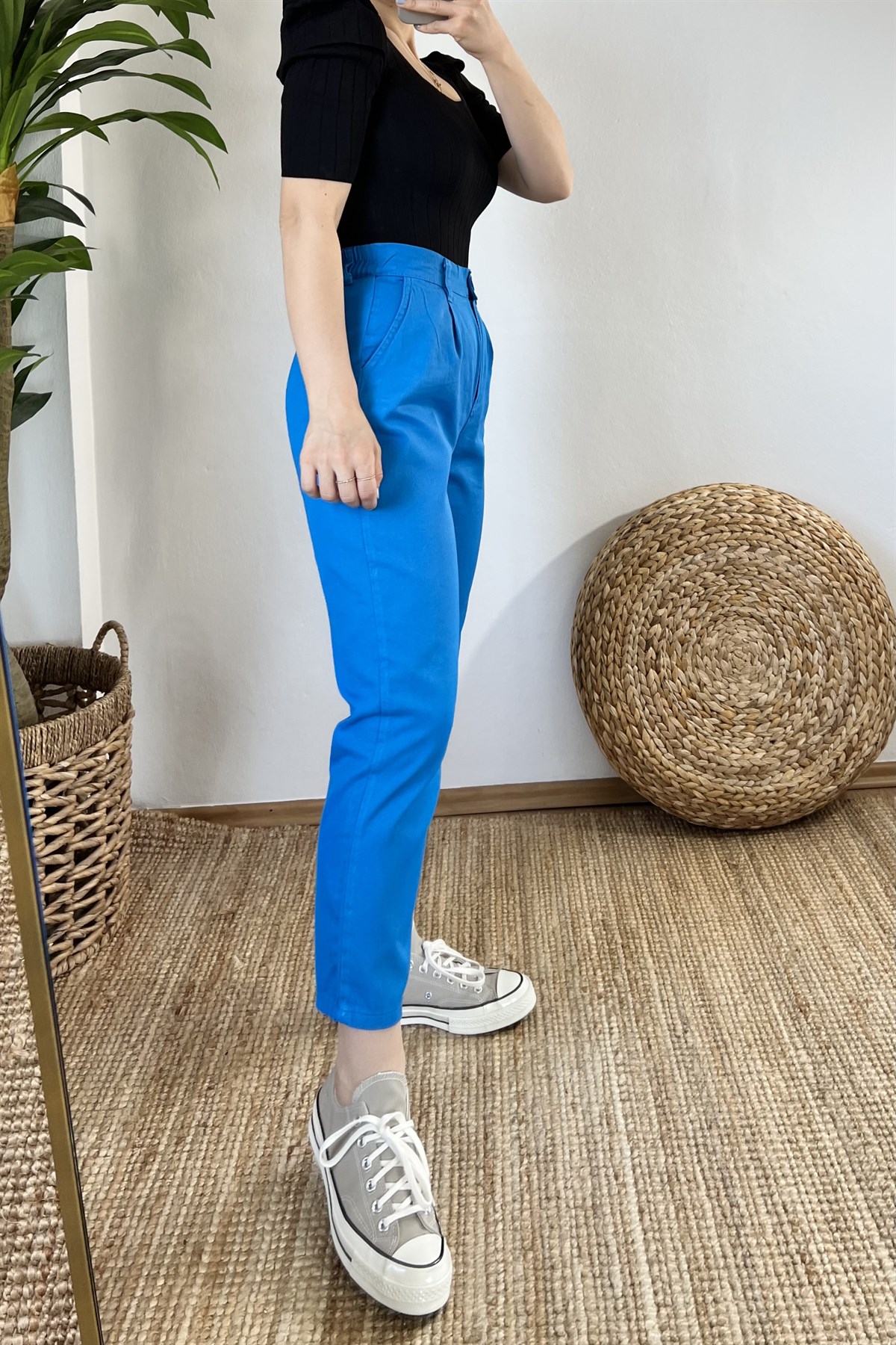 Mavi Beli Lastikli Gabardin Pantolon
