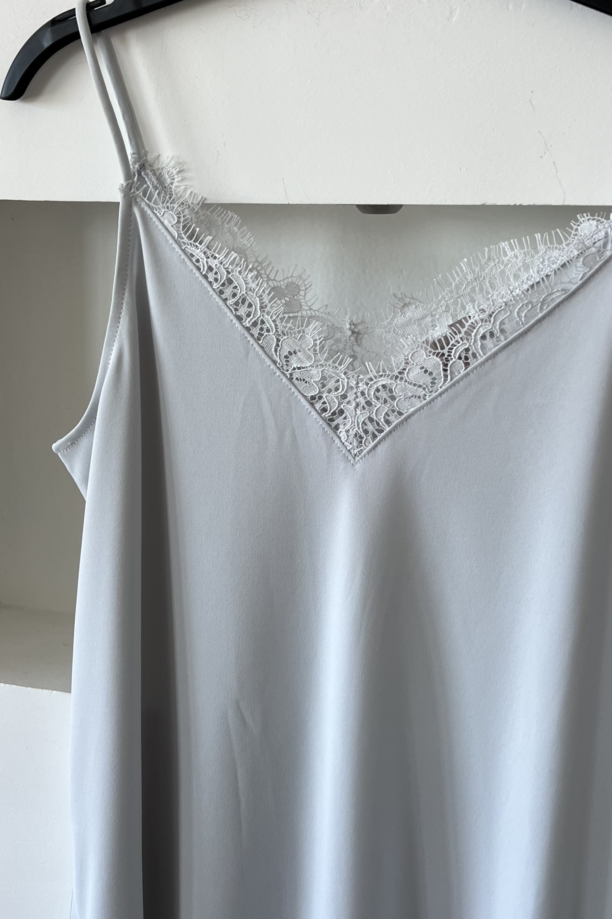 Mavi Dantel Detaylı Askılı Bluz