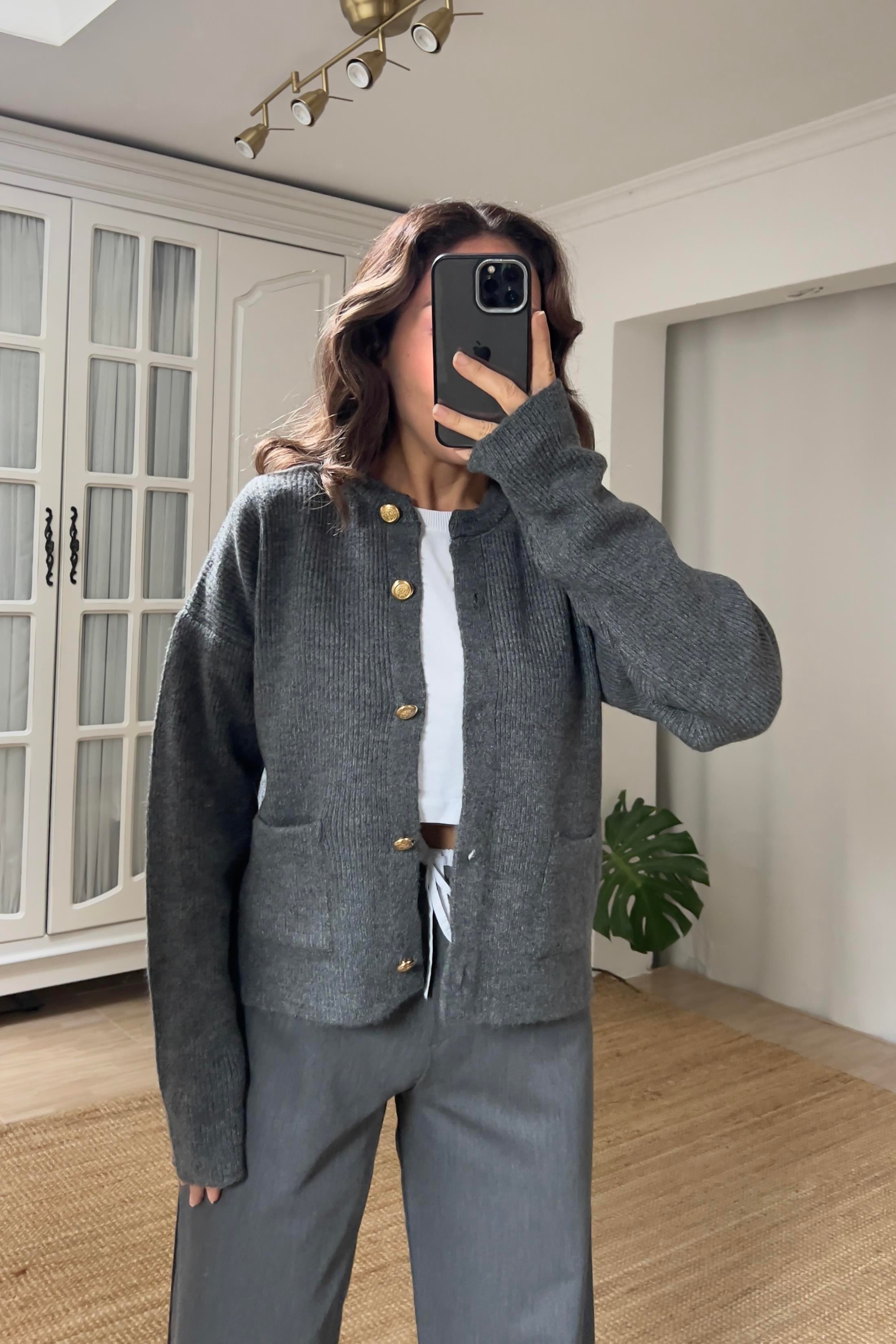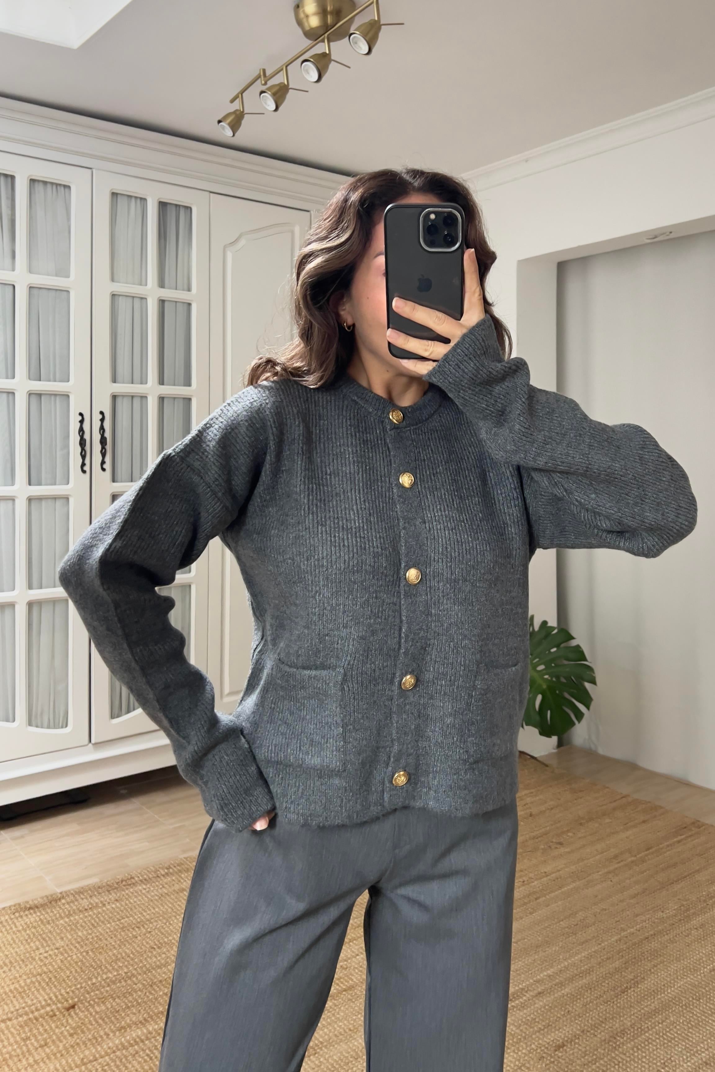 MD Antrasit Cepli Gold Düğmeli Yumoş Hırka