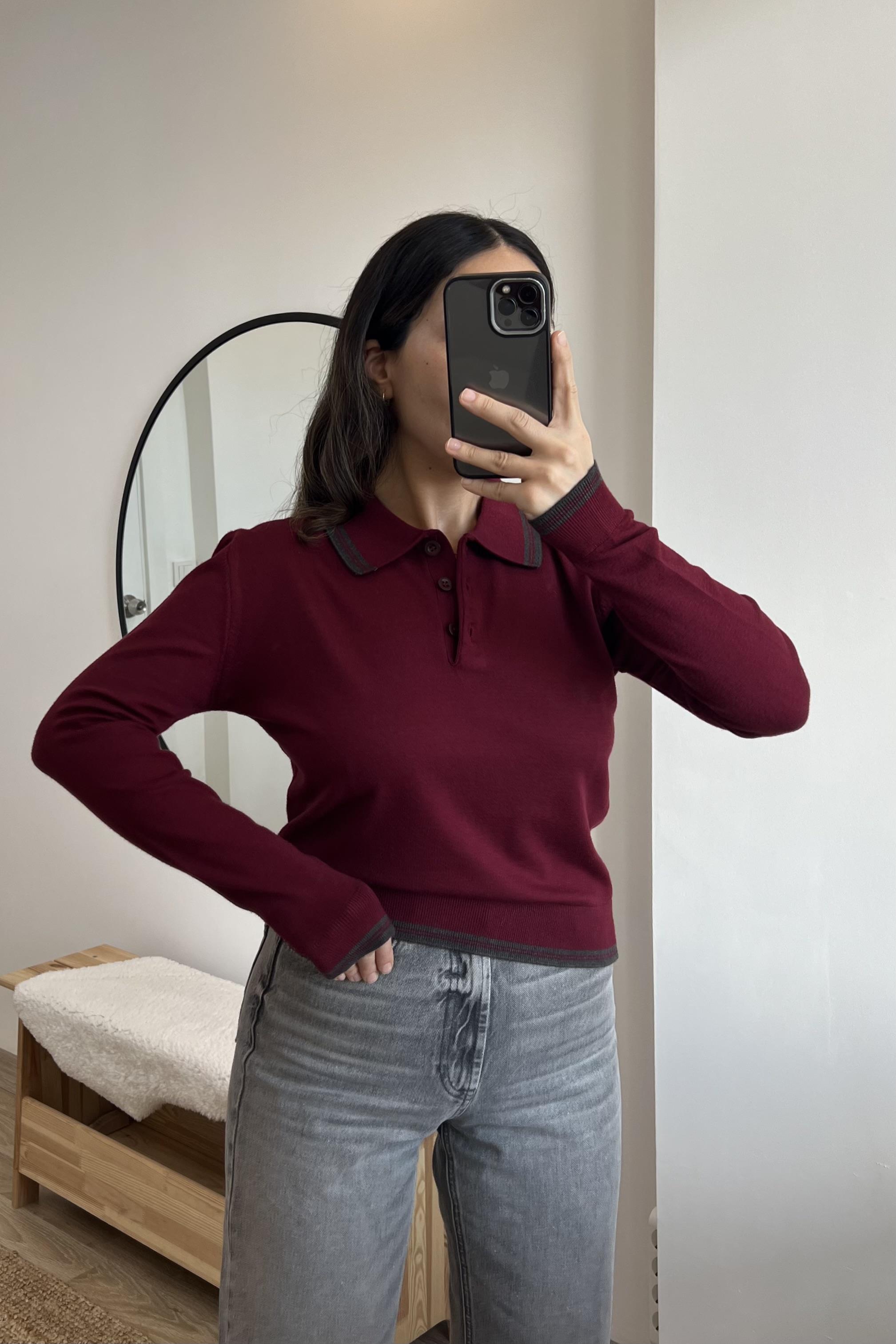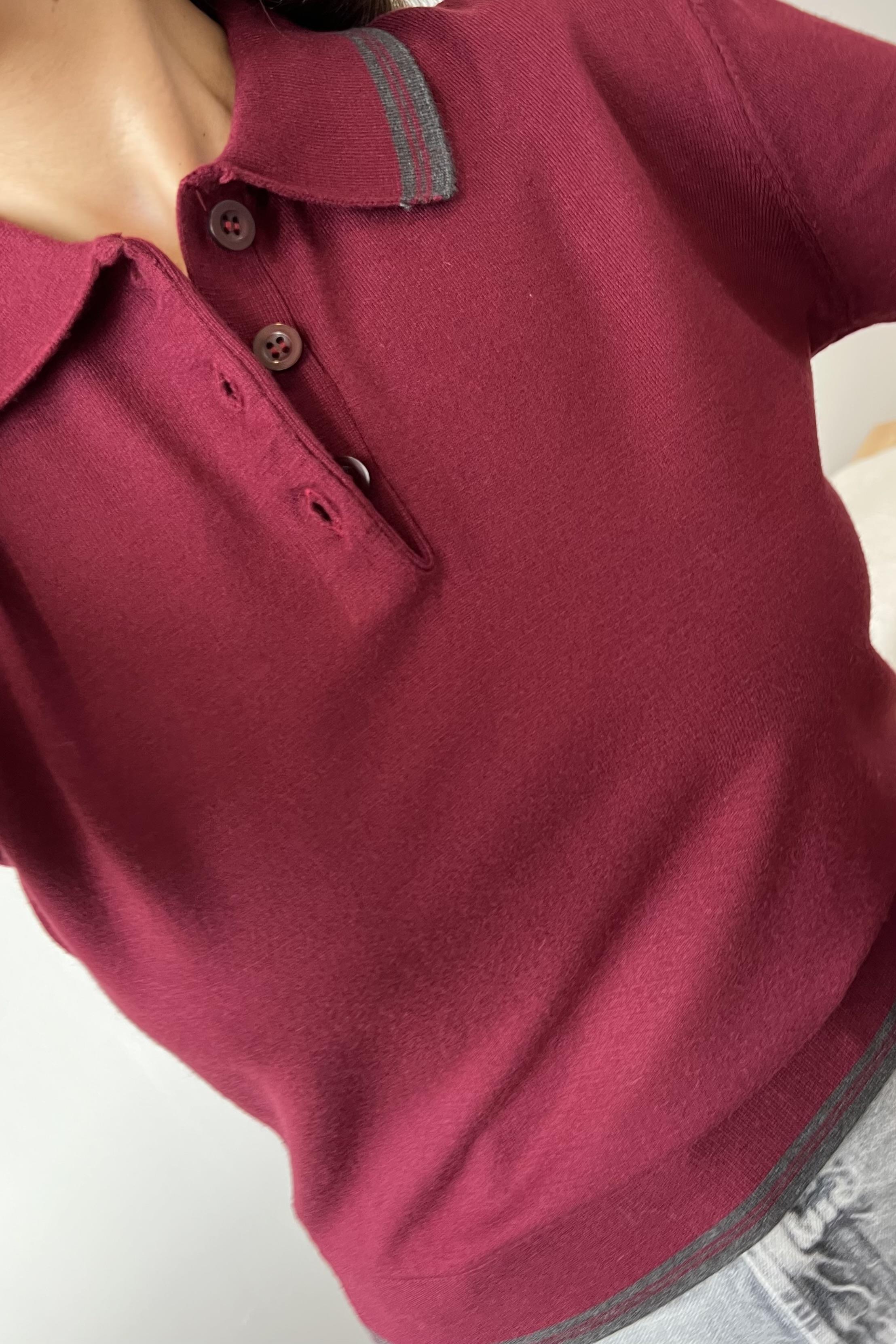 MD Bordo Polo Yaka Biye Detaylı Triko