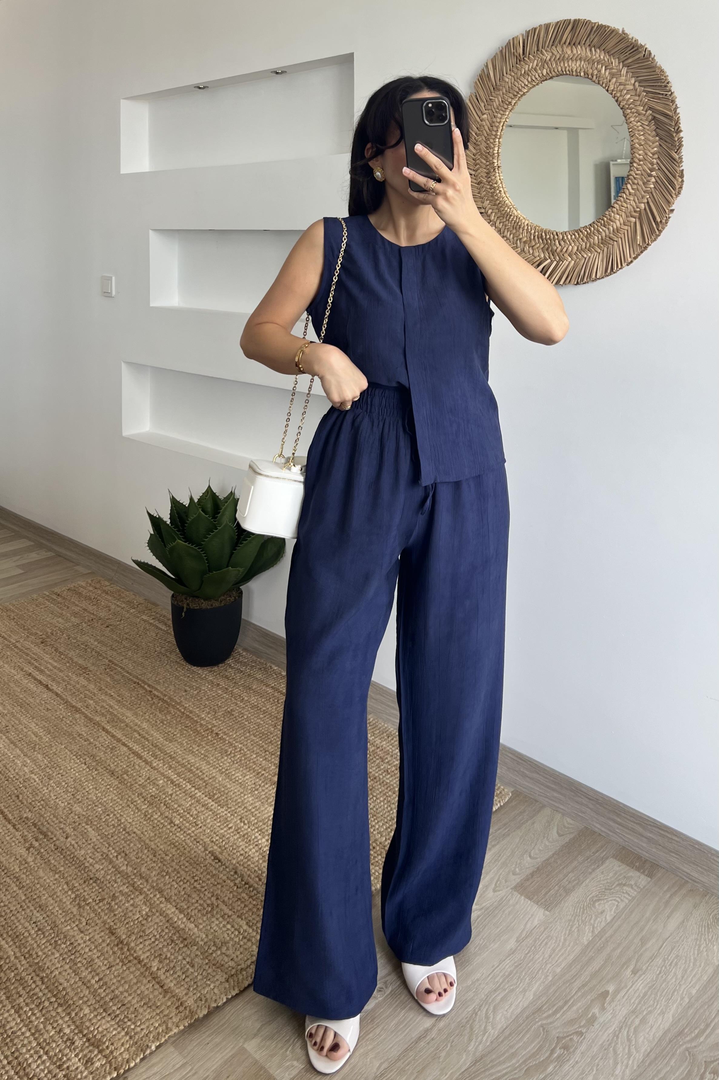 MD Lacivert Patlı Yelek Pantolon Takım