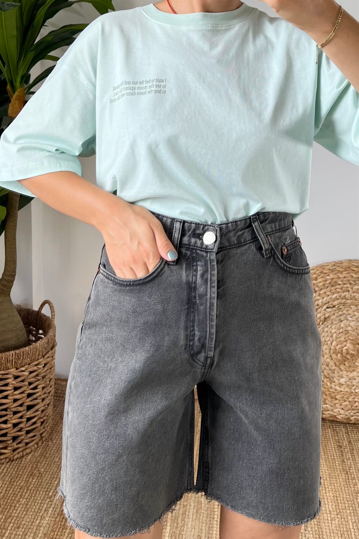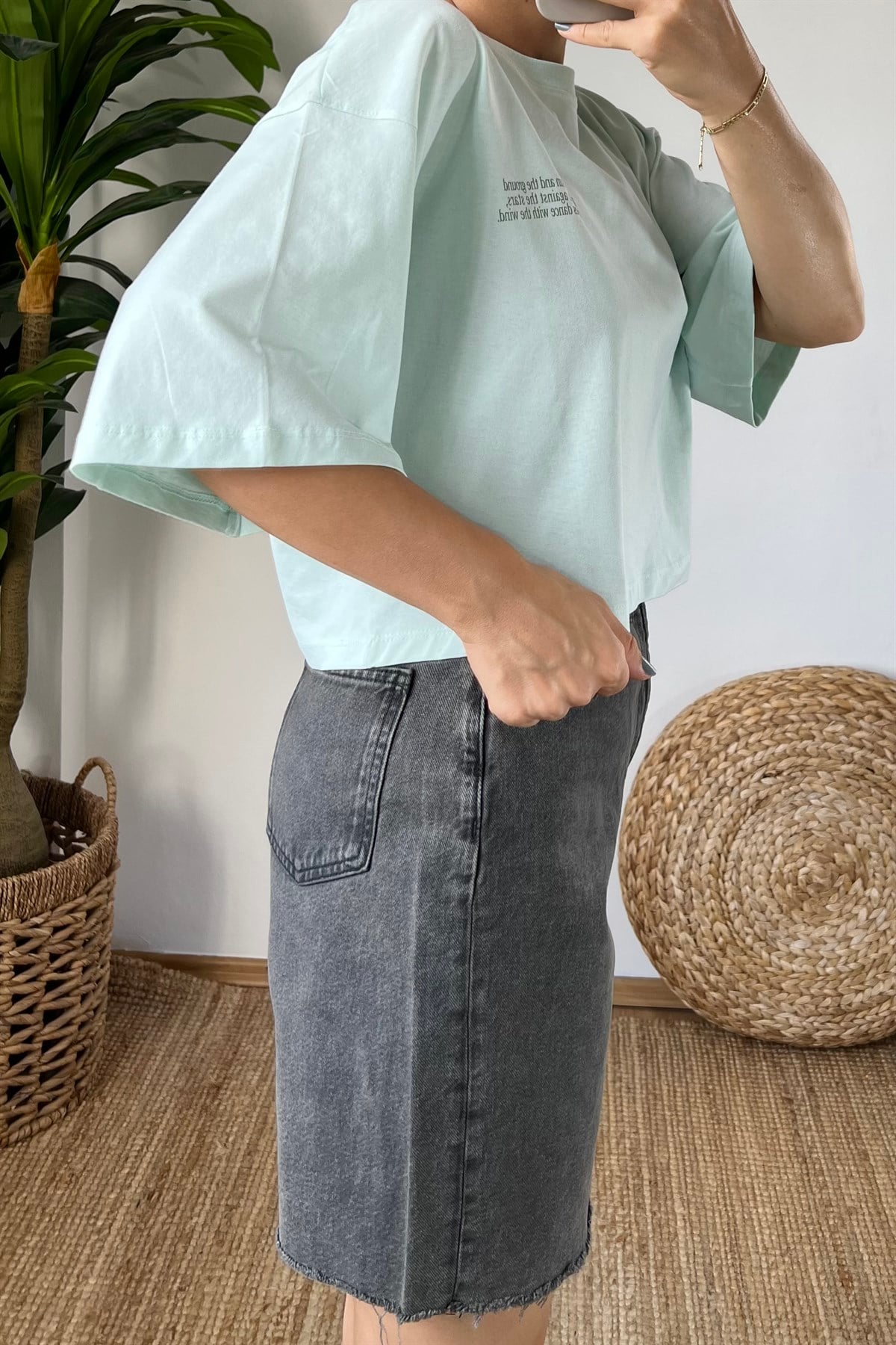 Orjinal Marka Mint Yazılı Crop Tshirt