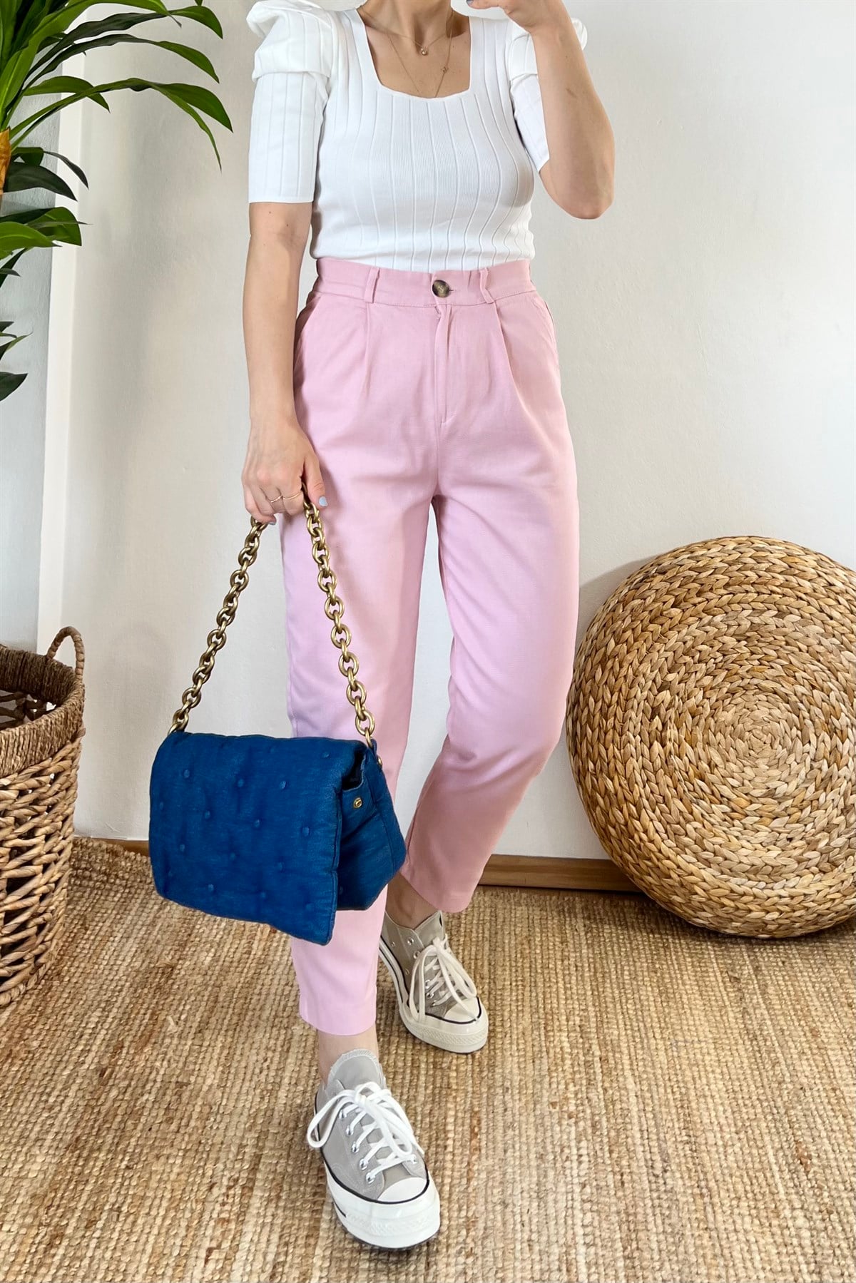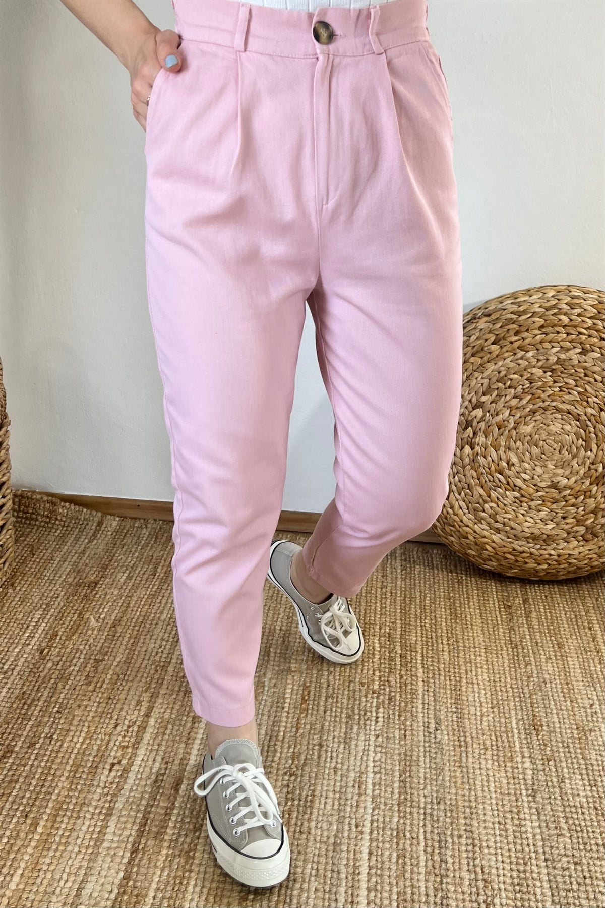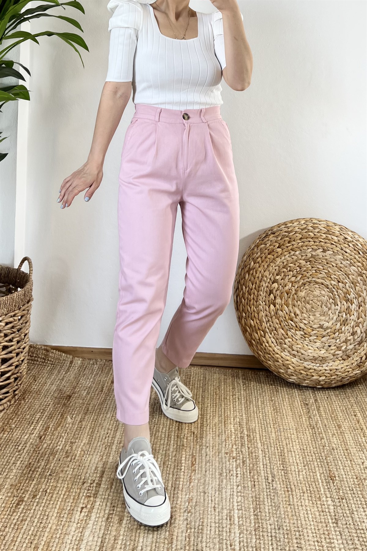 Pembe Beli Lastikli Gabardin Pantolon