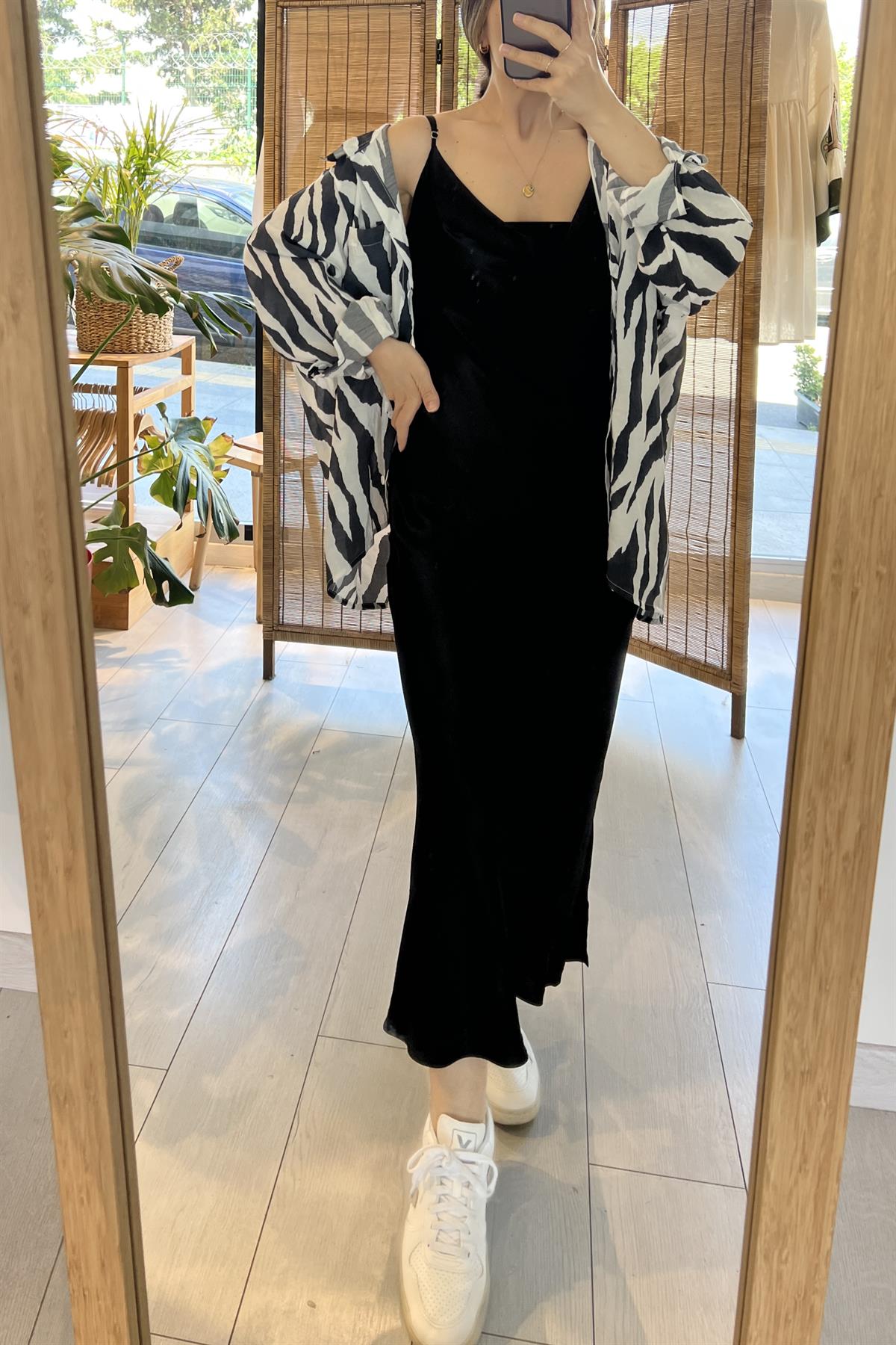 Siyah Ayarlanabilir Askılı Maksi Saten Elbise
