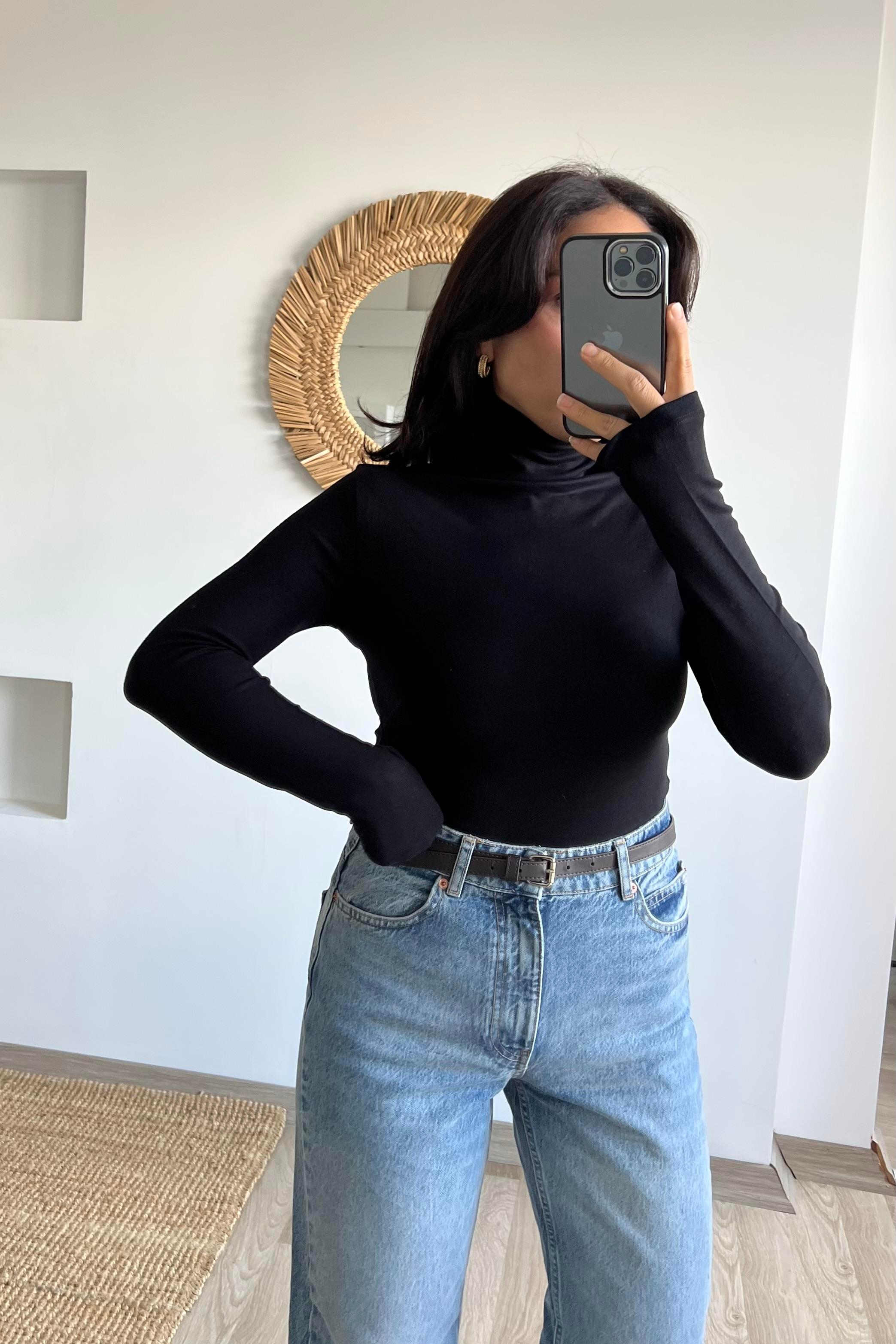 Siyah Boğazlı Yumuşak Dokulu Bluz