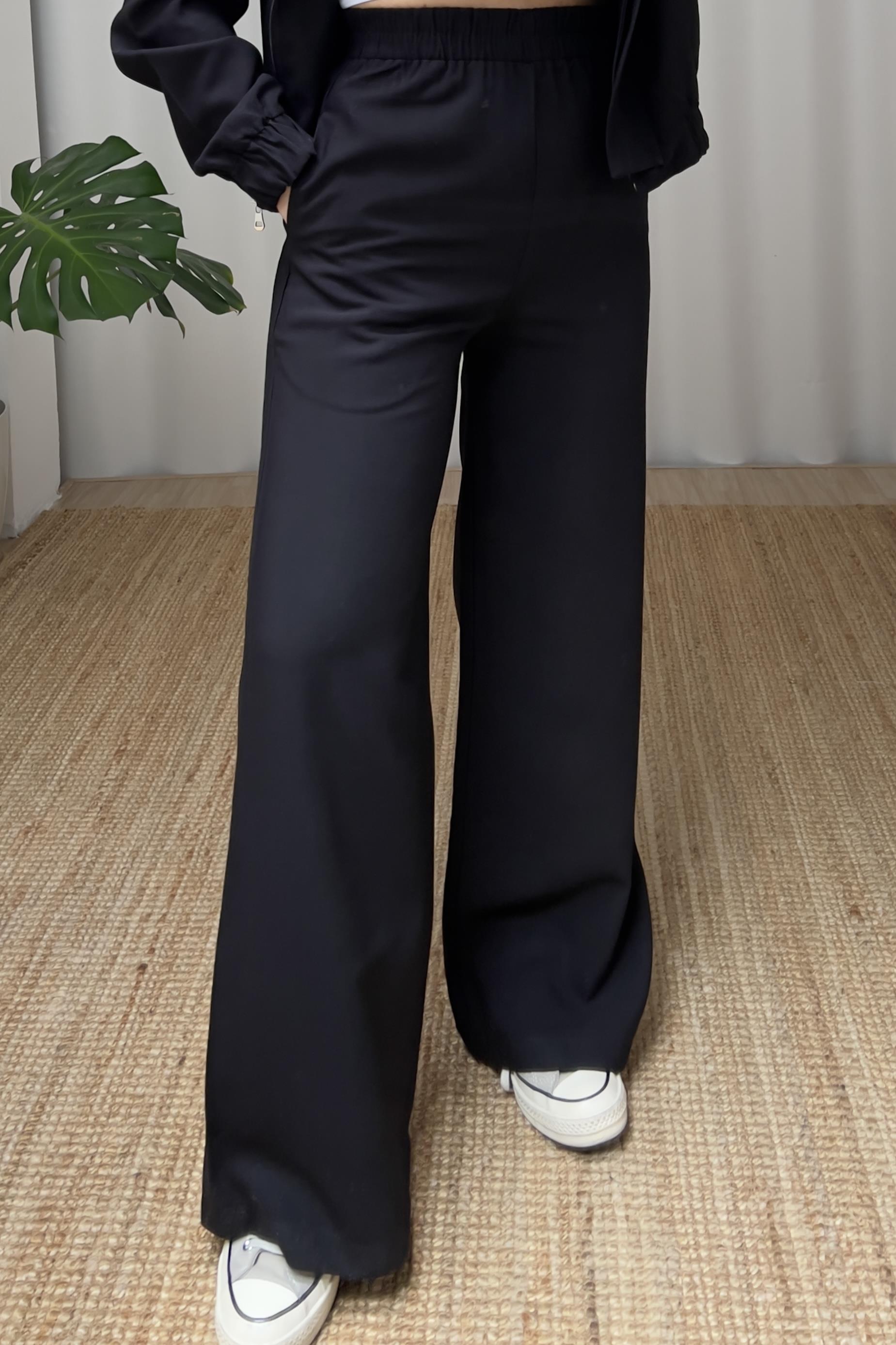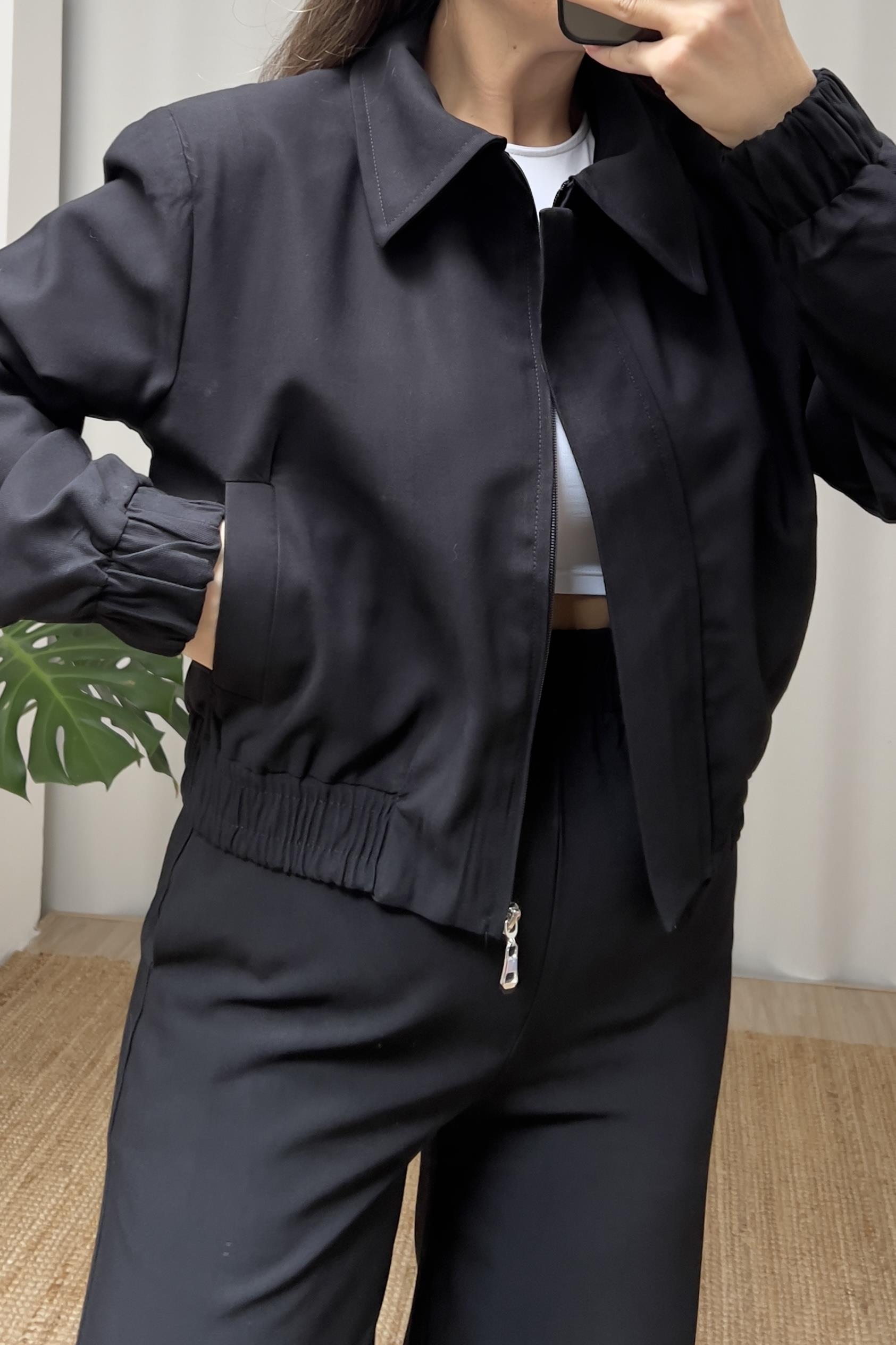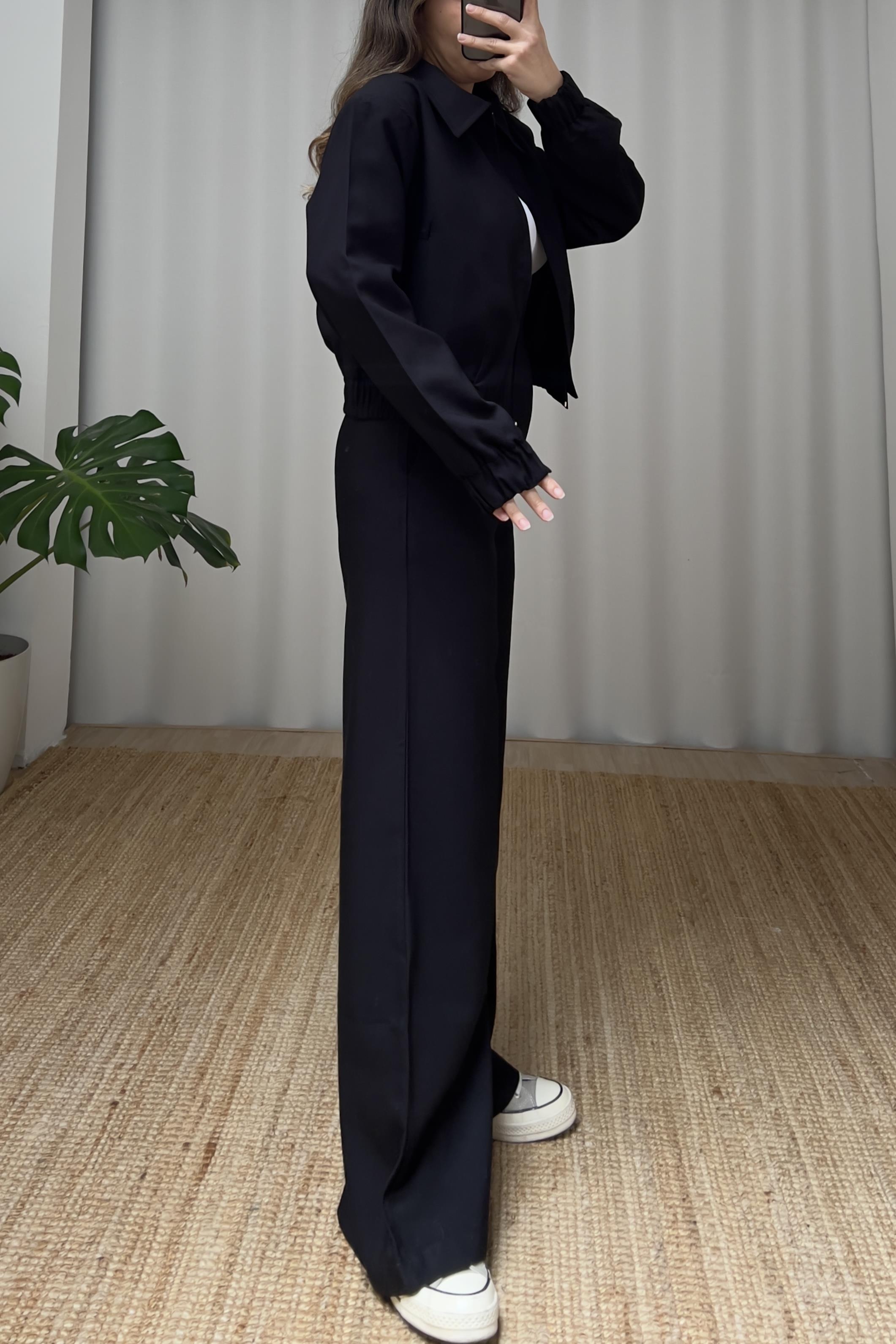 Siyah Bomber Ceket Palazzo Pantolon Takım