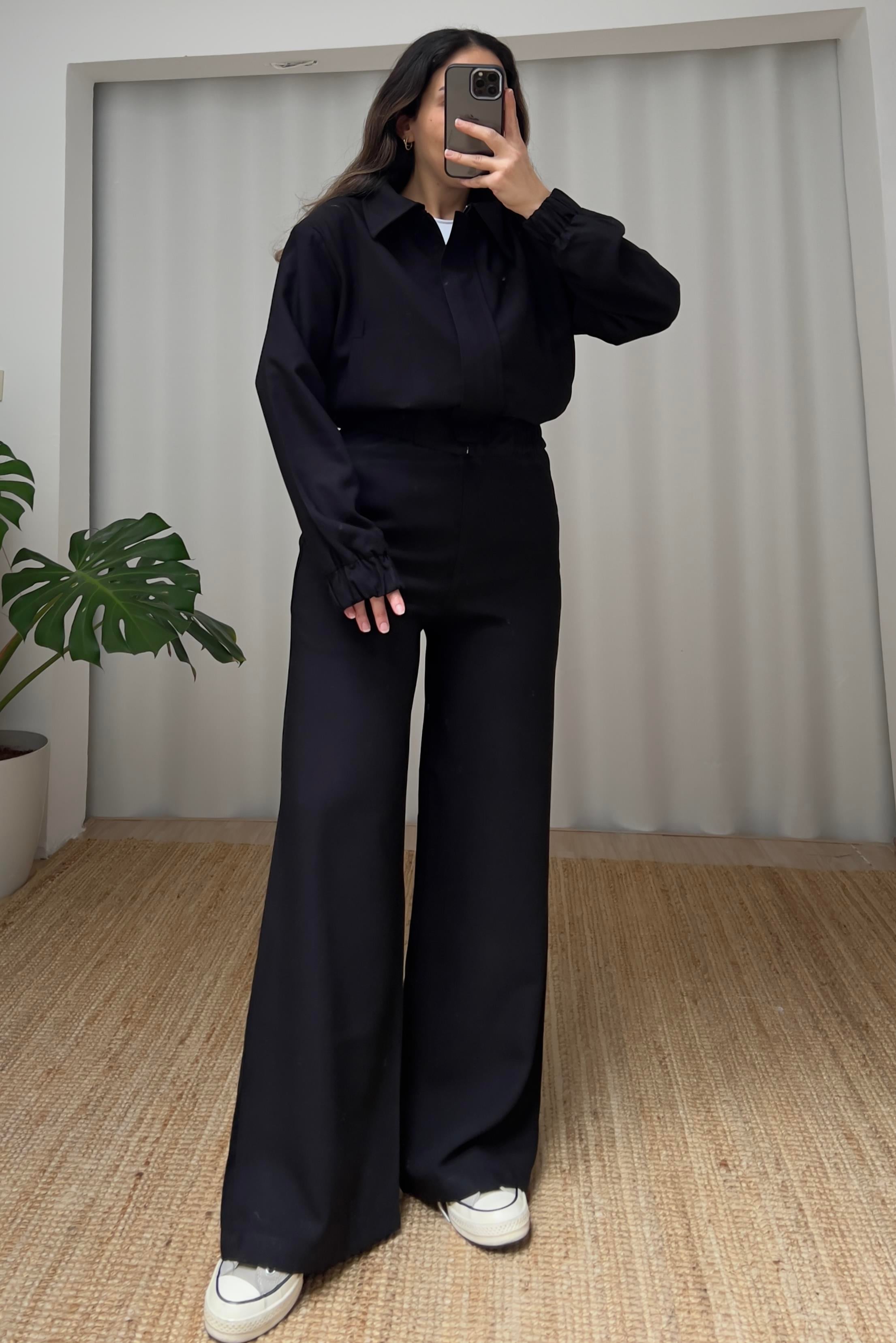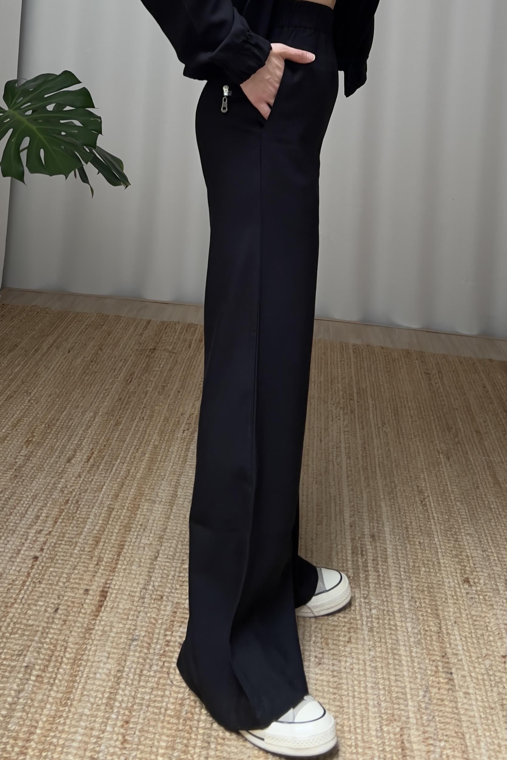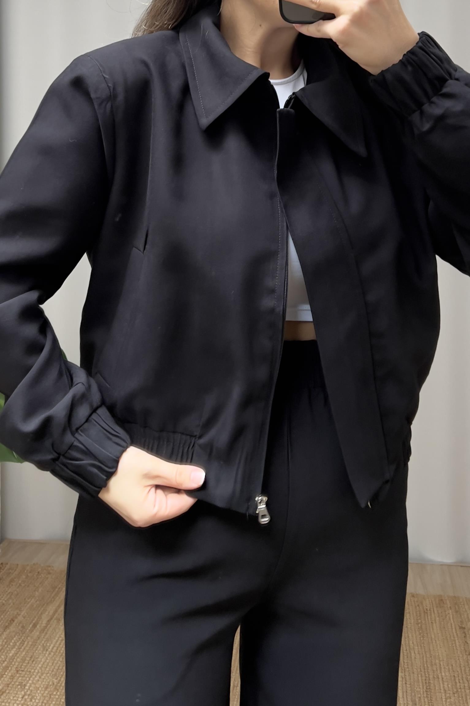Siyah Bomber Ceket Palazzo Pantolon Takım