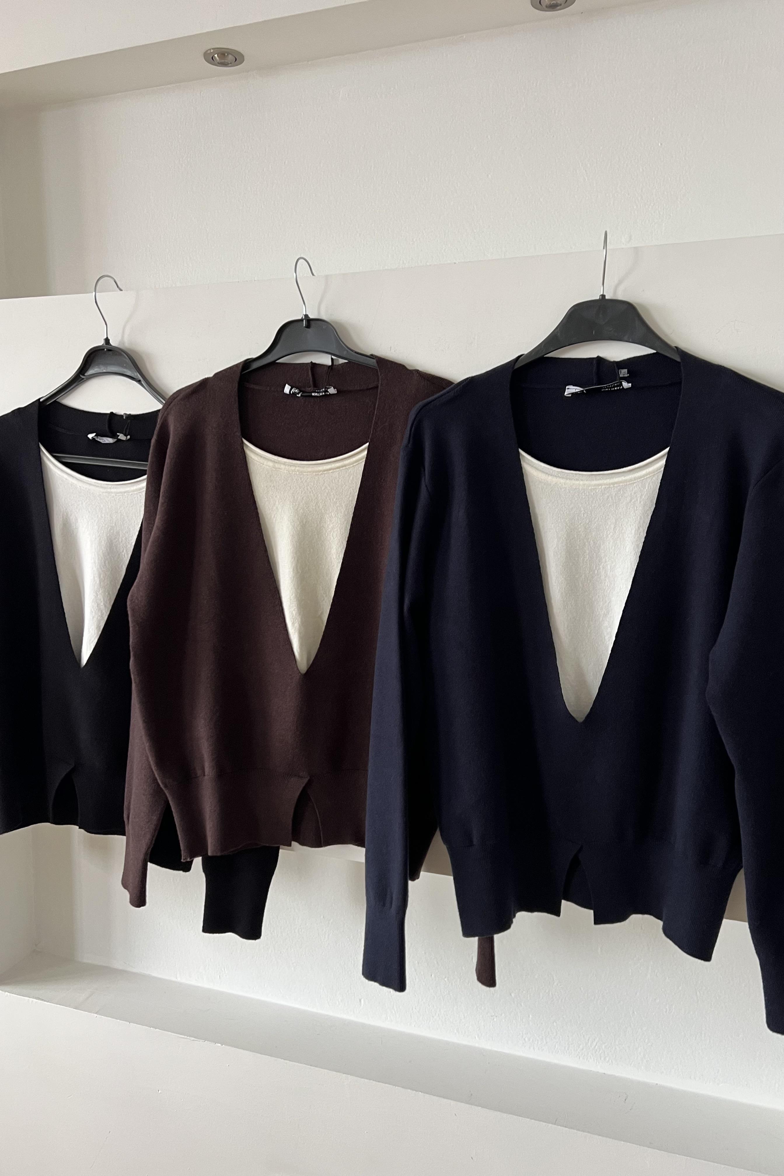 Siyah Çift Kat Görünümlü Premium Triko