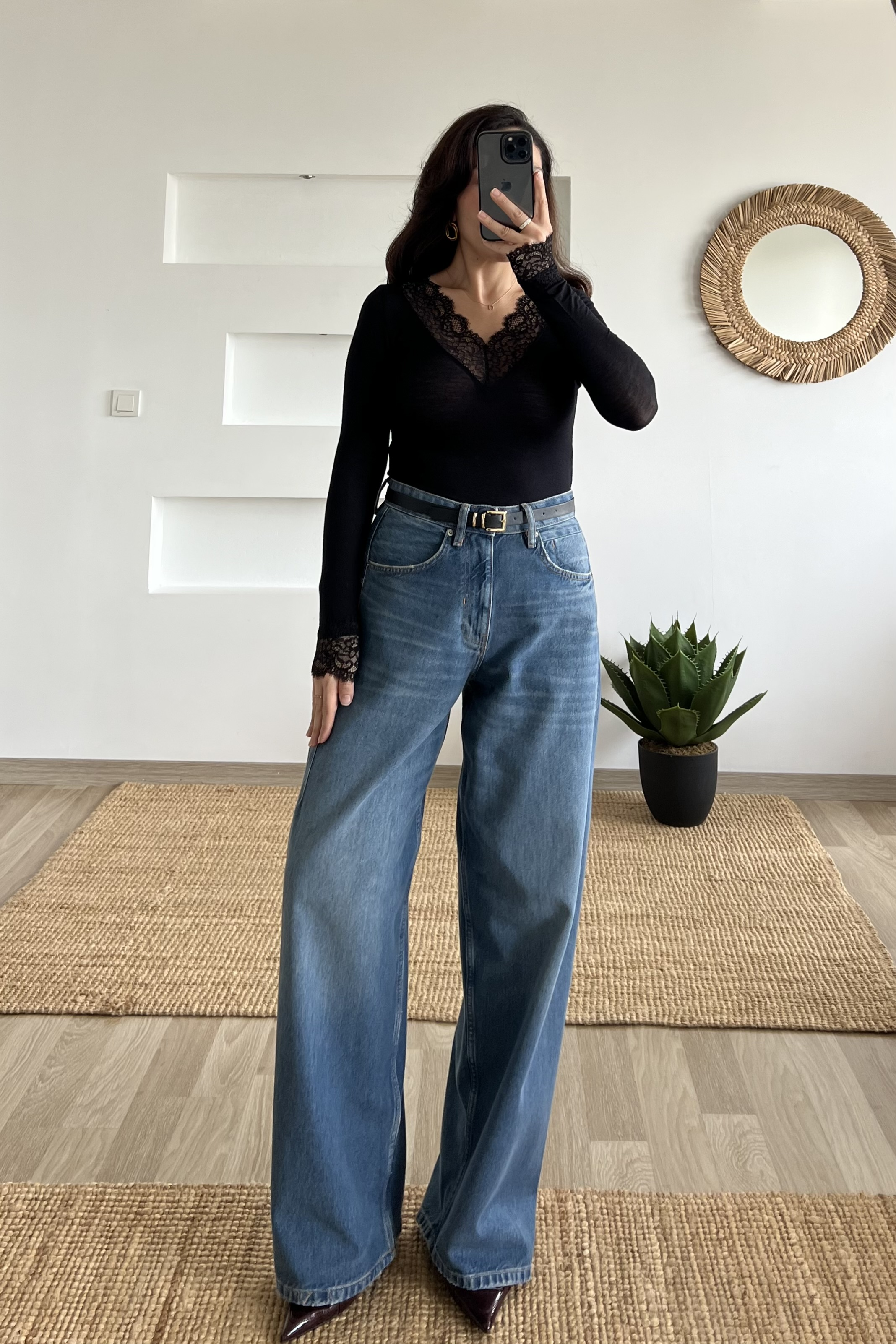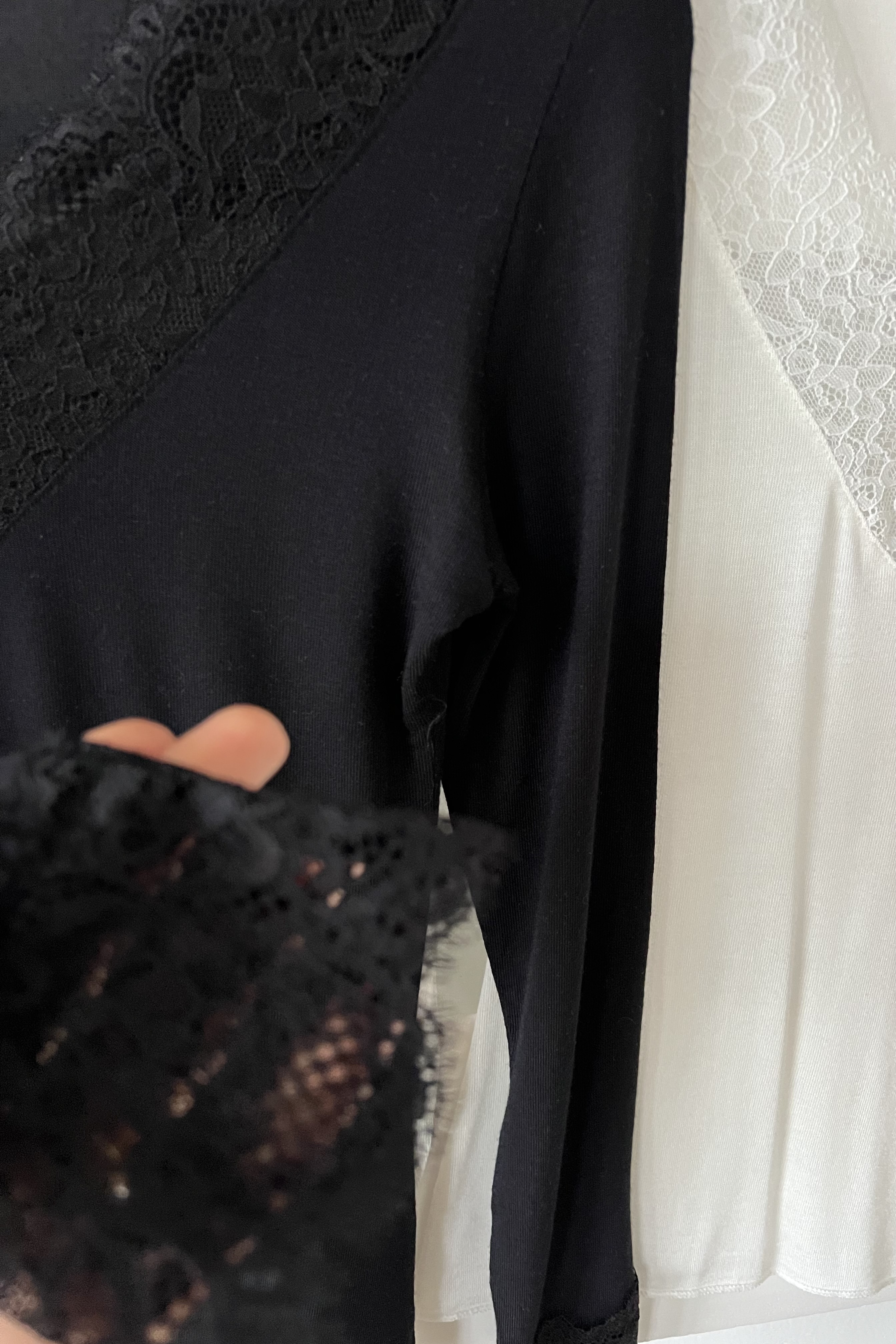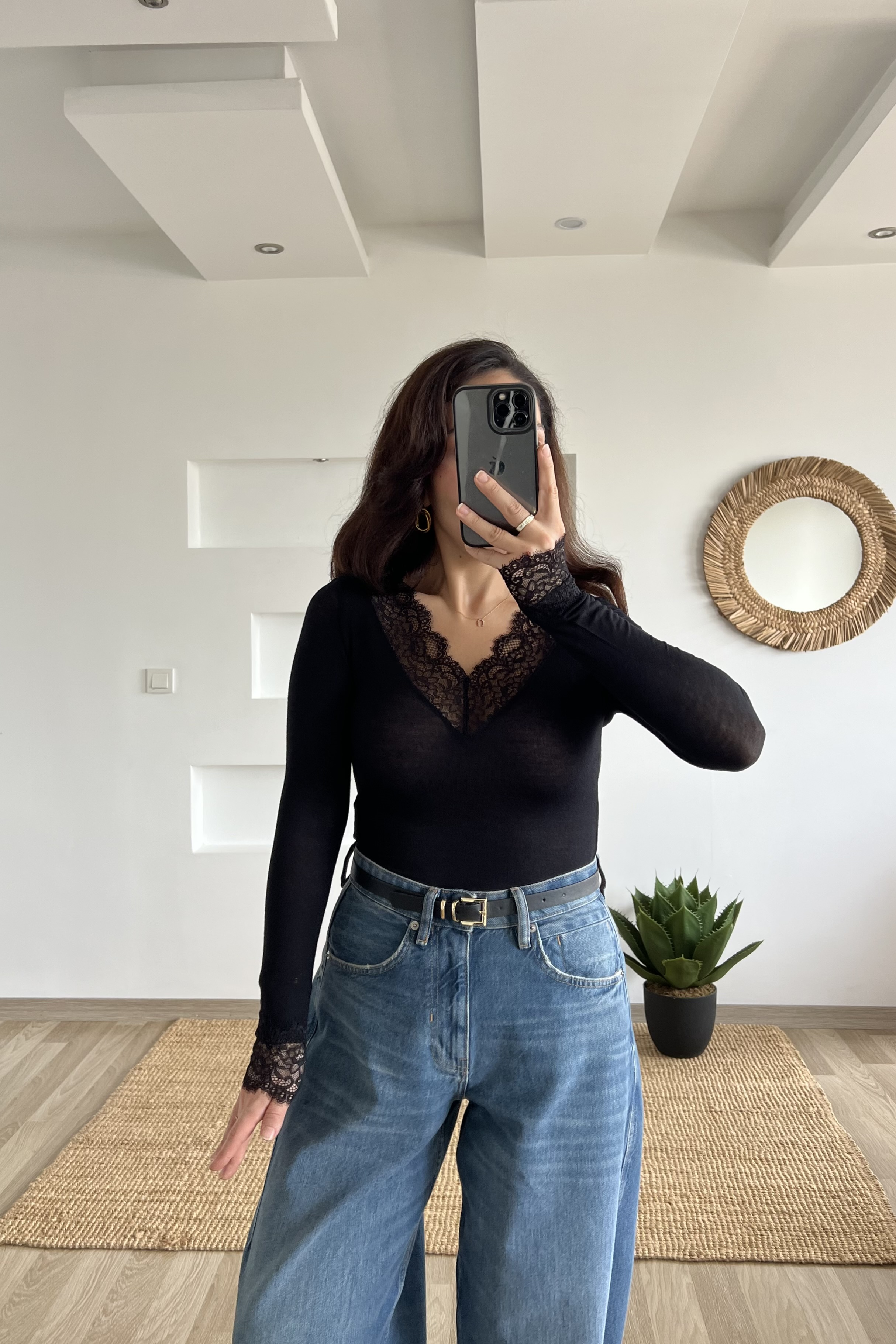 Siyah Dantelli Transparan Kaşmir Dokulu Bluz